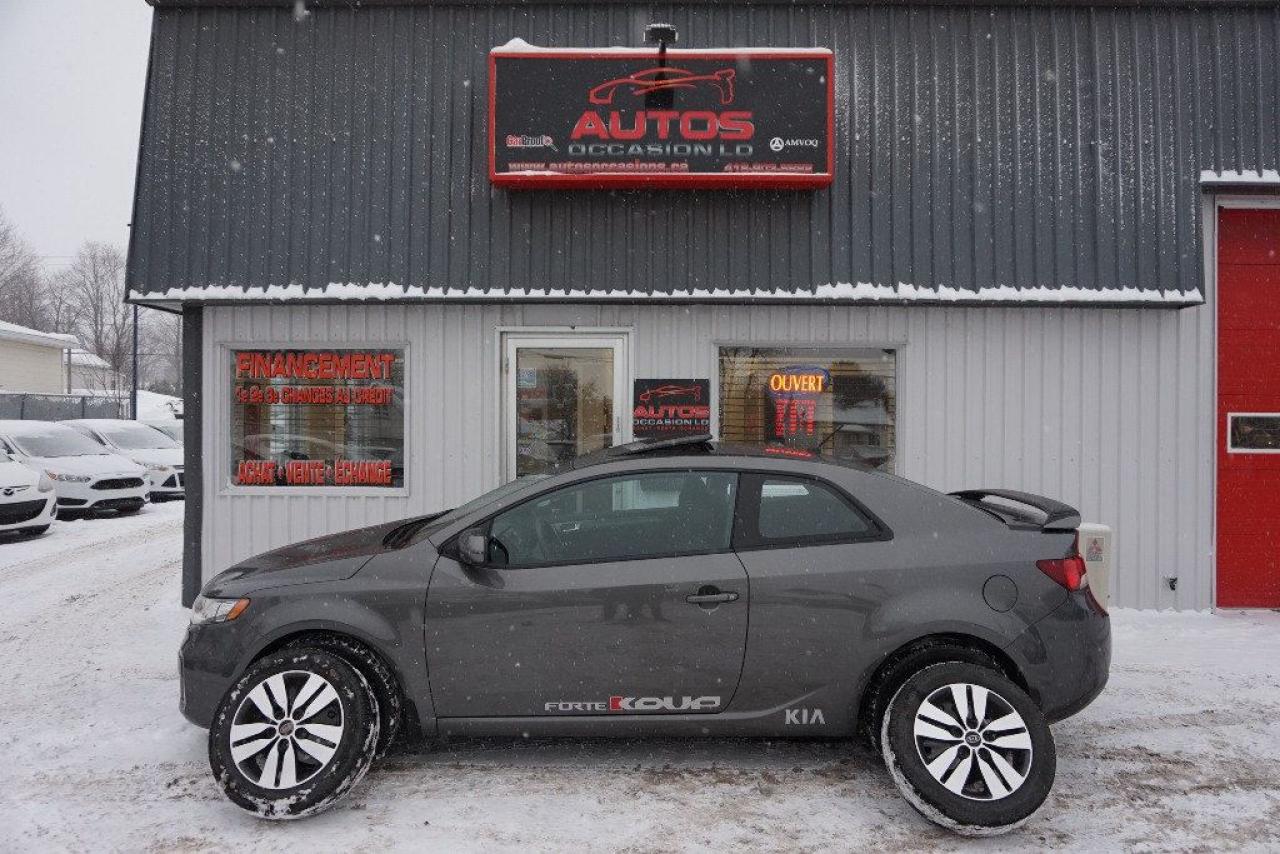 KIA FORTE KOUP EX 2013 Édition KOUP EX 4cyl 2.0 Litres ** FULL ÉQUIPÉ MAGS TOIT BLUETOOTH 8 ROUES INCLUS -- TRANSMISSION AUTOMATIQUE 6 RAPPORTS -- AVEC SEULEMENT 100 983 KM CERTIFIÉ / 4 CYLINDRES 2.0 Litres TRÈS ÉCONOMIQUE, DURABLE ET FIABILITÉ KIA RECONNUE (VÉHICULE ACCIDENTÉ ET TRÈS BIEN RÉPARER EN 2013 : RAPPORT CARPROOF DISPONIBLE) COULEUR EXTÉRIEUR GRAY FONCÉ, INTÉRIEUR GRIS FONCÉ / NOIR + SIÈGES CHAUFFANTS. INSPECTION COMPLÈTE INCLUSE -- ÉCHANGE ACCEPTÉ -- FINANCEMENT SUR PLACE À PARTIR 4.99 % -- GARANTIE INCLUS : 1 MOIS OU 1700 KM MOTOPROPULSEUR -- POSSIBILITÉ DE GARANTIE PROLONGÉE À PRIX IMBATTABLE Avec Caa et Groupe Ppp. ÉQUIPEMENT COMPLET EX : AIR CLIMATISÉ - RÉGULATEUR VITESSES - DÉMARREUR À DISTANCE - PHARE ANTI-BROUILLARD - TOIT OUVRANT ÉLECTRIQUE - AILERON - JANTES 17 POUCES / PNEUS D'ÉTÉ TRÈS BON - RIM D'ACIER / PNEUS D'HIVER EXCELLENT - SIÈGES CHAUFFANTS - ORDINATEUR DE BORD - LECTEUR CD-Mp3 - CONTRÔLE AUDIO AU VOLANT - TÉLÉPHONE MAIN-LIBRE/BLUETOOTH - SERVO DIRECTION - FREINS ABS - TRACTION CONTRÔLE - VOLANT AJUSTABLE === POUR PLUS D'INFORMATION DEMANDEZ (DAVID.LAMONTAGNE) 418-903-5882 // 418-931-4036 Cell === FINANCEMENT FACILE SUR PLACE 4.99 % NOUS SOMMES OUVERTS 6 JOURS : 2430 BOUL GUILLAUME-COUTURE, LÉVIS G6W-2R5 : AU PLAISIR DE VOUS SERVIR WWW.AUTOSOCCASIONS.CA