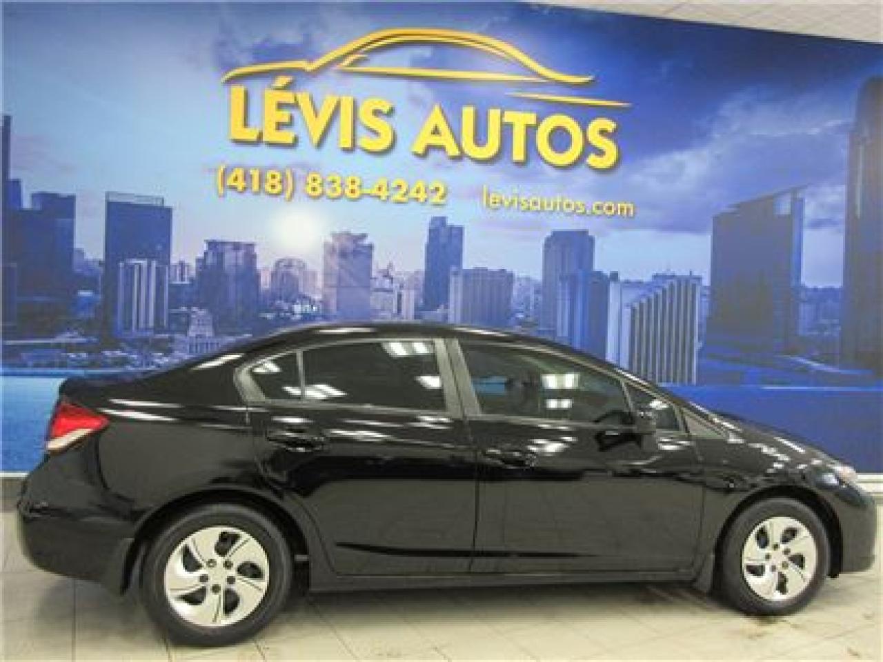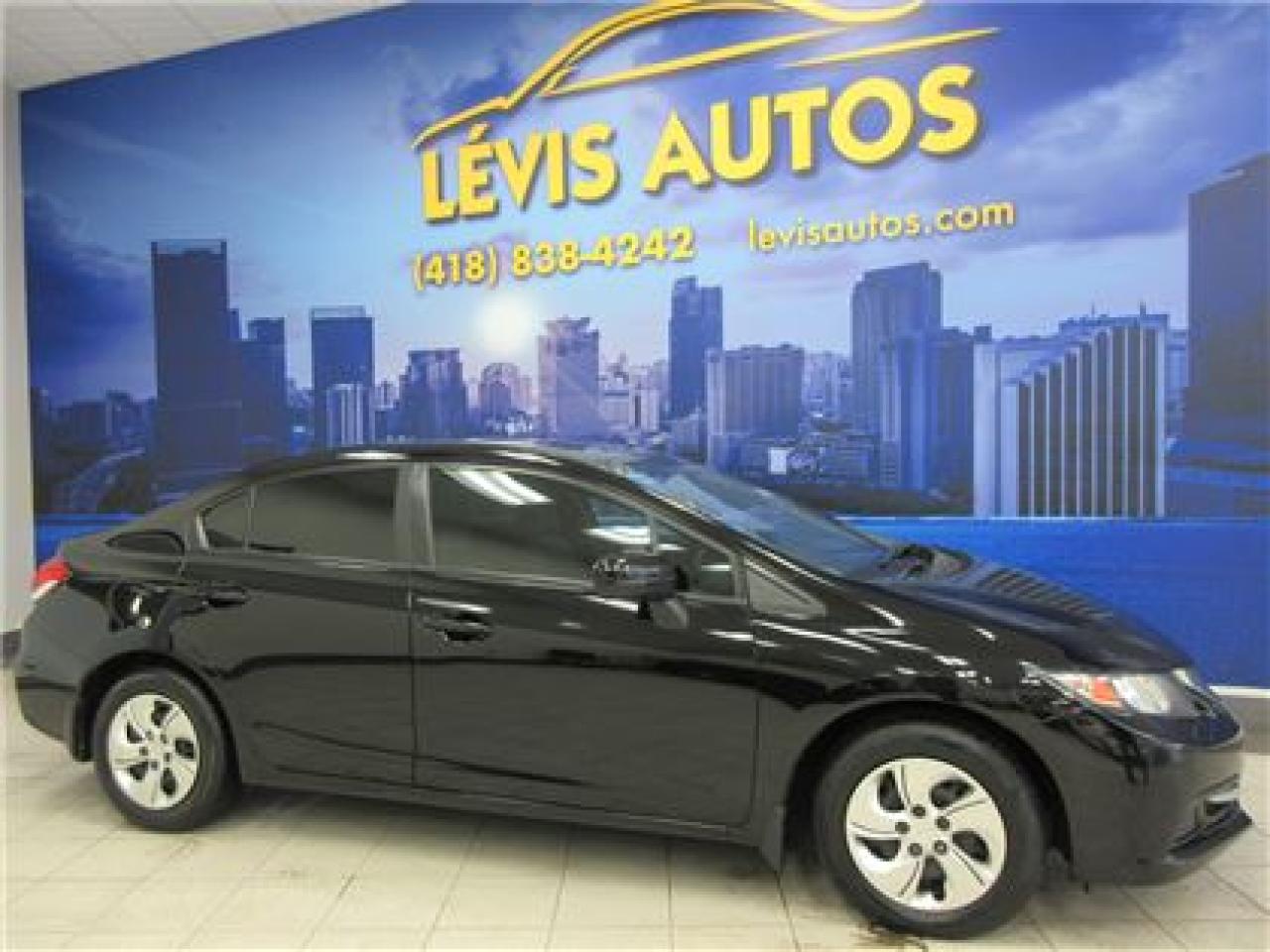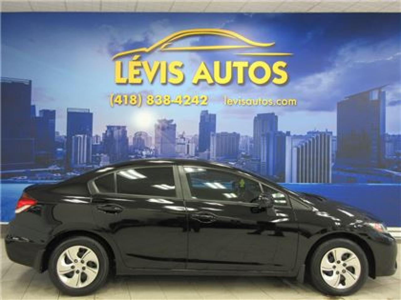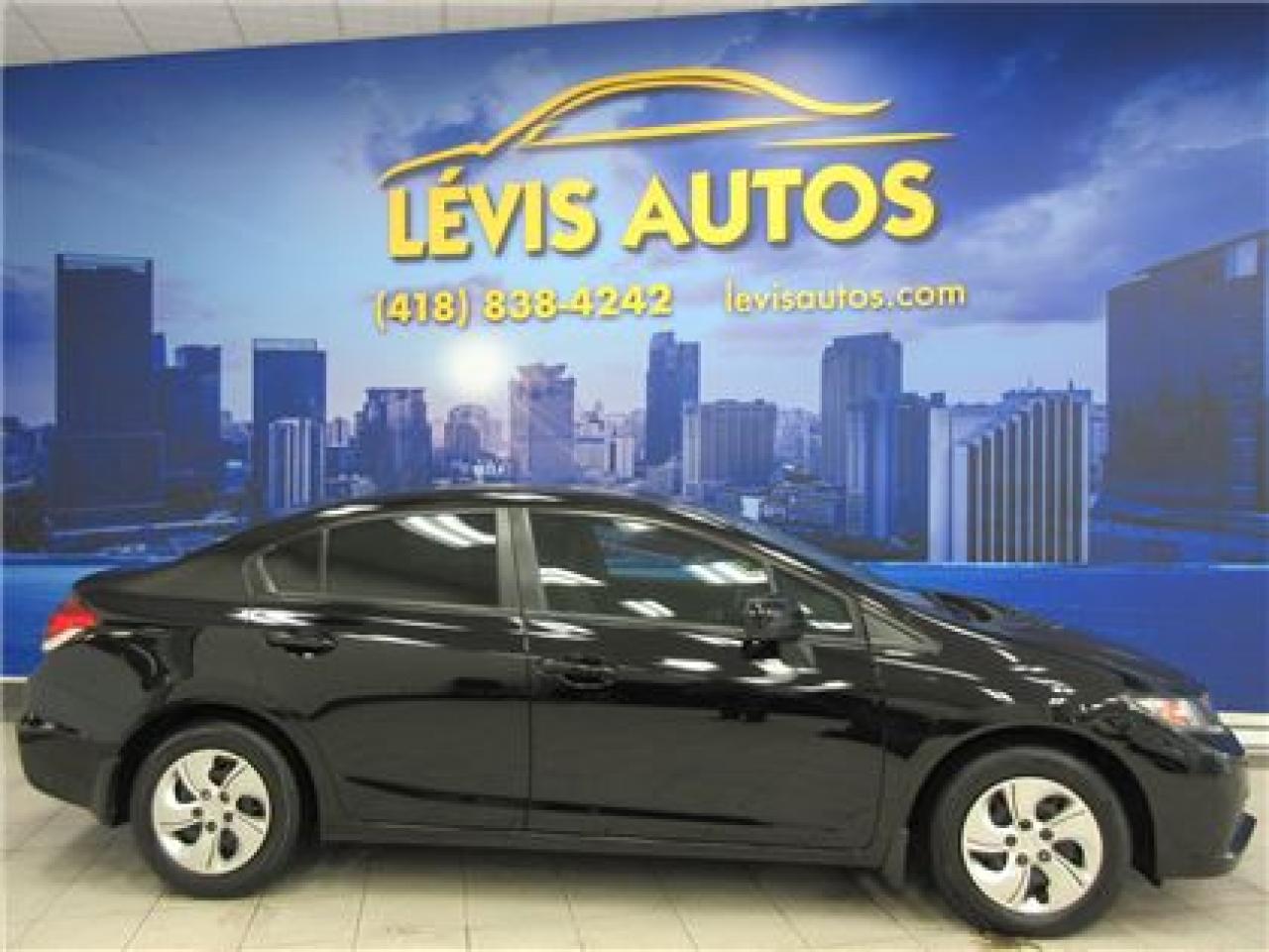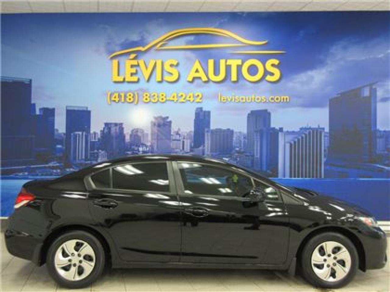 HONDA CIVIC 2014 LX NOIR SIEGE CHAUFFANT / BLUETHOOTH / ÉCRAN TACTILE AVEC 106800 KM CERTIFIÉ ( UNIQUE PROPRIÉTAIRE,RAPPORT CARPROOF DISPONIBLE ) MOTEUR 1.8 LITRES OFFRANT UNE EXCELLENTE PUISSANCE EN PLUS D'ETRE LE PLUS ÉCONOMIQUE DE SA CATÉGORIE ET DURABLE.TRANSMISSION AUTOMATIQUE,INTÉRIEUR EN TISSU CHAUFFANT,MIRROIR CHAUFFANT,BLUETHOOTH,VITRES TEINTÉES,ORDINATEUR DE ROUTE,AIR-CLIMATISÉ,CRUISE CONTROL,LECTEUR CD A ÉCRAN TACTILE MP3 AVEC PRISE AUXILIAIRE/SIRIUS ET USB,VOLANT AJUSTABLE ET TÉLESCOPIQUE,GROUPE ÉLECTRIQUE COMPLET,RPM,FREIN ABS,TÉLÉVEROUILLAGE,ALARME,ANTI-PATINAGE.GARANTIE DE 6 MOIS OU 6000 KM MOTOPROPULSEUR ( GARANTIE PROLONGÉ DISPONIBLE A PRIX IMBATTABLE AVEC LE CAA ET PPP ) TAUX DE FINANCEMENT A PARTIR DE SEULEMENT 4.69 %.VÉHICULE EXTREMEMENT PROPRE ET BIEN ENTRETENUE A VOIR ABSOLUMENT !.!Pour plus info cell:418-554-7565/418-838-4242. NOUS SOMMES SITUÉ AU 4585 BOULEVARD GUILLAUME-COUTURE LÉVIS G6W-6M6.LE PLUS GRAND CHOIX DE VEHICULE USAGE A LEVIS.AU PLAISIR DE VOUS SERVIR.WWW.LEVISAUTOS.COM