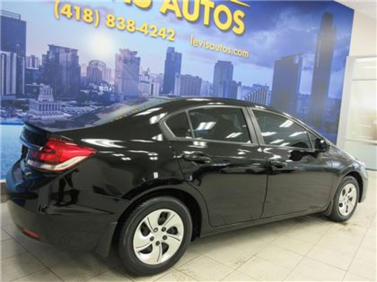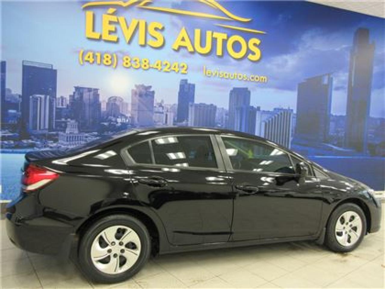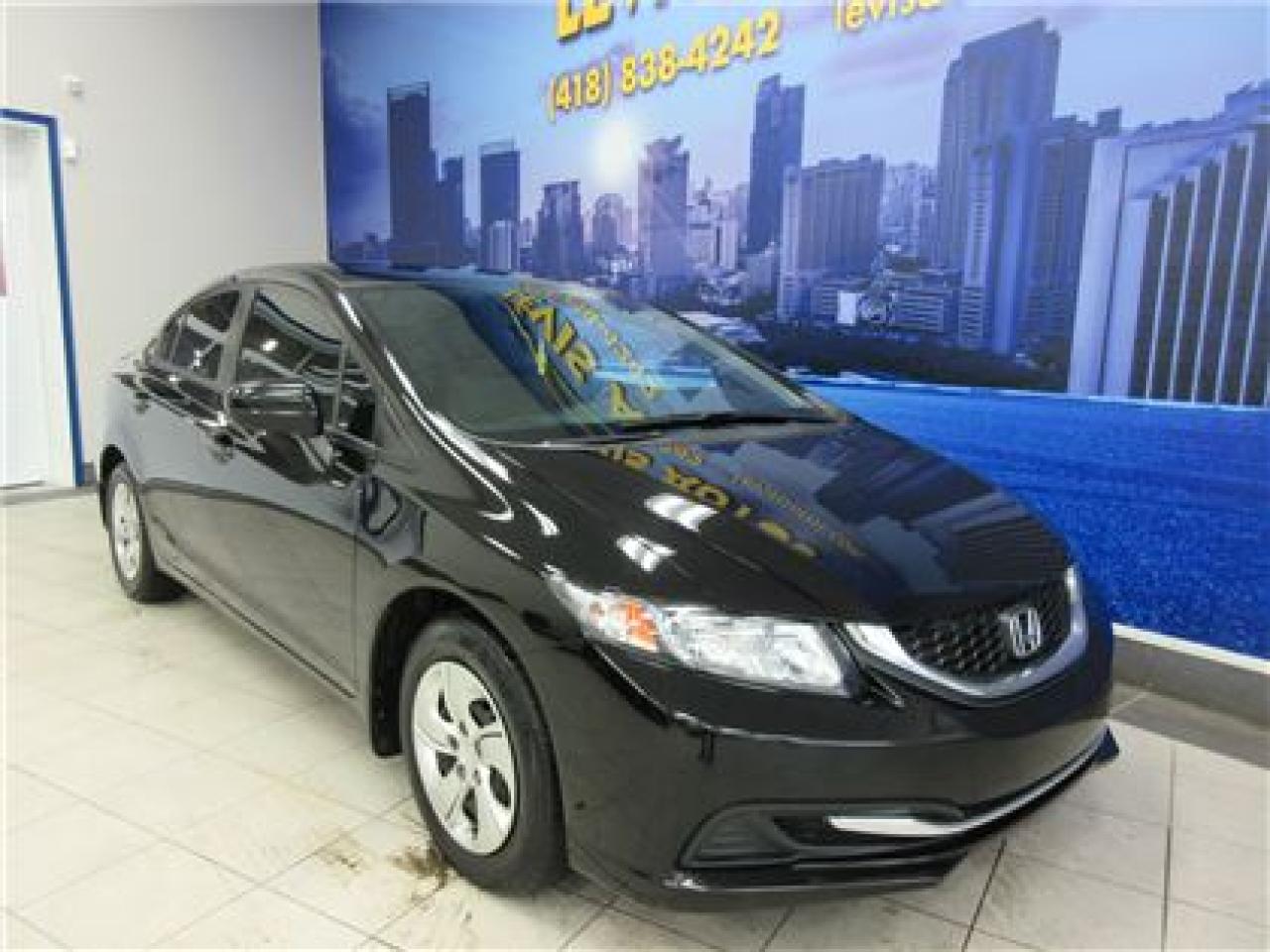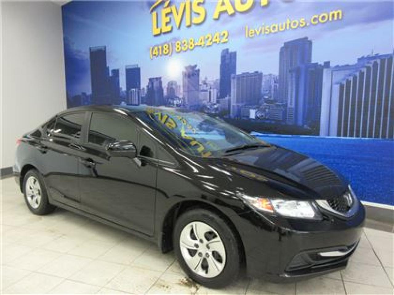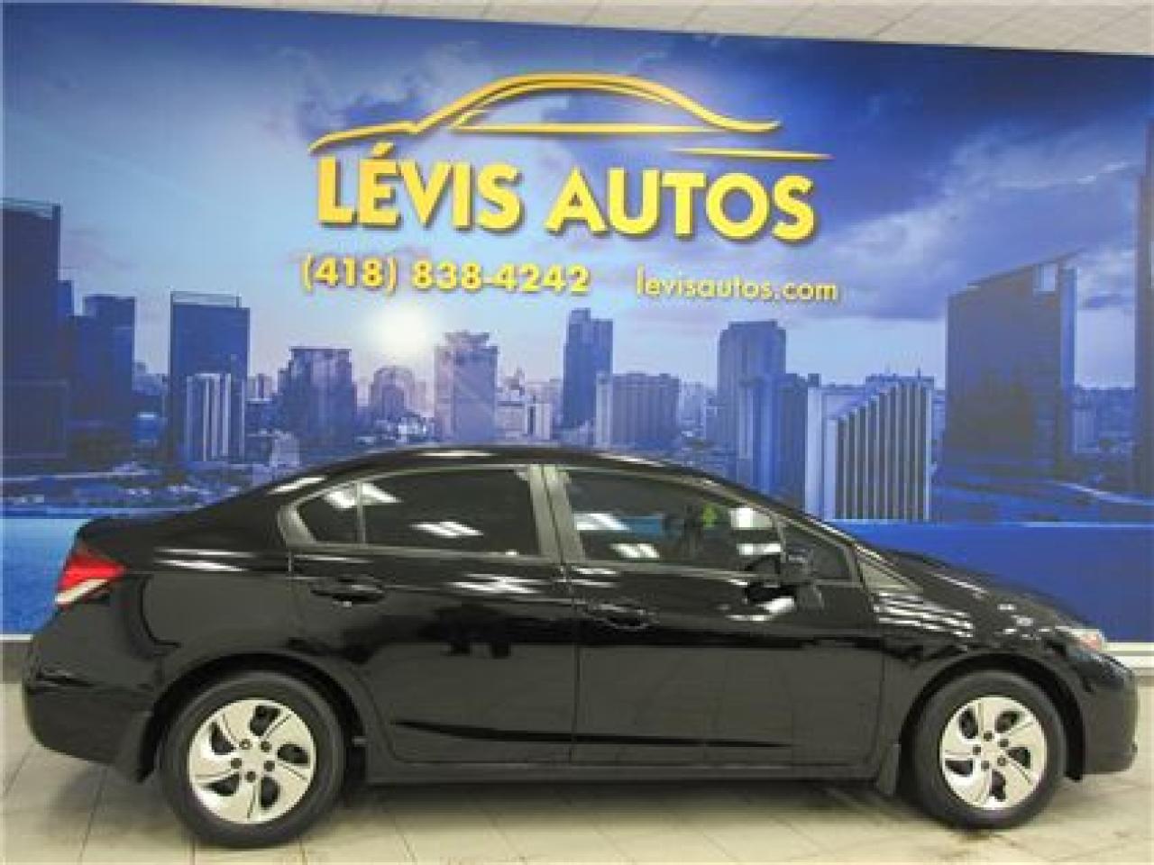 HONDA CIVIC 2014 LX NOIR SIEGE CHAUFFANT / BLUETHOOTH / ÉCRAN TACTILE AVEC 106800 KM CERTIFIÉ ( UNIQUE PROPRIÉTAIRE,RAPPORT CARPROOF DISPONIBLE ) MOTEUR 1.8 LITRES OFFRANT UNE EXCELLENTE PUISSANCE EN PLUS D'ETRE LE PLUS ÉCONOMIQUE DE SA CATÉGORIE ET DURABLE.TRANSMISSION AUTOMATIQUE,INTÉRIEUR EN TISSU CHAUFFANT,MIRROIR CHAUFFANT,BLUETHOOTH,VITRES TEINTÉES,ORDINATEUR DE ROUTE,AIR-CLIMATISÉ,CRUISE CONTROL,LECTEUR CD A ÉCRAN TACTILE MP3 AVEC PRISE AUXILIAIRE/SIRIUS ET USB,VOLANT AJUSTABLE ET TÉLESCOPIQUE,GROUPE ÉLECTRIQUE COMPLET,RPM,FREIN ABS,TÉLÉVEROUILLAGE,ALARME,ANTI-PATINAGE.GARANTIE DE 6 MOIS OU 6000 KM MOTOPROPULSEUR ( GARANTIE PROLONGÉ DISPONIBLE A PRIX IMBATTABLE AVEC LE CAA ET PPP ) TAUX DE FINANCEMENT A PARTIR DE SEULEMENT 4.69 %.VÉHICULE EXTREMEMENT PROPRE ET BIEN ENTRETENUE A VOIR ABSOLUMENT !.!Pour plus info cell:418-554-7565/418-838-4242. NOUS SOMMES SITUÉ AU 4585 BOULEVARD GUILLAUME-COUTURE LÉVIS G6W-6M6.LE PLUS GRAND CHOIX DE VEHICULE USAGE A LEVIS.AU PLAISIR DE VOUS SERVIR.WWW.LEVISAUTOS.COM