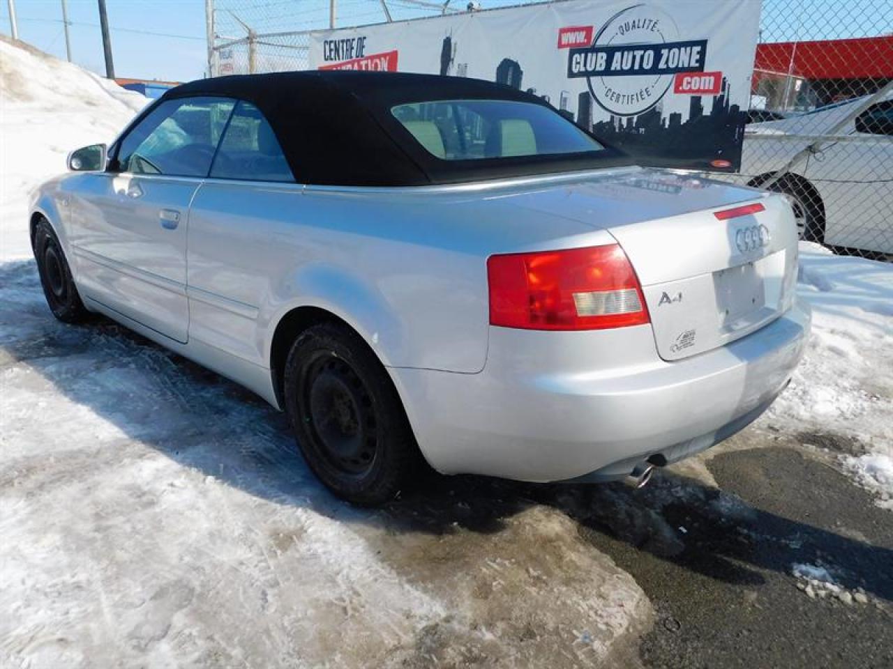 VISA/MASTERCARD ACCEPTÉ AUDI A4 CONVERTIBLE 2004 MOTEUR 4 CYL. 1.8 LITRES 178 700 KM AUTOMATIQUE ANTIBROUILLARD GROUPE ÉLECTRIQUE AIR CLIMATISÉ VOLANT EN CUIR LECTEUR CD INTÉRIEUR EN CUIR CRUISE CONTROL AIR CLIMATISÉ AUTOMATISÉ SIÈGES ÉLECTRIQUES 450-442-2886**CLUBAUTOZONE.COM** Chez CLUB AUTO- ZONE NOUS ACCEPTONS LES ÉCHANGES On LIQUIDE les échanges des concessionnaires pas DE VOITURES INCONNUES des encans. On paie moins chers, on vend moins chers. ***NOUVEAUX VÉHICULES À BAS PRIX TOUS LES JOURS***. Honnêteté, simplicité, transparence. NOTRE CENTRE DE LIQUIDATION EST À SEULEMENT 15 MINUTES DE MONTRÉAL, ACCESSIBLE PAR L'AUTOROUTE 30 PAR LA ROUTE 132 ET LA 116 NOUS SOMMES PRÈS DES PONTS JACQUES CARTIER, CHAMPLAIN, VICTORIA, TUNNEL LOUIS HIPPOLYTE LAFONTAINE N'HÉSITEZ PAS À NOUS CONTACTER, CAR NOUS SOMMES DISPONIBLES À RÉPONDRE À VOS DEMANDES : CLUB AUTO ZONE.COM VENEZ VOIR NOTRE INVENTAIRE SUR PLACE AU 1310, BOUL TASCHEREAU LONGUEUIL J4P 3M4 450-442-2886 AU PLAISIR DE VOUS VOIR**CLUBAUTOZONE.COM**