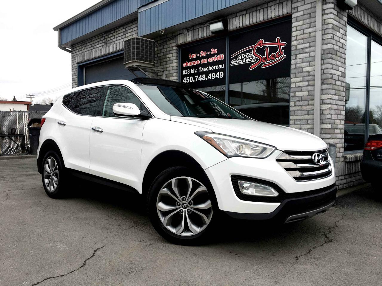 2013 HYUNDAI SANTA FE 2.0T LIMITED SPORT AWD EN SUPERBE CONDITION MECANIQUE ET ESTHETIQUE!!!! JAMAIS ACCIDENTE, 1 SEUL PROPRIETAIRE, RAPPORT CARPROOF EN MAIN, BLANC/NOIR, SYSTEME DE NAVIGATION, CAMERAS DE RECULE, VOLANT CHAUFFANT, INTERIEUR CUIR, SIEGES CHAUFFANTS OU CLIMATISE, TOIT OUVRANT PANORAMIQUE, BLANC/NOIR, 110036KM, TRANSMISSION AUTOMATIQUE, AIR CLIMATISE BI-ZONE, TECHNOLOGIE BLUETOOTH, AILERON, VITRES TEINTEES, SENSOR PARK ASSIST SONAR ET PLUS...A VOIR!!!!! GARANTIE ET INSPECTION INCLUSES, POSSIBILITE D'AJOUTER UNE GARANTIE PROLONGEE DE 5 ANS OU 200000KM ,FINANCEMENT BANCAIRE MAISON 1E 2E 3E CHANCE DE CREDIT DISPONIBLE, AUCUN CAS DE CREDIT REFUSE, www.autoeleganceselect.ca ou www.autoeleganceselect.com ,