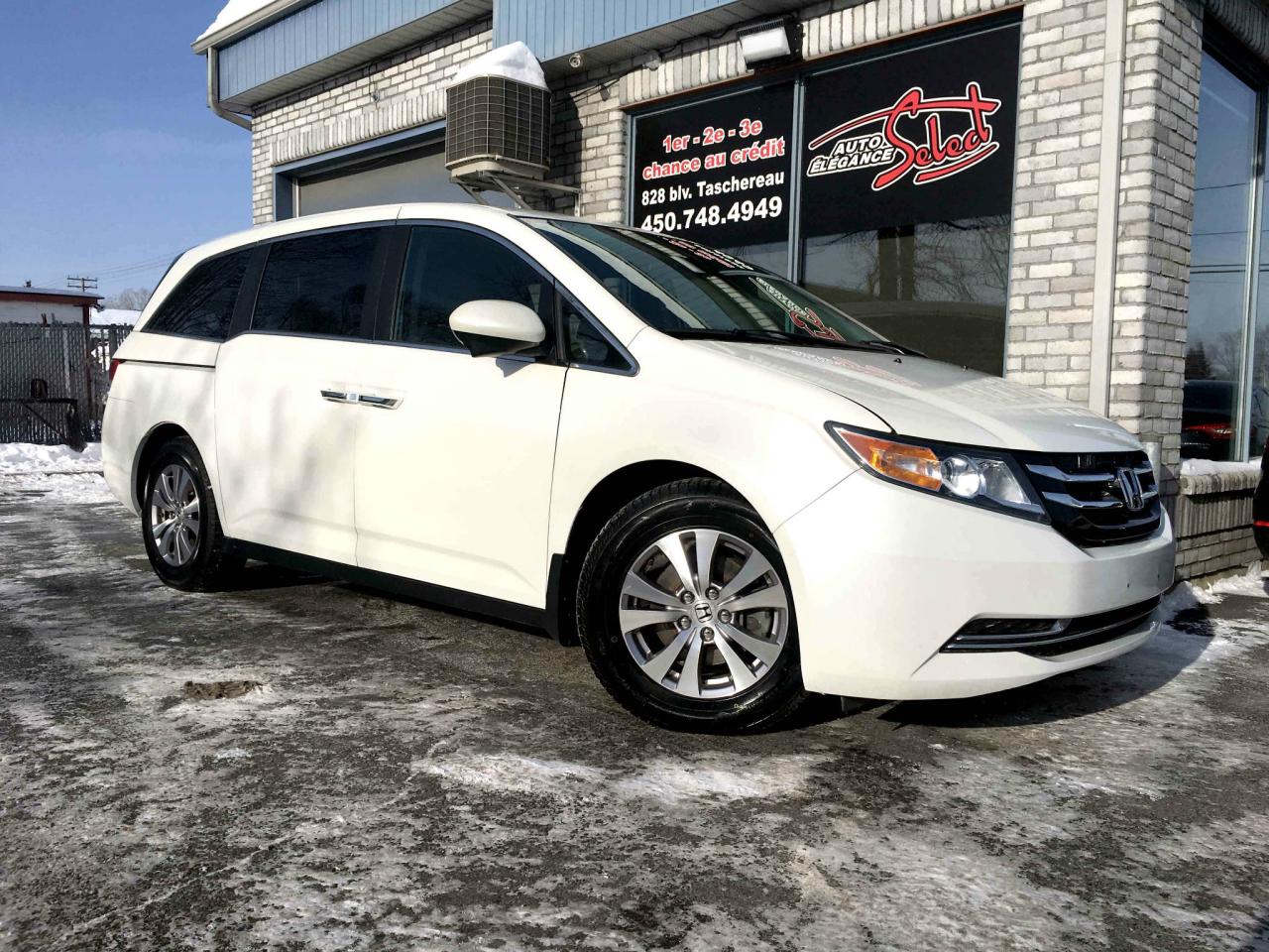 2014 HONDA ODYSSEY EX 8 PASSAGERS EN SUPERBE CONDITION MECANIQUE ET ESTHETIQUE!!!! BLANC PERLE/GRIS, JANTES 17 POUCES AVEC QUATRES PNEUS NEUF, RETOUR DE LOCATION DE CHEZ HONDA CANADA, 1 SEUL PROPRIETAIRE, RAPPORT CARPROOF EN MAIN, PORTES COULISSANTES ELECTRIQUES, AIR CLIMATISE BI-ZONE AVANT ET CLIMATISATION ARRIERE, CAMERAS DE RECULE ET LATERAL, BLUETOOTH, TRANSMISSION AUTOMATIQUE, MOTEUR 3.5 LITRES 6 CYLINDRES, 103760KM, VITRES TEINTEES, AILERON, SIEGES ELECTRIQUES ET CHAUFFANTS ET PLUS...A VOIR!!!!! GARANTIE ET INSPECTION INCLUSES, POSSIBILITE D'AJOUTER UNE GARANTIE PROLONGEE DE 5 ANS OU 200000KM ,FINANCEMENT BANCAIRE MAISON 1E 2E 3E CHANCE DE CREDIT DISPONIBLE, AUCUN CAS DE CREDIT REFUSE, www.autoeleganceselect.ca ou www.autoeleganceselect.com ,