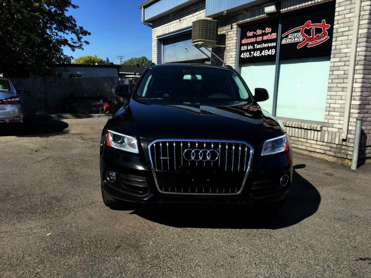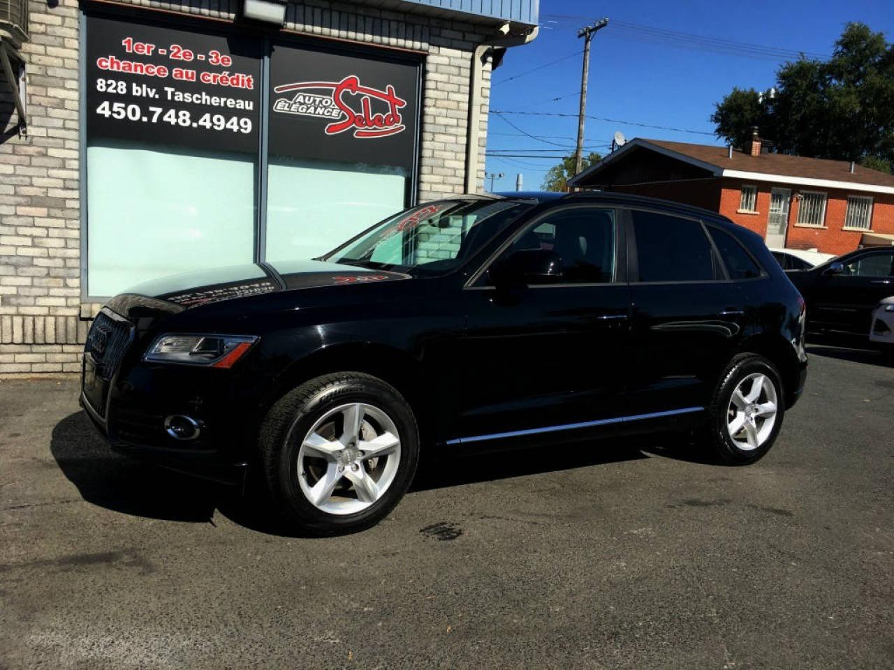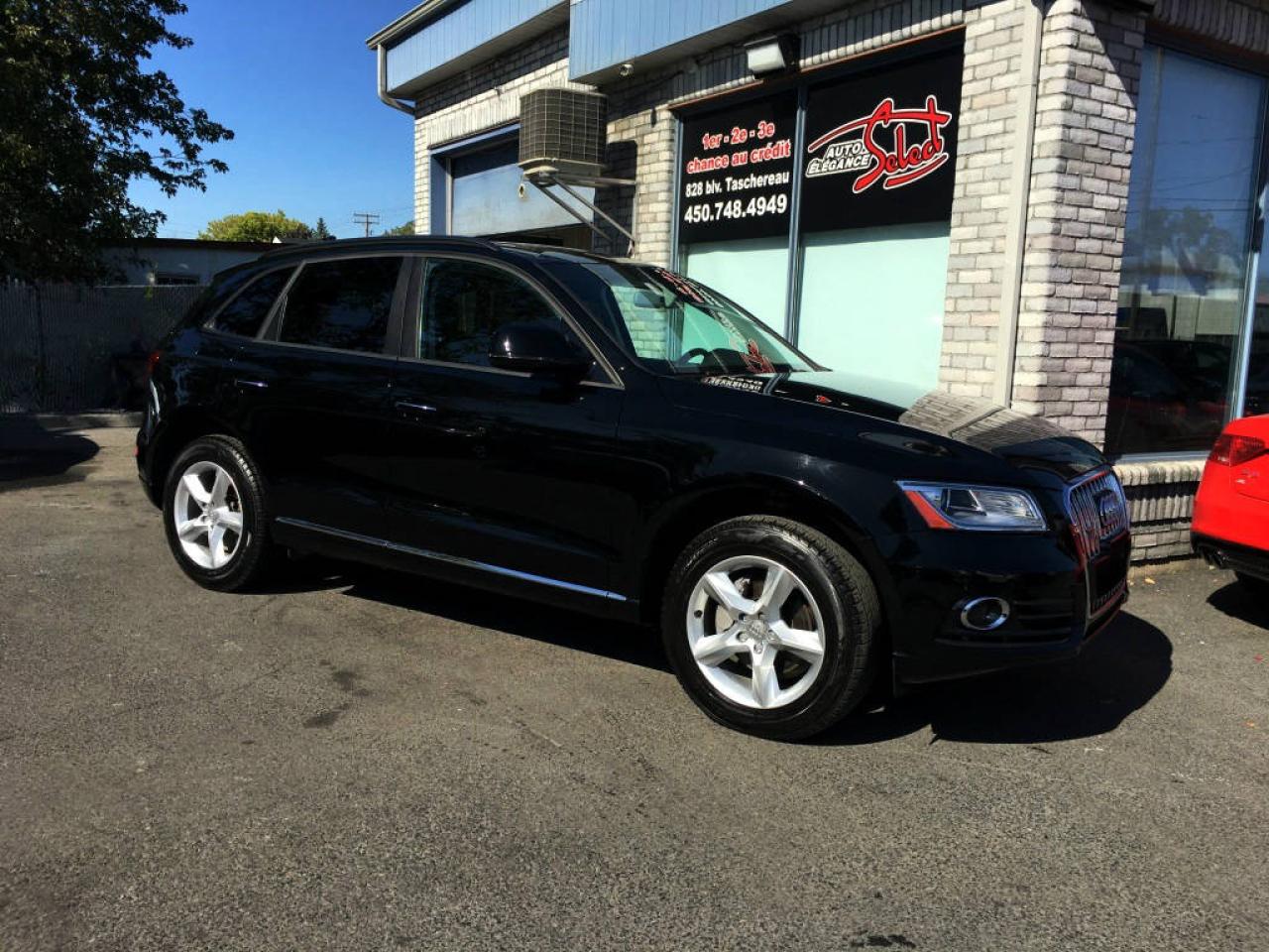 2016 AUDI Q5 2.0 TFSI QUATTRO KOMFORT PKG EN SUPERBE CONDITION MECANIQUE ET ESTHETIQUE!!!!! NOIR/NOIR, JAMAIS ACCIDENTE, 68260KM, INTERIEUR CUIR, SIEGES ELECTRIQUES ET CHAUFFANTS, JANTES ALUMINIUM, AIR CLIMATISE, TRANSMISSION AUTOMATIQUE, HAYON ELECTRIQUE, TRACTION INTEGRALE, AILERON ET PLUS.... A VOIR!!!!! BALANCE DE GARANTIE AUDI CANADA DE 4 ANS OU 80000KM ET INSPECTION INCLUSES, POSSIBILITE D'AJOUTER UNE GARANTIE PROLONGEE DE 5 ANS OU 200000KM , FINANCEMENT BANCAIRE MAISON 1E 2E 3E CHANCE DE CREDIT DISPONIBLE, AUCUN CAS DE CREDIT REFUSE, www.autoeleganceselect.ca ou www.autoeleganceselect.com ,
