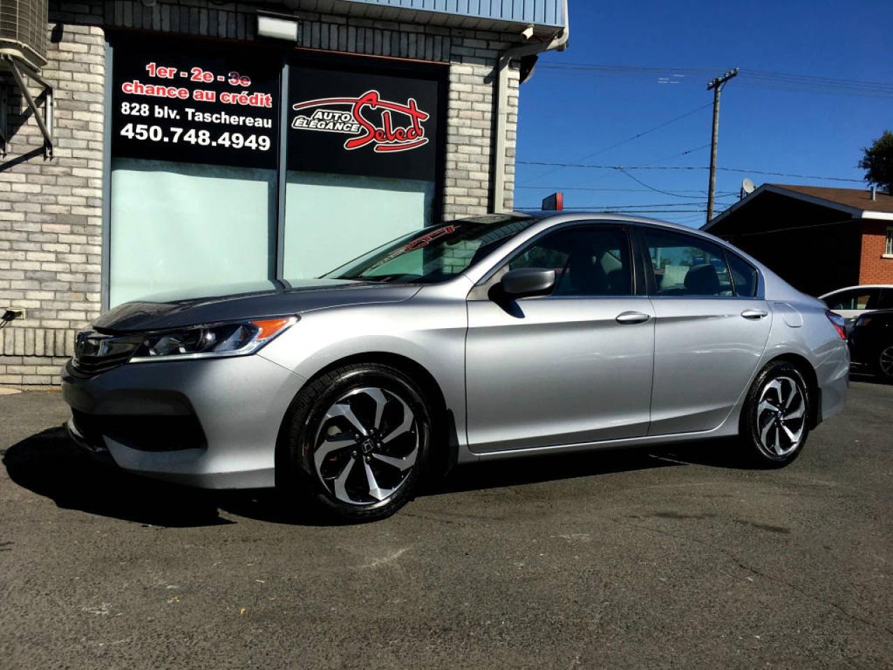 2016 HONDA ACCORD LX SEDAN AVEC CAMERAS DE RECULE A L'ETAT NEUF!!! TRANSMISSION AUTOMATIQUE, JAMAIS ACCIDENTE, MOTEUR 2.4 LITRES 4 CYLINDRES, JANTES ALUMINIUM, 4 PORTES, 5 PASSAGERS, TECHNOLOGIE BLUETOOTH, TRACTION AVANT, SIEGE ELECTRIQUES, CAMERAS DE RECULE, SENSOR PARK ASSIST SONAR ET PLUS.... A VOIR!!!!! BALANCE DE GARANTIE HONDA CANADA ET INSPECTION INCLUSES, POSSIBILITE D'AJOUTER UNE GARANTIE PROLONGEE DE 5 ANS OU 200000KM , FINANCEMENT BANCAIRE MAISON 1E 2E 3E CHANCE DE CREDIT DISPONIBLE, AUCUN CAS DE CREDIT REFUSE, www.autoeleganceselect.ca ou www.autoeleganceselect.com ,