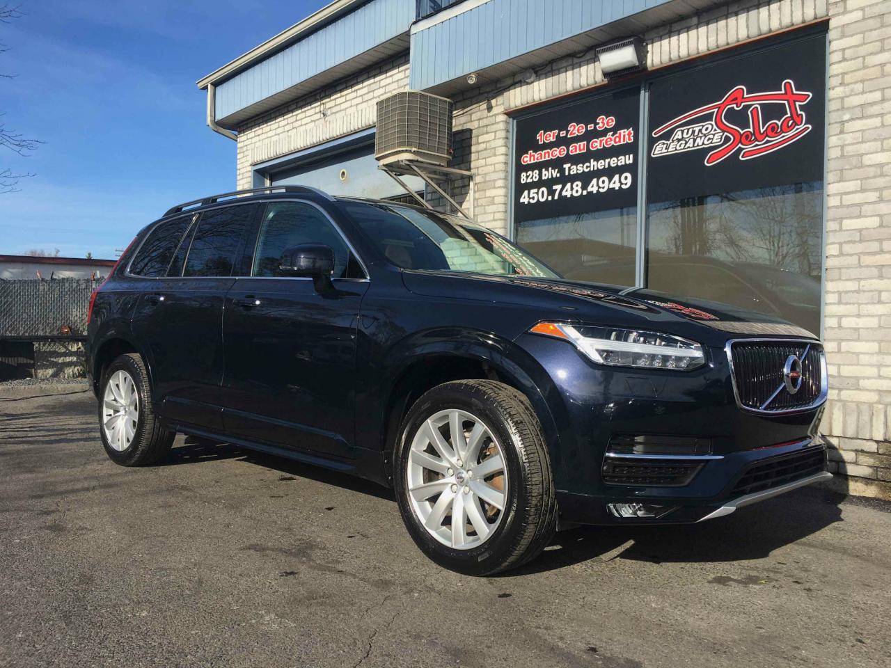 2016 VOLVO XC90 AWD T6 MOMENTUM 7 PASSAGERS A L'ETAT NEUF!!!! JAMAIS ACCIDENTE, 1 SEUL PROPRIETAIRE, RAPPORT CARPROOF EN MAIN, BLEU MARIN/BRUN, TOIT OUVRANT PANORAMIQUE, INTERIEUR CUIR, SYSTEME DE NAVIGATION, CAMERAS DE RECULE, TRACTION INTEGRALE, AIR CLIMATISE BI-ZONE, TRANSMISSION AUTOMATIQUE, 70760KM, AILERON, JANTES ALUMINIUM, VITRES TEINTEES, PARK ASSIST SONAR, MOTEUR 2.0 LITRES 4 CYLINDRES ET PLUS...A V OIR!!!! BALANCE DE GARANTIE VOLVO CANADA ET INSPECTION INCLUSES, POSSIBILITE D'AJOUTER UNE GARANTIE PROLONGEE DE 5 ANS OU 200000KM ,FINANCEMENT BANCAIRE MAISON 1E 2E 3E CHANCE DE CREDIT DISPONIBLE, AUCUN CAS DE CREDIT REFUSE, www.autoeleganceselect.ca ou