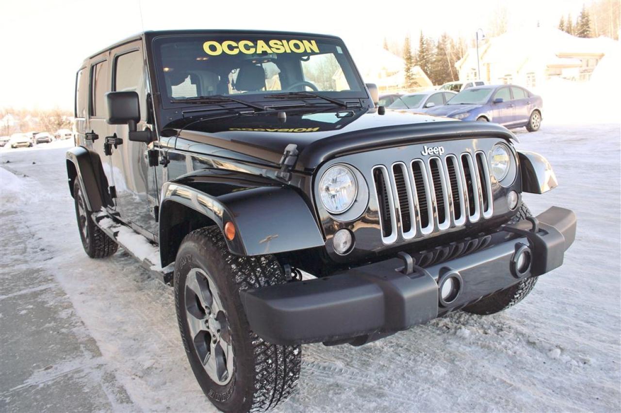 **Rapport d'historique + d'inspection CERTIFIÉ **Véhicule disponible pour une DURÉE LIMITÉE **Programme 100% approuvé et 0$ comptant UNIQUE (financement facile et rapide) **APPROBATION en 10 minutes / 250 plans de financement disponibles **Programme TRANQUILITÉ D'ESPRIT CERTIFIÉ et remise à neuf offert **Prêt pour LIVRAISON IMMÉDIATE **ON REPREND TOUT EN ÉCHANGE : Autos, camions, VTT, motos, motoneiges, bateaux, VR et plus **Jusqu'à 35% DE PLUS que la valeur du marché pour votre échange **LIVRAISON PARTOUT au Québec et au Canada **Informez-vous! + de 500 AUTRES VÉHICULES et camions d'occasion sur place. Plus de 6000 autres disponibles sur demande **WE SPEAK ENGLISH TOO! SO DON'T HESITATE TO CALL US OR TO COME SEE US **Toit amovible **Système de navigation **Connexion Bluetooth / Mains libres **Ensemble de remorquage **Marche-pieds **Jantes aluminium **Sièges chauffants **Écran tactile 5 po **Climatiseur **Régulateur de vitesse **Télédéverrouillage **Prises de courant 12V **Et beaucoup plus! **Removable roof **Navigation system **Bluetooth connection / Hands-free device **Towing assembly **Running boards **Aluminium Mags **Heated seats **5 inch touch screen **A/C clean system **Cruise control **Remote keyless entry **12V power outlets **And much more! **Certified CarProof report + certified inspection **Vehicle available for a LIMITED TIME **EXCLUSIVE 100% approved credit and $0 cash down Program (easy financing) **BE APPROVED in 10 minutes / 250 financing plans **Ready for FAST DELIVERY **WE TAKE ALL TRADE-INS: cars, trucks, ATVS, snowmobiles, motorcycles, boats, RV and more. **Up to 35% MORE for your trade-in **DELIVERY EVERYWHERE in Quebec and Canada **Contact us! More than 500 OTHER CARS, SUV and trucks available. Nos conseillers certifiés et professionnels sauront vous offrir une expérience dachat personnalisée et conviviale pour lachat de votre nouveau véhicule. Certains accessoires additionnels en sus. Bien que nous ayons pris toutes les mesures raisonnables pour nous assurer de la précision des renseignements fournis, nous ne sommes pas responsables de toute erreur ou omission. Veuillez contre-vérifier les renseignements auprès de lun de nos experts. Dans le cas où un véhicule publié contiendrait des renseignements inexacts à cause d'une erreur typographique, photographique, sur le prix ou autre, le concessionnaire se réserve le droit de refuser ou d'annuler toute demande. Contactez-nous aussi pour en savoir plus sur nos rabais additionnels en concession. VERSIONS DISPONIBLES : Sport, Willys Wheeler, Sahara, 75 anniv., Rubicon Our certified and professional consultants will offer you a personalized and user-friendly purchasing experience for your new vehicle. Although we have taken all reasonable steps to ensure the accuracy of the information provided, we are not responsible for any errors or omissions. Please check with one of our experts. In the event that a published vehicle contains inaccurate information due to a typographical, photographic, price or other error, the dealer reserves the right to refuse or cancel any request. Contact us to learn more about our additional dealer discounts