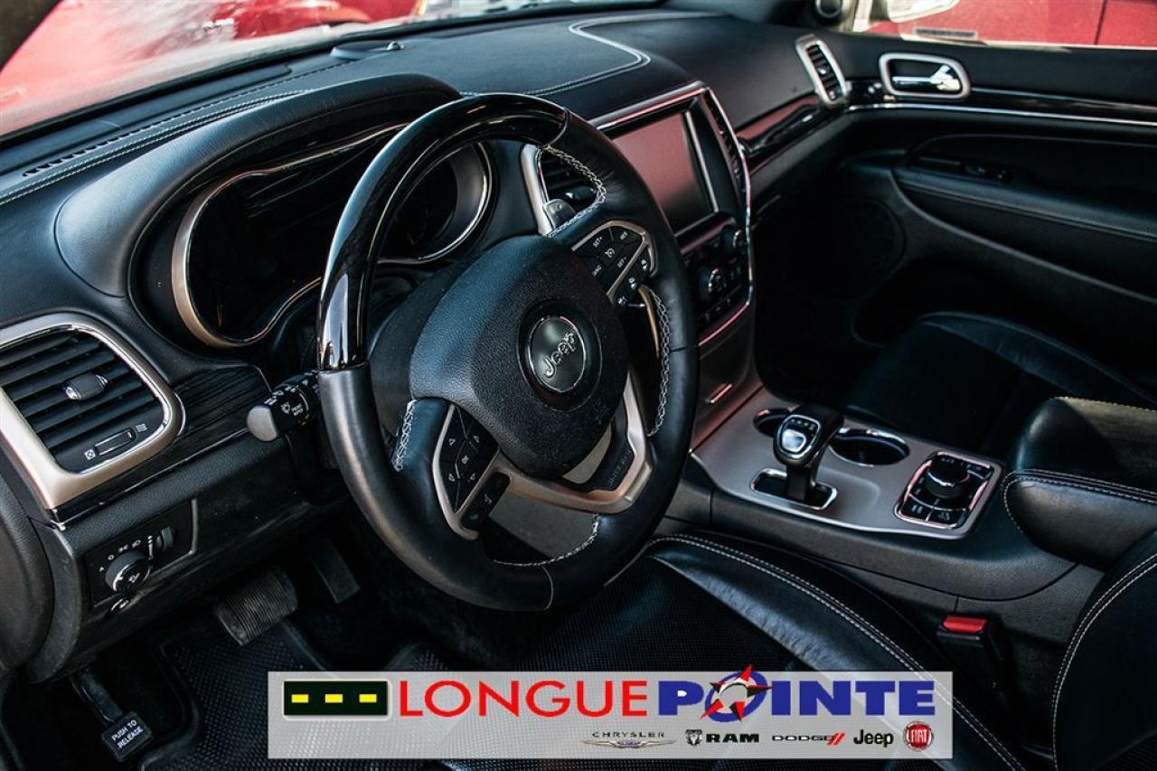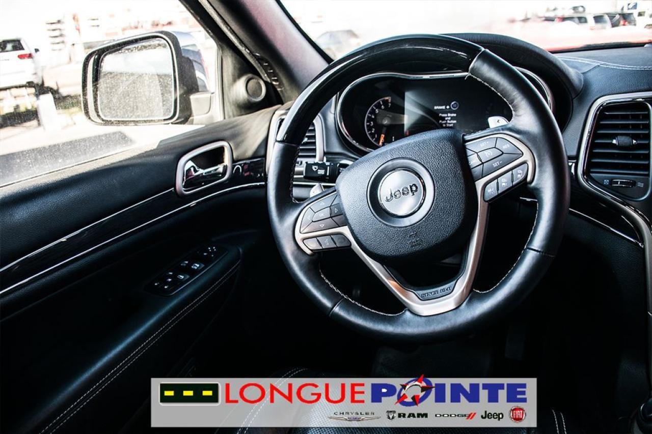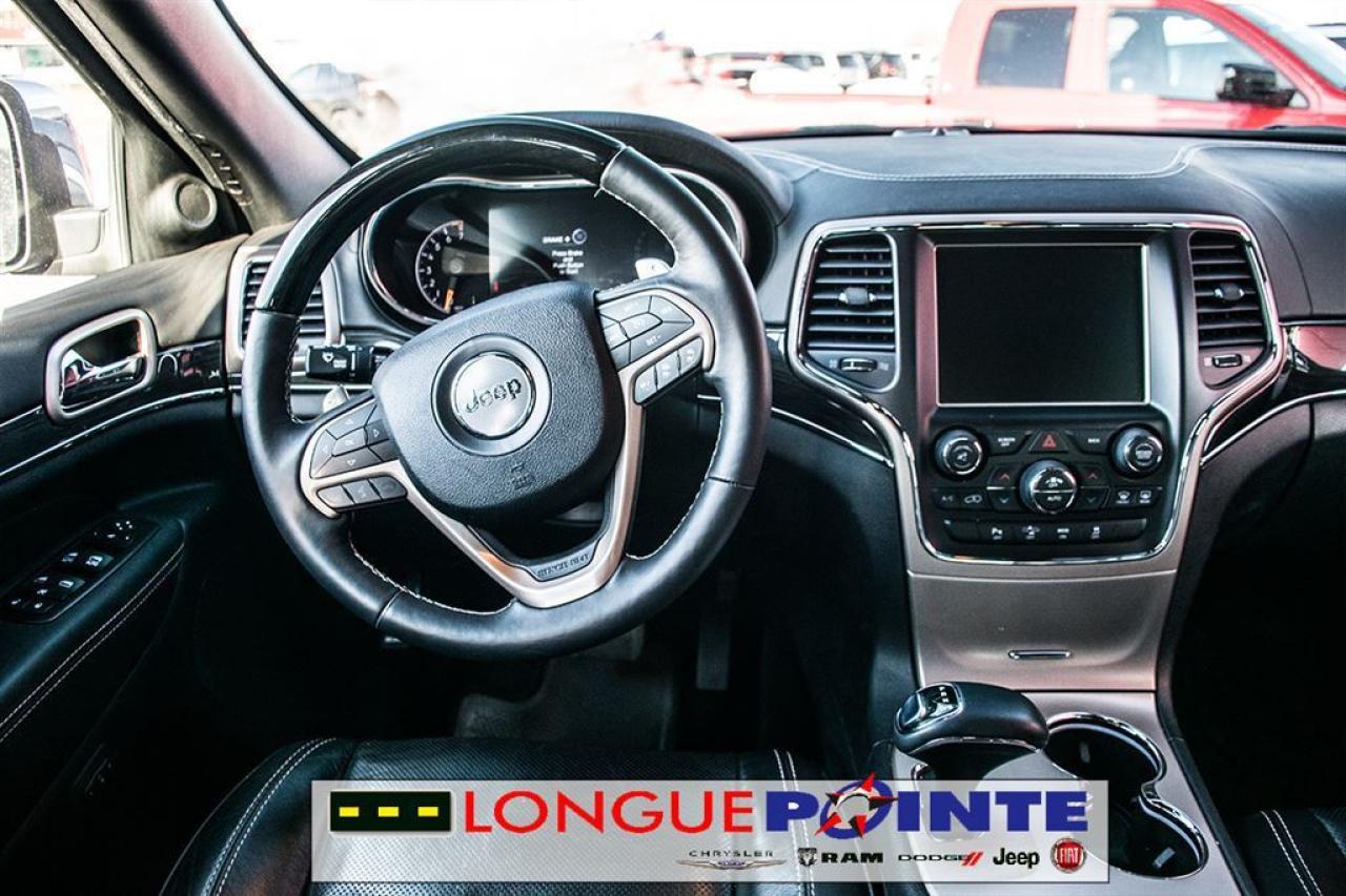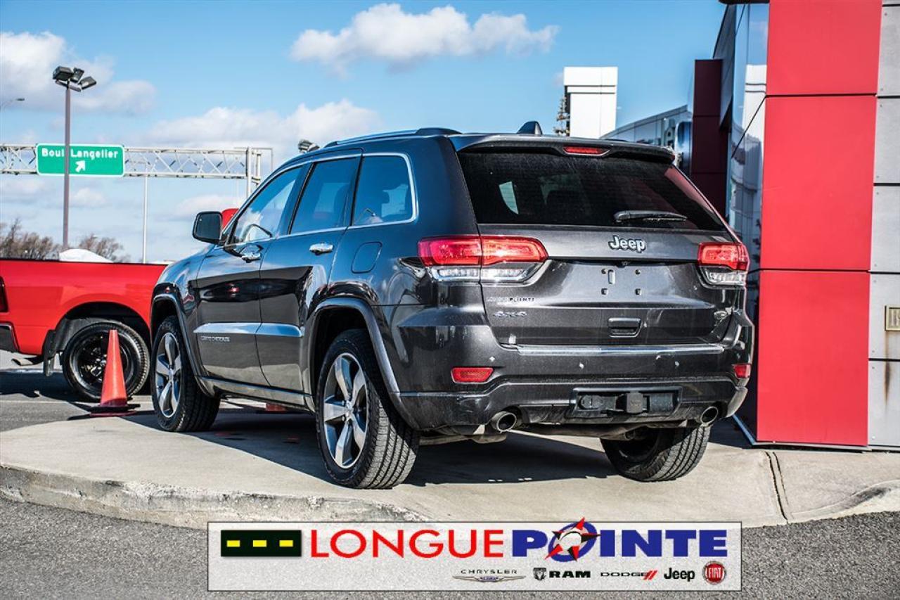 Le très Grand Cherokee Overland 4X4 TOUT ÉQUIPPÉ! TRÈS PROPRE ET BIEN EQUIPPÉ avec: - 3.6L V-6 Cyl - Transmission automatique 8 vitesses - Garniture des sièges en cuir - Volant chauffant et en cuir - Pommeau de levier sélecteur gainé de cuir - Système de Navigation - Uconnect Phone - Dimension de l'écran ACL principal: 8.4" - SiriusXM - Toit ouvrant à commande électrique - Sièges avants et arrières chauffants - Sièges avant ventilés - Air climatisé Bi-Zone - Sonar de stationnement: arrière - Deux sacs gonflables frontaux - Sonar de stationnement: arrière - Phares antibrouillards avant - Phares entièrement automatiques - Caméra d'aide au stationnement arrière - Dispositif anti-louvoiement de la remorque - Attelage de remorque RIGOUREUSE INSPECTION en 112 points ET doté d'un historique CarProof®, pour une plus grande TRANQUILITÉ D'ESPRIT. OUVERT LE SAMEDI ======================================================== Beautiful Grand Cherokee Overland 4WD LOADED! VERY CLEAN AND WELL EQUIPPED with: - 3.0L V-6 Cyl - 8 speed Automatic - Heated front and rear seats - Leather upholstery - Leather heated steering wheel - Ventilated front seats - Navigation system - Uconnect Phone - Primary LCD size: 8.4" - SiriusXM - Front dual zone A/C - Leather shift knob - Dual front impact airbags - Parking sensors: rear - Front fog lights - Auto high-beam headlights - Exterior parking camera rear - Trailer hitch receiver - Trailer sway control RIGOROUS 112 POINTS INSPECTION AND a CarProof® history, for a greater PEACE OF MIND. OPEN ON SATURDAY