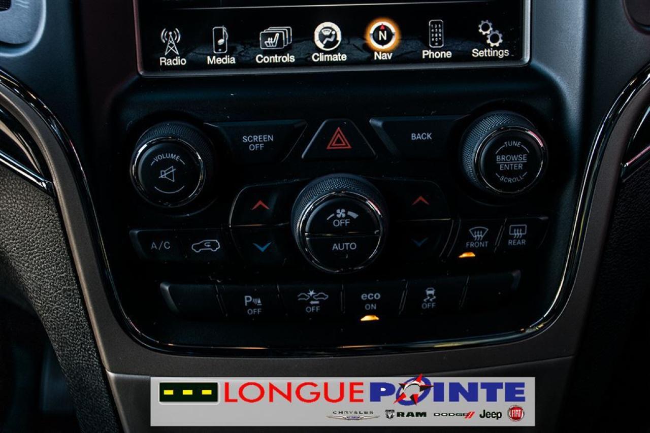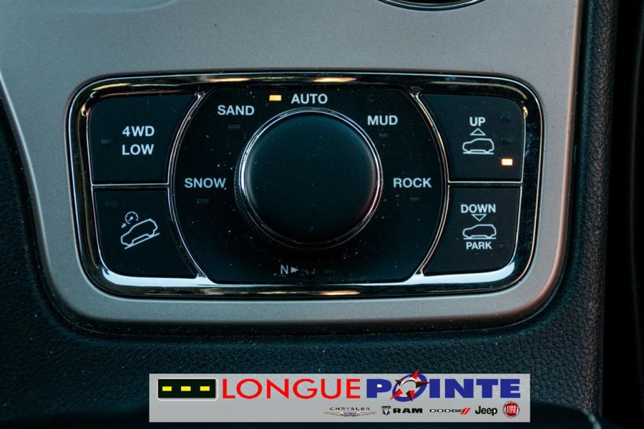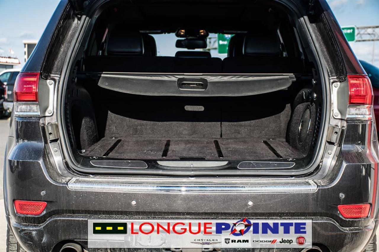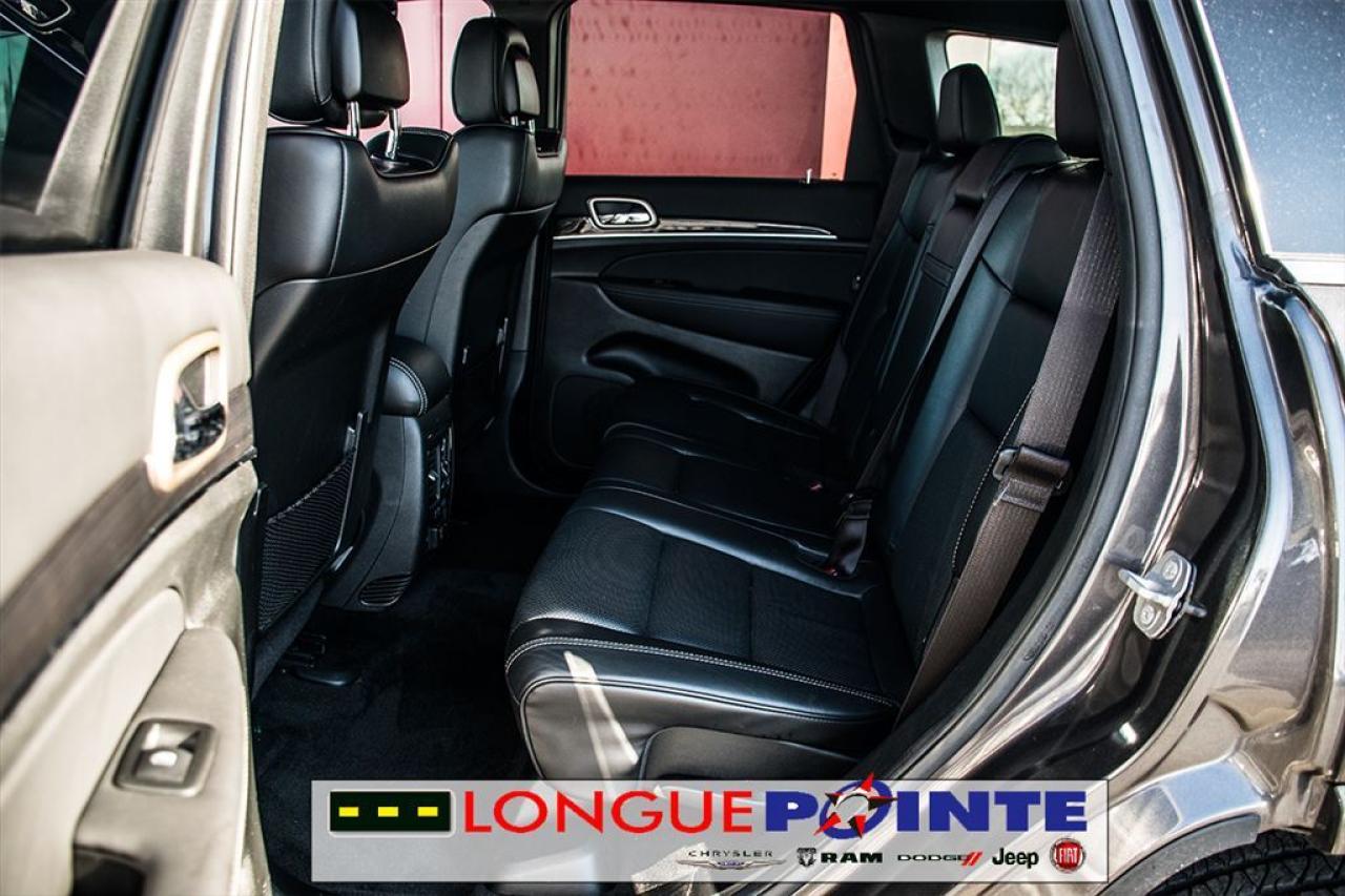 Le très Grand Cherokee Overland 4X4 TOUT ÉQUIPPÉ! TRÈS PROPRE ET BIEN EQUIPPÉ avec: - 3.6L V-6 Cyl - Transmission automatique 8 vitesses - Garniture des sièges en cuir - Volant chauffant et en cuir - Pommeau de levier sélecteur gainé de cuir - Système de Navigation - Uconnect Phone - Dimension de l'écran ACL principal: 8.4" - SiriusXM - Toit ouvrant à commande électrique - Sièges avants et arrières chauffants - Sièges avant ventilés - Air climatisé Bi-Zone - Sonar de stationnement: arrière - Deux sacs gonflables frontaux - Sonar de stationnement: arrière - Phares antibrouillards avant - Phares entièrement automatiques - Caméra d'aide au stationnement arrière - Dispositif anti-louvoiement de la remorque - Attelage de remorque RIGOUREUSE INSPECTION en 112 points ET doté d'un historique CarProof®, pour une plus grande TRANQUILITÉ D'ESPRIT. OUVERT LE SAMEDI ======================================================== Beautiful Grand Cherokee Overland 4WD LOADED! VERY CLEAN AND WELL EQUIPPED with: - 3.0L V-6 Cyl - 8 speed Automatic - Heated front and rear seats - Leather upholstery - Leather heated steering wheel - Ventilated front seats - Navigation system - Uconnect Phone - Primary LCD size: 8.4" - SiriusXM - Front dual zone A/C - Leather shift knob - Dual front impact airbags - Parking sensors: rear - Front fog lights - Auto high-beam headlights - Exterior parking camera rear - Trailer hitch receiver - Trailer sway control RIGOROUS 112 POINTS INSPECTION AND a CarProof® history, for a greater PEACE OF MIND. OPEN ON SATURDAY