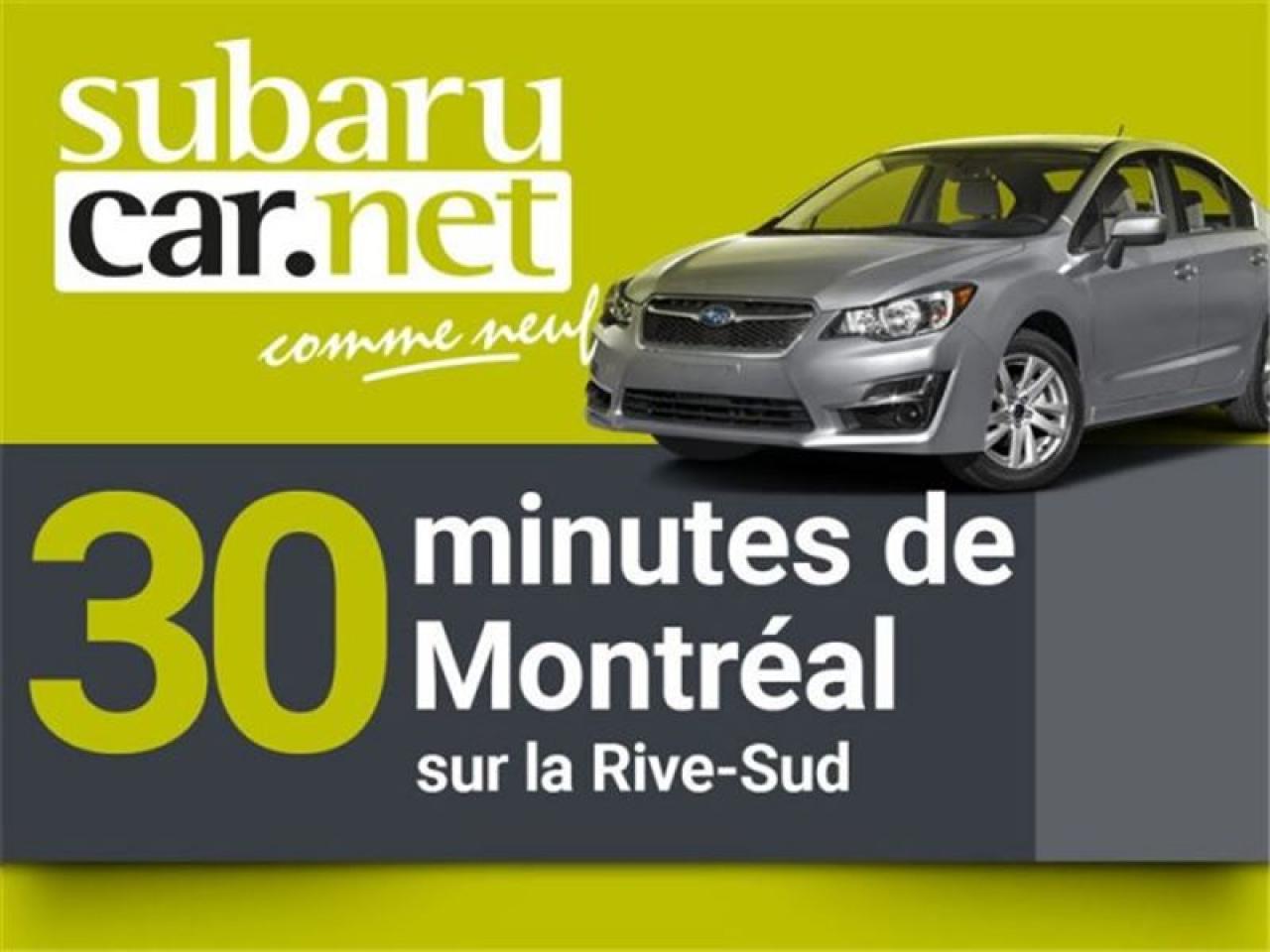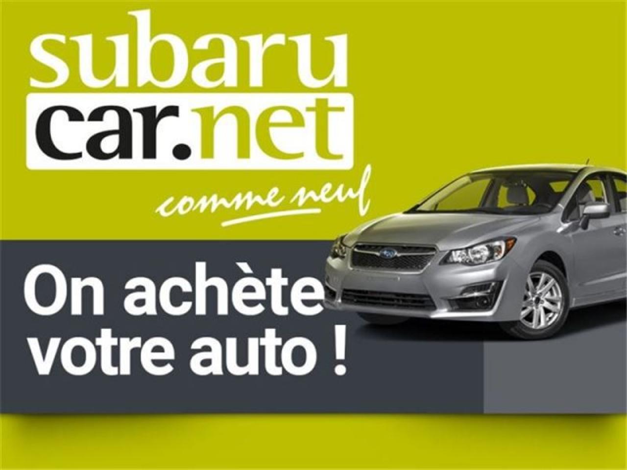 **SUR RENDEZ-VOUS SEULEMENT** REGULATEUR DE VITESSE, VITRES ELECTRIQUES...*SubaruCAR.net est un concessionnaire et centre de service indépendant. Nous ne sommes PAS un centre de service ou un concessionnaire Subaru autorisé et nous ne sommes d'AUCUNE façon affiliés avec le groupe de Société Subaru. Le paiement proposé est pour une durée de 36 mois, au taux de 6,99%, avec un versement comptant initial de $0 ou valeur d'échange équivalente nécessaire. Les frais de crédit total sont de 950,88$, avec une obligation totale de 9660,21$. Les taxes sont incluses (sujet à l'approbation de votre crédit, certaines conditions s'appliquent).Nous sommes ouverts: du lundi au jeudi de 8h à 21h; le vendredi et samedi de 9h à 17h. Demandez-nous de l'historique du rapport Carproof. SubaruCAR.net est un concessionnaire automobile spécialisé dans la vente et l'entretien de Subaru d'occasion. Tous nos frais d'inspection et de reconditionnement des véhicules sont inclus dans notre prix. Aucun frais caché. Nos algorithmes vous permettent d'avoir le meilleur rapport qualité-prix. Plus de 100 véhicules en inventaire. La plupart de nos véhicules sont certifiés et prêts pour la livraison. Nous livrons partout au pays. Venez voir le véhicule sur notre site internet pour plus de détail: https://subarucar.net. Demandez-nous une évaluation de votre échange nous sommes à la recherche de véhicule pour notre inventaire. Téléphonez pour un financement facile, sans tracas, 1re, 2e et 3e chance au crédit. Aucun cas refusé, financement maison, taux avantageux, livraison rapide. Nous avons plusieurs programmes de garantis pour s'ajuster à vos besoins. We can serve you in English if you want. L'équipement peut varier, voire en concession. Faites affaire avec une entreprise familiale de deuxième génération qui existe depuis 1960. Un Subaru, ça s'achète chez un spécialiste. Nous sommes garage recommandé par CAA Québec depuis 1994. Nous sommes situés à 30 minutes de Montréal sur la rive sud. Contactez-nous au SubaruCAR.net, 300 boul. Richelieu, route 112, Richelieu, Vente@SubaruCAR.net, SMS MMS texto 514.703.7822, Téléphone 1.450.914.1009.
