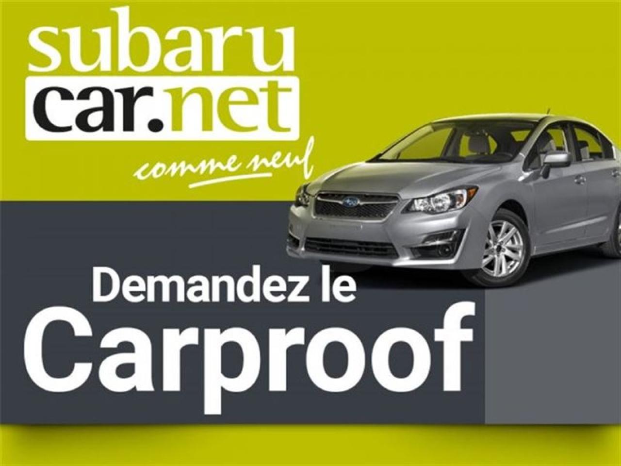 NAVIGATION, CAMÉRA DE RECUL, SIÈGE EN CUIR, HAUT PARLEUR HAUT GAMME, SIÈGE CHAUFFANT, BAS KILO, À NE PAS MANQUER!!*SubaruCAR.net est un concessionnaire et centre de service indépendant. Nous ne sommes PAS un centre de service ou un concessionnaire Subaru autorisé et nous ne sommes dAUCUNE façon affiliés avec le groupe de Société Subaru. Le paiement proposé est pour une durée de 84 mois, au taux de 6,99%, avec un versement comptant initial de $0 ou valeur d'échange équivalente nécessaire. Les frais de crédit total sont de 8561,9$, avec une obligation totale de 40849,15$. Les taxes sont incluses (sujet à l'approbation de votre crédit, certaines conditions s'appliquent).Nous sommes ouverts: du lundi au jeudi de 8h à 21h; le vendredi et samedi de 9h à 17h. Demandez-nous de l'historique du rapport Carproof. SubaruCAR.net est un concessionnaire automobile spécialisé dans la vente et l'entretien de Subaru d'occasion. Tous nos frais d'inspection et de reconditionnement des véhicules sont inclus dans notre prix. Aucun frais caché. Nos algorithmes vous permettent d'avoir le meilleur rapport qualité-prix. Plus de 100 véhicules en inventaire. La plupart de nos véhicules sont certifiés et prêts pour la livraison. Nous livrons partout au pays. Venez voir le véhicule sur notre site internet pour plus de détail: https://subarucar.net. Demandez-nous une évaluation de votre échange nous sommes à la recherche de véhicule pour notre inventaire. Téléphonez pour un financement facile, sans tracas, 1re, 2e et 3e chance au crédit. Aucun cas refusé, financement maison, taux avantageux, livraison rapide. Nous avons plusieurs programmes de garantis pour s'ajuster à vos besoins. We can serve you in English if you want. L'équipement peut varier, voire en concession. Faites affaire avec une entreprise familiale de deuxième génération qui existe depuis 1960. Un Subaru, ça s'achète chez un spécialiste. Nous sommes garage recommandé par CAA Québec depuis 1994. Nous sommes situés à 30 minutes de Montréal sur la rive sud. Contactez-nous au SubaruCAR.net, 300 boul. Richelieu, route 112, Richelieu, Vente@SubaruCAR.net, SMS MMS texto 514.703.7822, Téléphone 1.450.914.1009.
