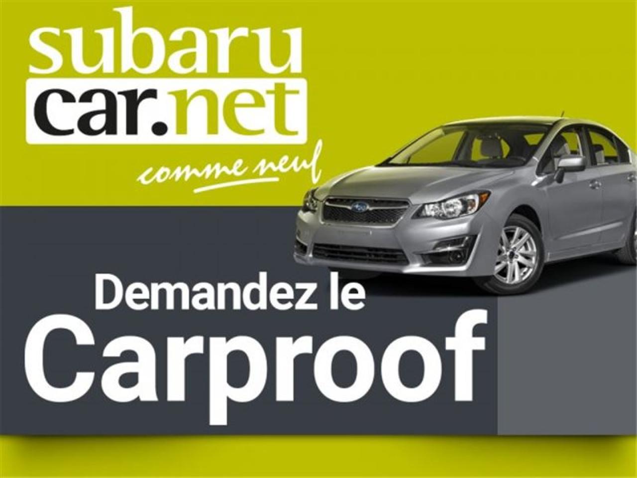 SYSTEME DE NAVIGATION, CAMERA DE RECUL, BLUETOOTH, INTERIEUR CUIR, VITRES TEINTEES, PUSH START... A VOIR !!!!!*SubaruCAR.net est un concessionnaire et centre de service indépendant. Nous ne sommes PAS un centre de service ou un concessionnaire Subaru autorisé et nous ne sommes d'AUCUNE façon affiliés avec le groupe de Société Subaru. Le paiement proposé est pour une durée de 84 mois, au taux de 6,99%, avec un versement comptant initial de $0 ou valeur d'échange équivalente nécessaire. Les frais de crédit total sont de 11763,54$, avec une obligation totale de 56124,32$. Les taxes sont incluses (sujet à l'approbation de votre crédit, certaines conditions s'appliquent).Nous sommes ouverts: du lundi au jeudi de 8h à 21h; le vendredi et samedi de 9h à 17h. Demandez-nous de l'historique du rapport Carproof. SubaruCAR.net est un concessionnaire automobile spécialisé dans la vente et l'entretien de Subaru d'occasion. Tous nos frais d'inspection et de reconditionnement des véhicules sont inclus dans notre prix. Aucun frais caché. Nos algorithmes vous permettent d'avoir le meilleur rapport qualité-prix. Plus de 100 véhicules en inventaire. La plupart de nos véhicules sont certifiés et prêts pour la livraison. Nous livrons partout au pays. Venez voir le véhicule sur notre site internet pour plus de détail: https://subarucar.net. Demandez-nous une évaluation de votre échange nous sommes à la recherche de véhicule pour notre inventaire. Téléphonez pour un financement facile, sans tracas, 1re, 2e et 3e chance au crédit. Aucun cas refusé, financement maison, taux avantageux, livraison rapide. Nous avons plusieurs programmes de garantis pour s'ajuster à vos besoins. We can serve you in English if you want. L'équipement peut varier, voire en concession. Faites affaire avec une entreprise familiale de deuxième génération qui existe depuis 1960. Un Subaru, ça s'achète chez un spécialiste. Nous sommes garage recommandé par CAA Québec depuis 1994. Nous sommes situés à 30 minutes de Montréal sur la rive sud. Contactez-nous au SubaruCAR.net, 300 boul. Richelieu, route 112, Richelieu, Vente@SubaruCAR.net, SMS MMS texto 514.703.7822, Téléphone 1.450.914.1009.