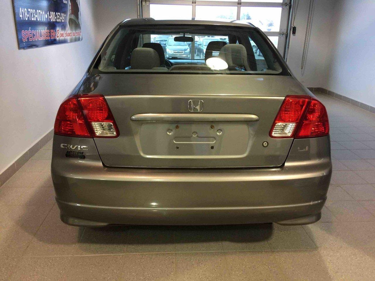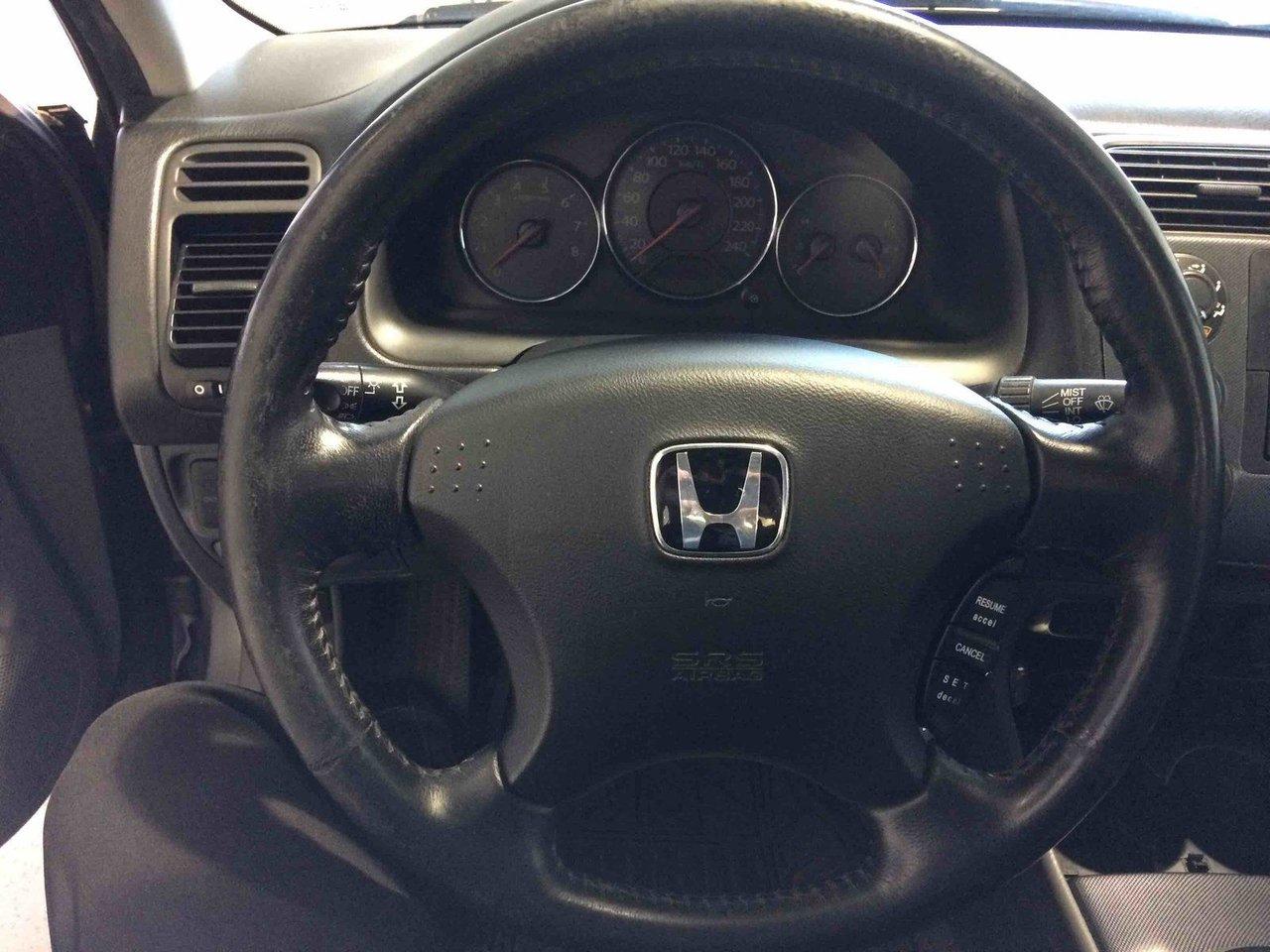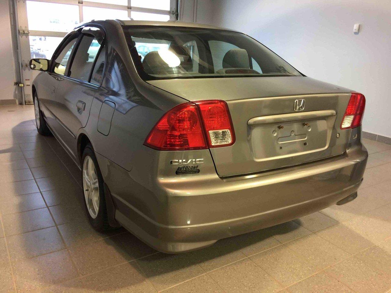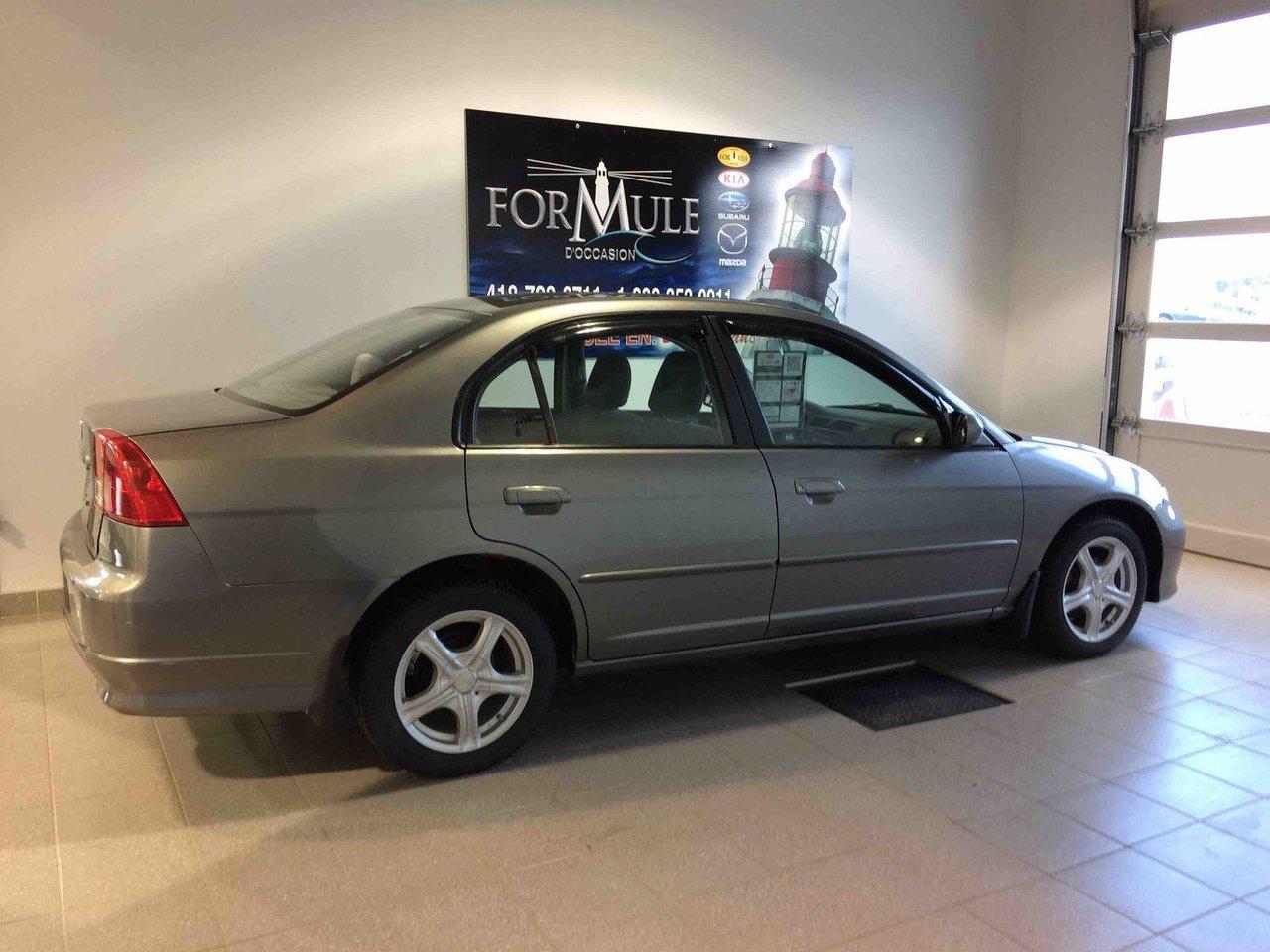 Honda Civic Sdn SI 2005\n\nRégulateur de vitesse, Toit ouvrant, Essuie-glaces intermittents, Anti-démarreur, Freins ABS, Coussin gonflable conducteur, Lecteur CD, Vitres électriques, Air climatisé, Lampes de lecture arrière, Volant ajustable, Moonroof, Volant gainé de cuir, Rétroviseur électrique, Direction assistée, Rétroviseurs chauffants, Sièges tissu, Freins à disque, Sièges baquets, Aluminium, Climatisation\n\nPOUR LE PLUS GRAND CHOIX À UN SEUL ENDROIT, LE MEGA CENTRE DE L'USAGÉ DANS L'EST DU QUÉBEC. COUVRANT LA GRANDE RÉGION DE RIMOUSKI, MATANE, MONT-JOLI, RIVIÈRE-DU-LOUP, STE-ANNE DES MONTS, MATAPÉDIA,GASPÉSIE... CONTACTEZ-NOUS SANS FRAIS AU 1-877-864-3666 LIVRAISON PARTOUT AU QUÉBEC.