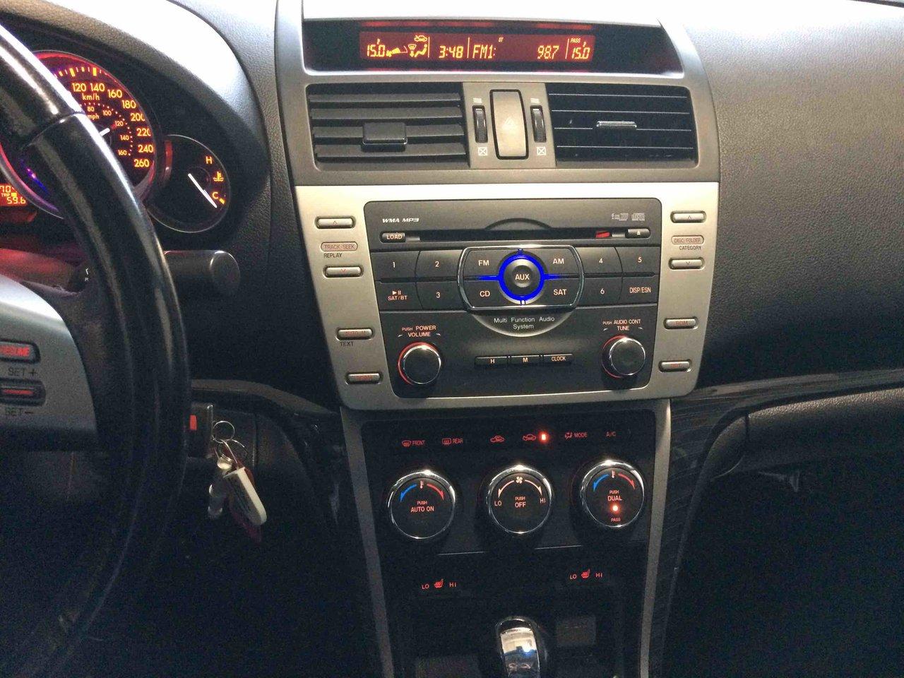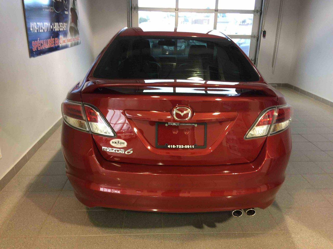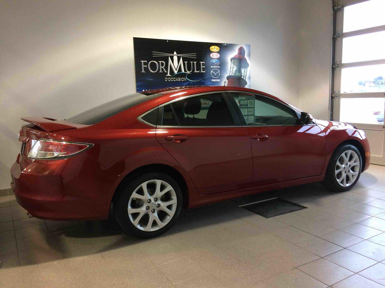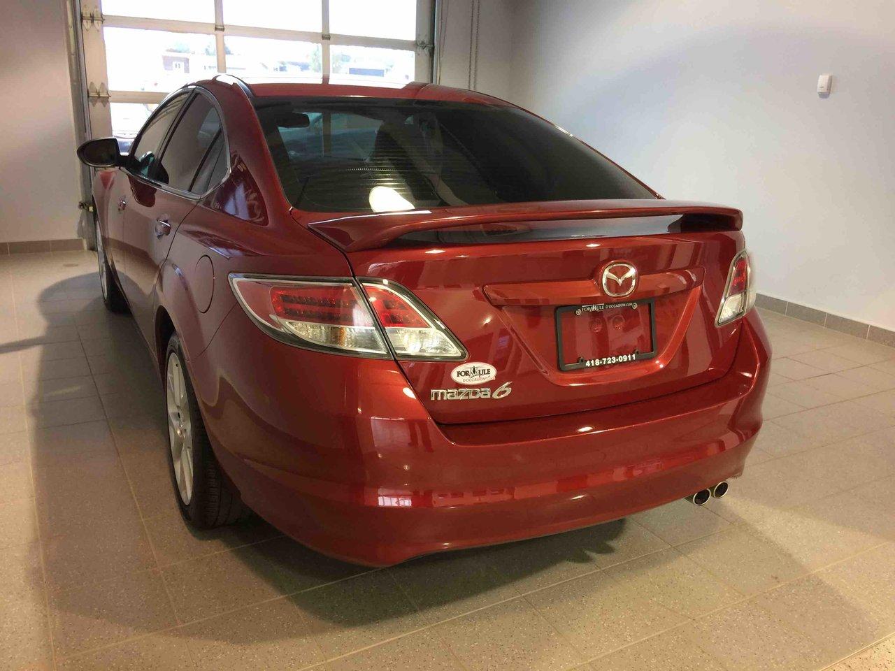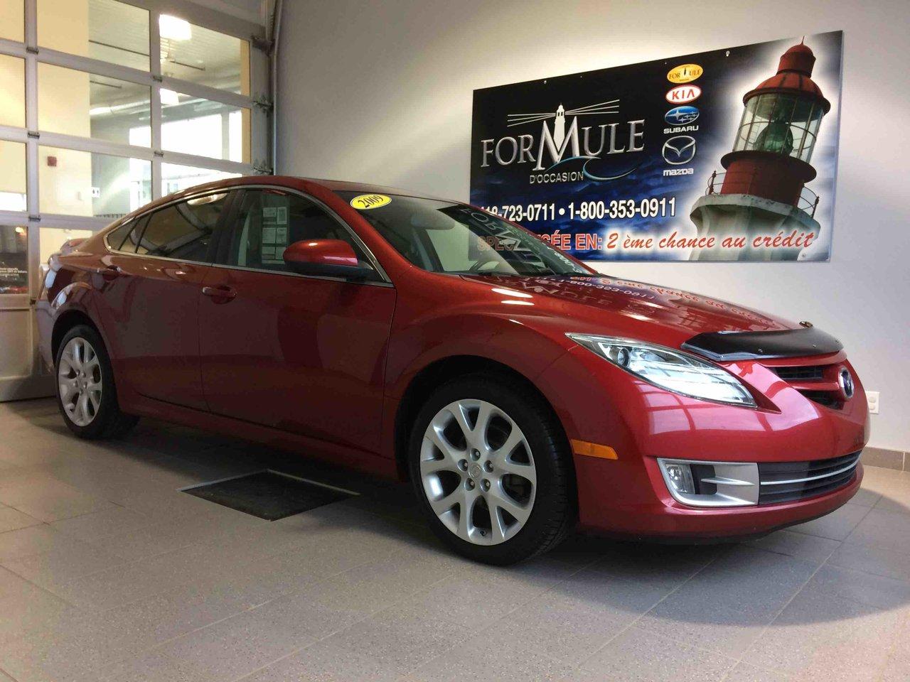 Mazda Mazda6 GT 2009\n\nRégulateur de vitesse, Toit ouvrant, Essuie-glaces intermittents, Anti-démarreur, Freins ABS, Contrôle de stabilité, Coussin gonflable conducteur, Coussins gonflables latéraux, Lecteur CD, Chargeur de CD, Lecteur MP3, Portes électriques, Sièges électriques, Vitres électriques, Air climatisé, Intérieur en cuir, Lampes de lecture arrière, Sièges chauffants, Volant ajustable, Moonroof, Tapis protecteurs, Volant gainé de cuir, Phares automatiques, Rétroviseur électrique, Direction assistée, Rétroviseurs chauffants, Siège à réglage électrique, Siège conducteur - soutien lombaire, Freins à disque, Sièges chauffants - Avant, Antipatinage, Phares antibrouillards, Verrous de sécurité pour enfants, Système de surveillance de la pression des pneus, Sièges baquets, Coussin gonflable - Commutateur de mise en/hors fo, Rétroviseur à atténuation automatique, Aluminium, Climatisation\n\nPOUR LE PLUS GRAND CHOIX À UN SEUL ENDROIT, LE MEGA CENTRE DE L'USAGÉ DANS L'EST DU QUÉBEC. COUVRANT LA GRANDE RÉGION DE RIMOUSKI, MATANE, MONT-JOLI, RIVIÈRE-DU-LOUP, STE-ANNE DES MONTS, MATAPÉDIA,GASPÉSIE... CONTACTEZ-NOUS SANS FRAIS AU 1-877-864-3666 LIVRAISON PARTOUT AU QUÉBEC.