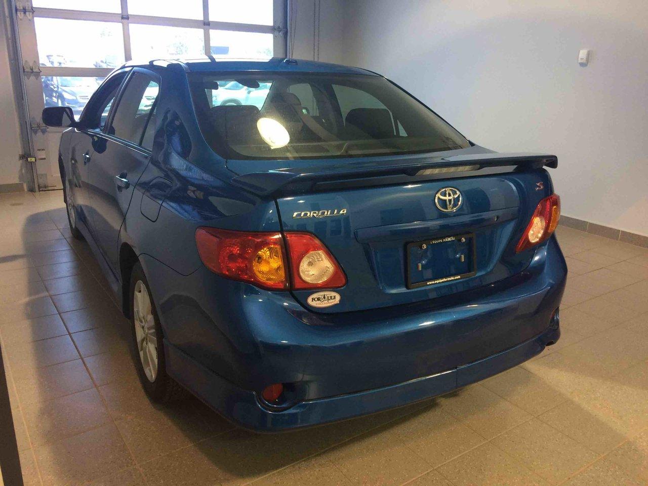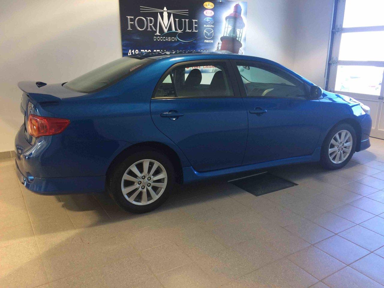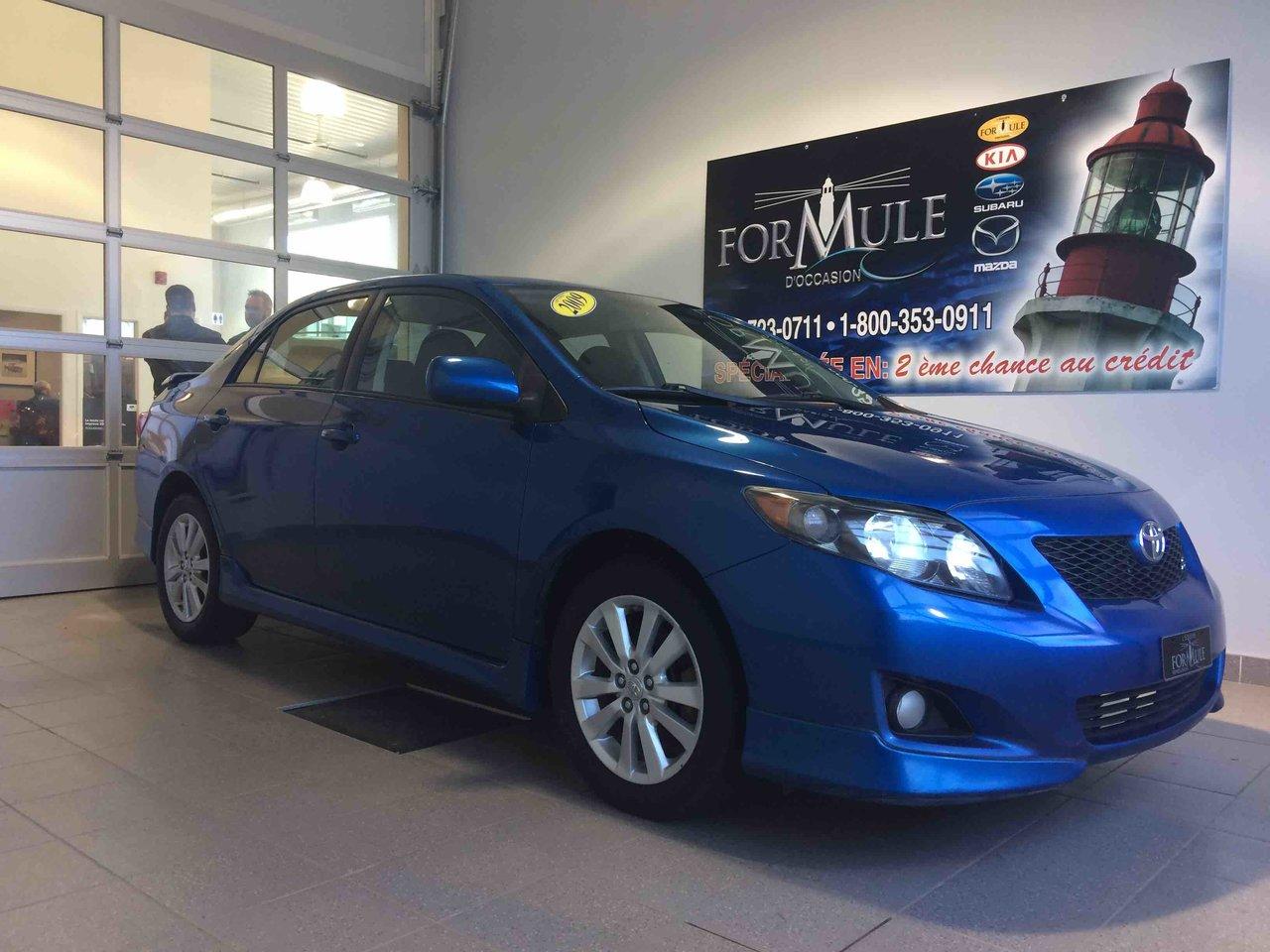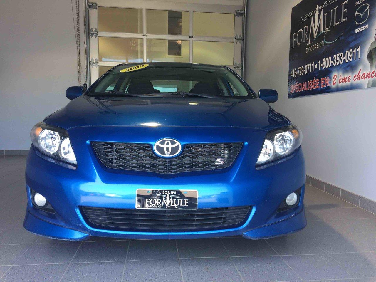 Toyota Corolla S 2009\n\nEssuie-glaces intermittents, Anti-démarreur, Freins ABS, Coussin gonflable conducteur, Coussins gonflables latéraux, Lecteur CD, Lecteur MP3, Volant ajustable, Tapis protecteurs, Rétroviseur électrique, Direction assistée, Rétroviseurs chauffants, Coussins gonflables arrière pour la tête, Sièges tissu, Freins à disque, Verrous de sécurité pour enfants, Sièges baquets\n\nPOUR LE PLUS GRAND CHOIX À UN SEUL ENDROIT, LE MEGA CENTRE DE L'USAGÉ DANS L'EST DU QUÉBEC. COUVRANT LA GRANDE RÉGION DE RIMOUSKI, MATANE, MONT-JOLI, RIVIÈRE-DU-LOUP, STE-ANNE DES MONTS, MATAPÉDIA,GASPÉSIE... CONTACTEZ-NOUS SANS FRAIS AU 1-877-864-3666 LIVRAISON PARTOUT AU QUÉBEC.