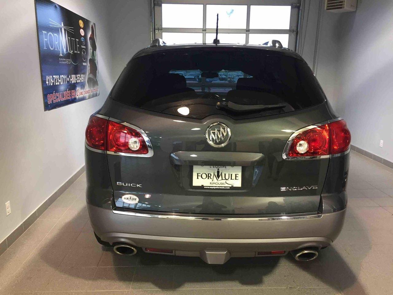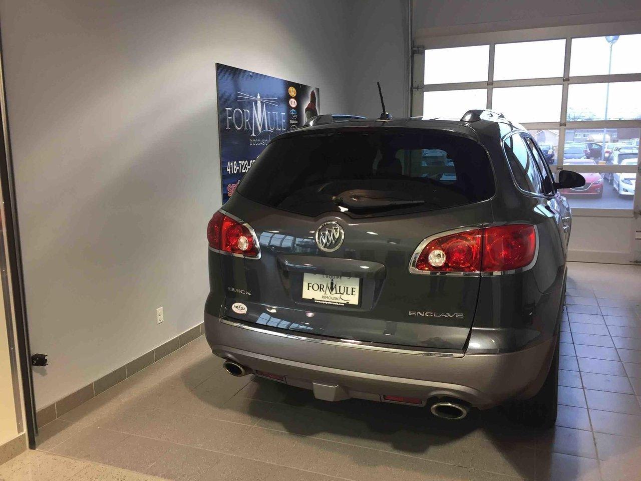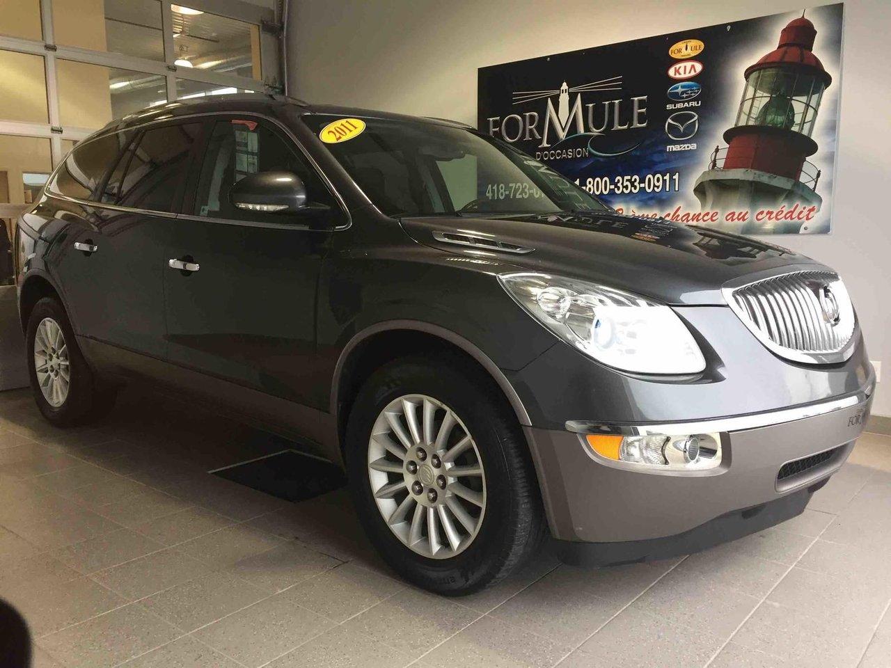 Buick Enclave CX 2011\n\nRégulateur de vitesse, Essuie-glaces intermittents, Anti-démarreur, Freins ABS, Contrôle de stabilité, Coussin gonflable conducteur, Coussins gonflables latéraux, Lecteur CD, Lecteur MP3, Portes électriques, Vitres électriques, Air climatisé, Lampes de lecture arrière, Volant ajustable, Tapis protecteurs, Volant gainé de cuir, Phares automatiques, Rétroviseur électrique, Direction assistée, Rétroviseurs chauffants, Coussins gonflables arrière pour la tête, Sièges tissu, Siège conducteur - soutien lombaire, Siège passager - soutien lombaire, Freins à disque, Antipatinage, Phares antibrouillards, Verrous de sécurité pour enfants, Système de surveillance de la pression des pneus, Sièges baquets, Technologie Bluetooth intégrée, Climatisation arrière, Rétroviseur à atténuation automatique, Aluminium, Climatisation\n\nPOUR LE PLUS GRAND CHOIX À UN SEUL ENDROIT, LE MEGA CENTRE DE L'USAGÉ DANS L'EST DU QUÉBEC. COUVRANT LA GRANDE RÉGION DE RIMOUSKI, MATANE, MONT-JOLI, RIVIÈRE-DU-LOUP, STE-ANNE DES MONTS, MATAPÉDIA,GASPÉSIE... CONTACTEZ-NOUS SANS FRAIS AU 1-877-864-3666 LIVRAISON PARTOUT AU QUÉBEC.