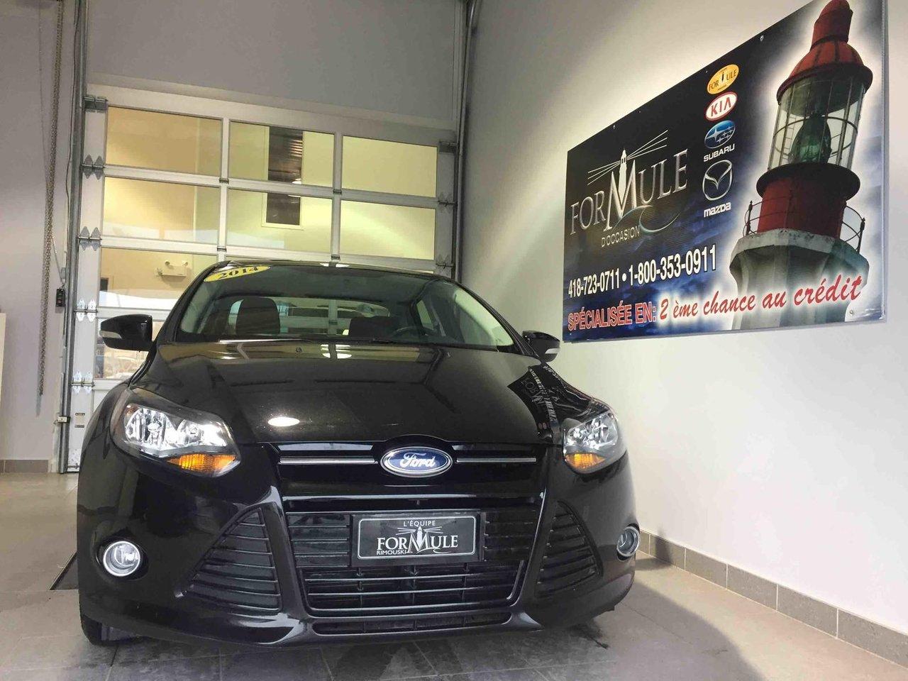 Ford Focus SE 2014\n\nRégulateur de vitesse, Essuie-glaces intermittents, Anti-démarreur, Freins ABS, Contrôle de stabilité, Coussin gonflable conducteur, Coussins gonflables latéraux, Lecteur CD, Lecteur MP3, Portes électriques, Vitres électriques, Air climatisé, Volant ajustable, Tapis protecteurs, Phares automatiques, Rétroviseur électrique, Direction assistée, Coussins gonflables arrière pour la tête, Jantes en alliage, Antipatinage, Verrous de sécurité pour enfants, Système de surveillance de la pression des pneus, Sièges baquets, Technologie Bluetooth intégrée, Climatisation\n\nPOUR LE PLUS GRAND CHOIX À UN SEUL ENDROIT, LE MEGA CENTRE DE L'USAGÉ DANS L'EST DU QUÉBEC. COUVRANT LA GRANDE RÉGION DE RIMOUSKI, MATANE, MONT-JOLI, RIVIÈRE-DU-LOUP, STE-ANNE DES MONTS, MATAPÉDIA,GASPÉSIE... CONTACTEZ-NOUS SANS FRAIS AU 1-877-864-3666 LIVRAISON PARTOUT AU QUÉBEC.