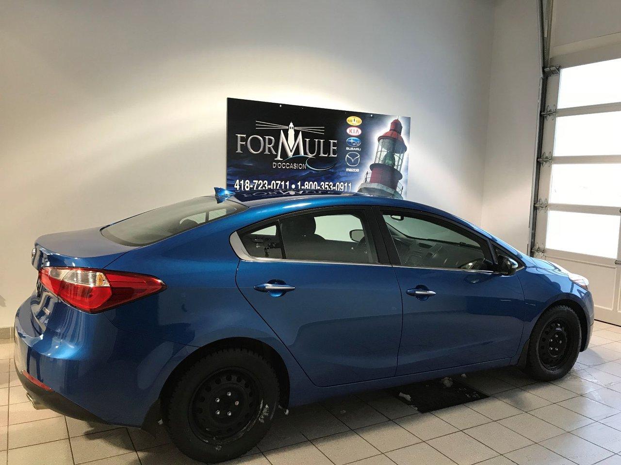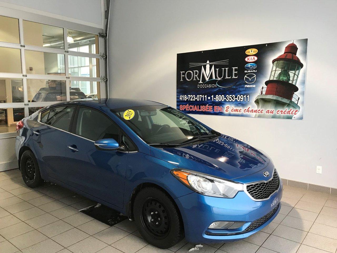 Kia Forte EX 2015\n\nRégulateur de vitesse, Essuie-glaces intermittents, Anti-démarreur, Freins ABS, Contrôle de stabilité, Coussin gonflable conducteur, Coussins gonflables latéraux, Lecteur CD, Chargeur de CD, Lecteur MP3, Portes électriques, Vitres électriques, Air climatisé, Sièges chauffants, Volant ajustable, Tapis protecteurs, Caméra de recul, Radio AM/FM, Rétroviseurs, Volant gainé de cuir, Phares automatiques, Rétroviseur électrique, Direction assistée, Rétroviseurs chauffants, Coussins gonflables arrière pour la tête, Sièges tissu, Freins à disque, Sièges chauffants - Avant, Antipatinage, Phares antibrouillards, Verrous de sécurité pour enfants, Sièges baquets, Technologie Bluetooth intégrée, Port USB, Entreposage Média sur disque dur, Rétroviseur à atténuation automatique, Aluminium, Climatisation\n\nPOUR LE PLUS GRAND CHOIX À UN SEUL ENDROIT, LE MEGA CENTRE DE L'USAGÉ DANS L'EST DU QUÉBEC. COUVRANT LA GRANDE RÉGION DE RIMOUSKI, MATANE, MONT-JOLI, RIVIÈRE-DU-LOUP, STE-ANNE DES MONTS, MATAPÉDIA,GASPÉSIE... CONTACTEZ-NOUS SANS FRAIS AU 1-877-864-3666 LIVRAISON PARTOUT AU QUÉBEC.