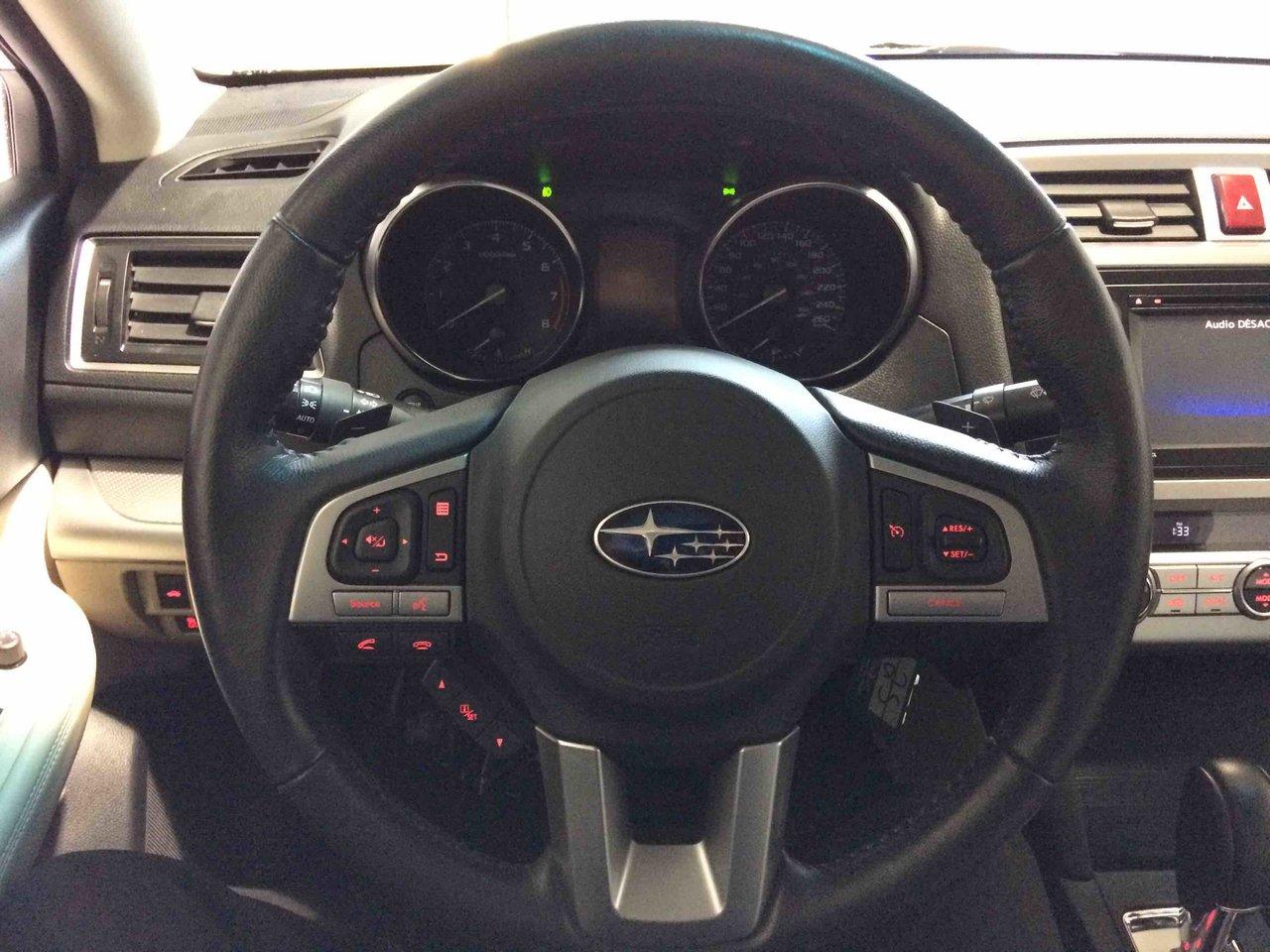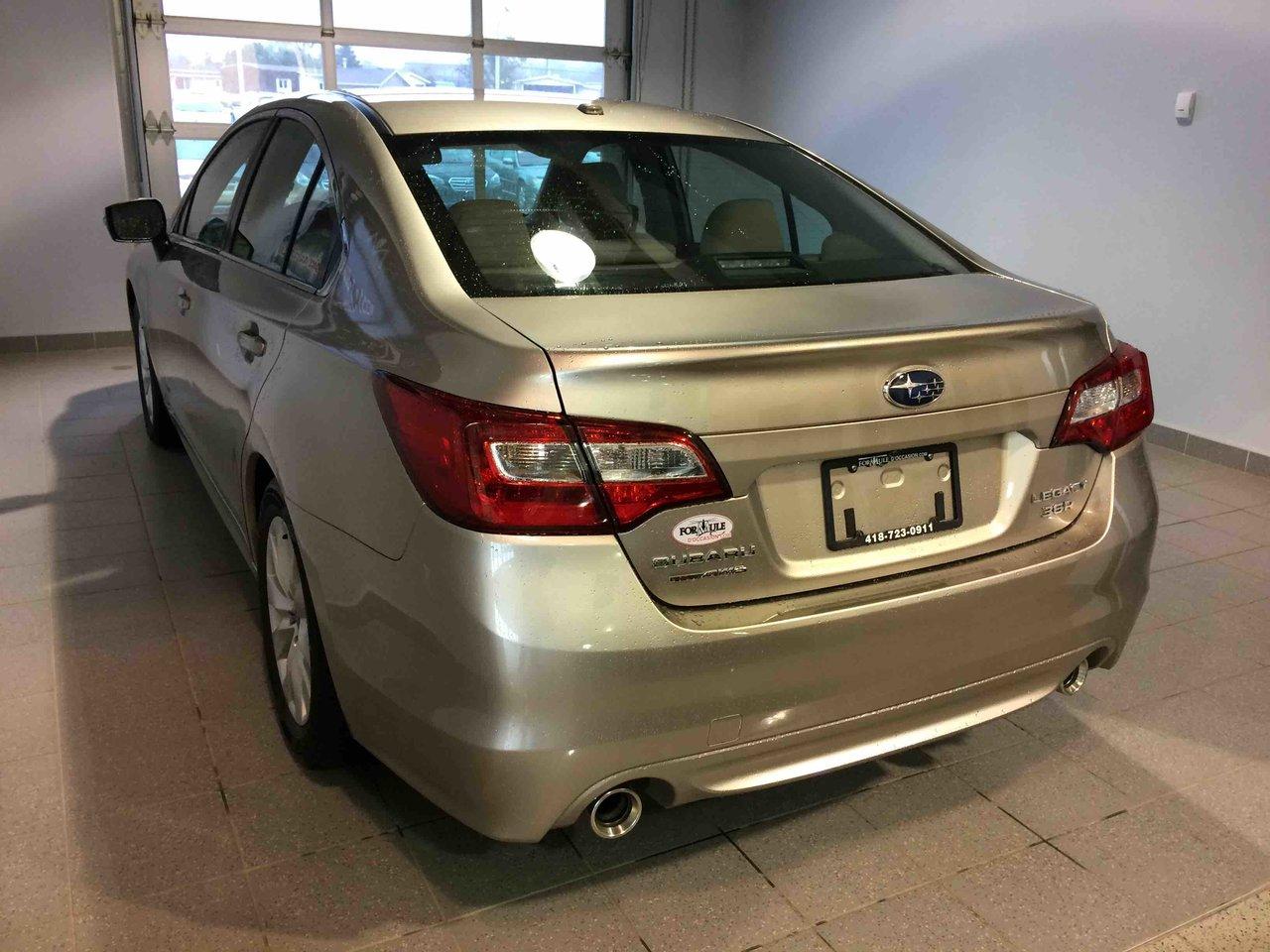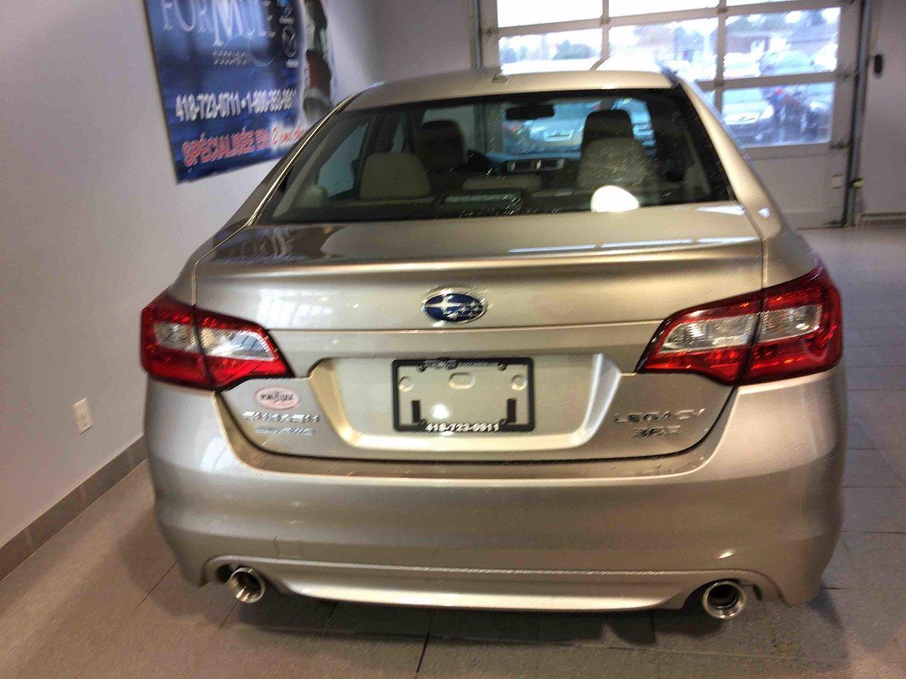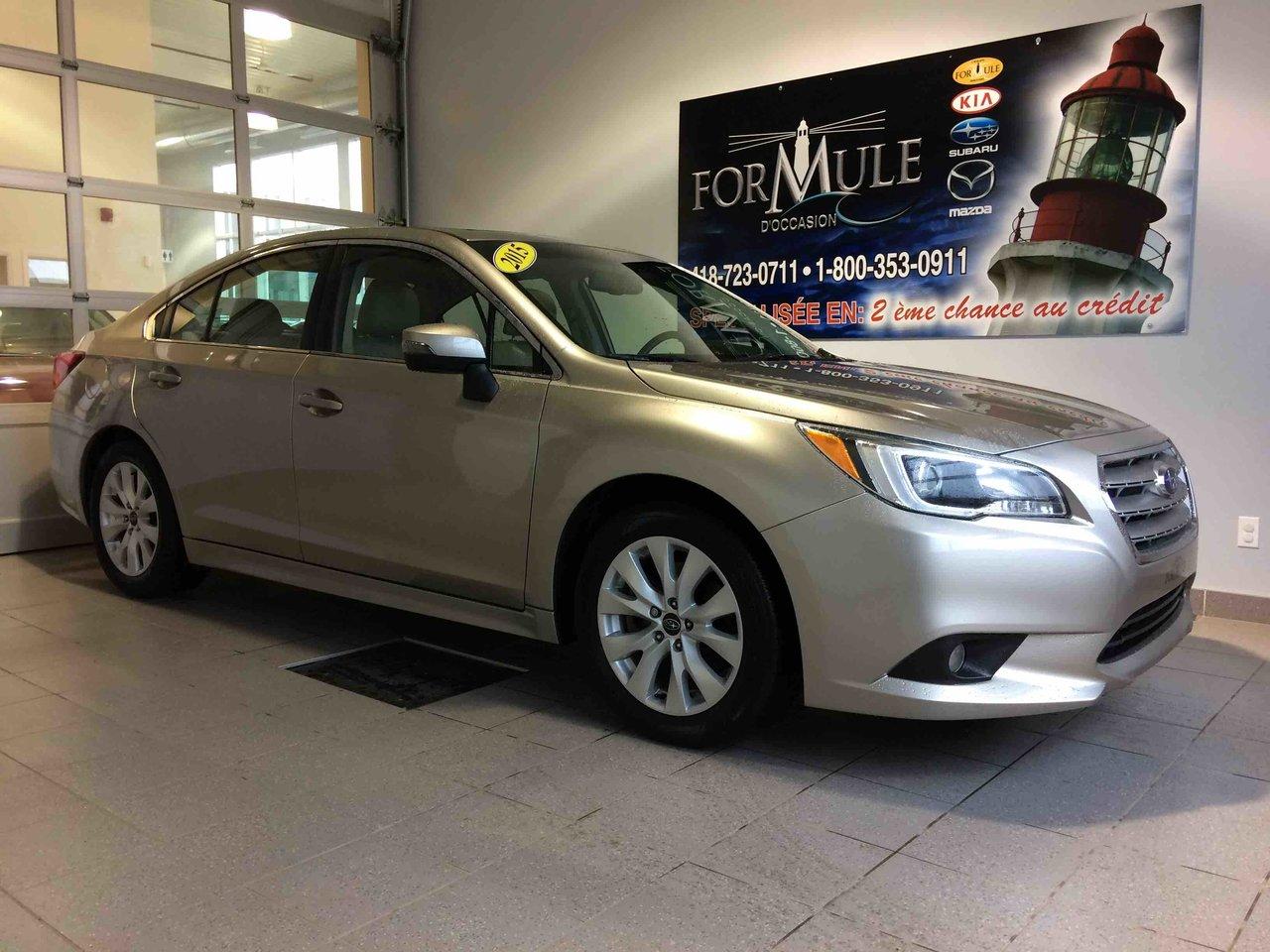Subaru Legacy 3.6r W/touring Pkg 2015\n\nRégulateur de vitesse, Toit ouvrant, Essuie-glaces intermittents, Anti-démarreur, Freins ABS, Contrôle de stabilité, Coussin gonflable conducteur, Coussins gonflables latéraux, Lecteur CD, Lecteur MP3, Portes électriques, Vitres électriques, Air climatisé, Volant ajustable, Moonroof, Tapis protecteurs, Caméra de recul, Volant gainé de cuir, Phares automatiques, Rétroviseur électrique, Direction assistée, Rétroviseurs chauffants, Siège à réglage électrique, Coussins gonflables arrière pour la tête, Sièges tissu, Siège conducteur - soutien lombaire, Freins à disque, Sièges chauffants - Avant, Antipatinage, Phares antibrouillards, Verrous de sécurité pour enfants, Sièges baquets, Technologie Bluetooth intégrée, Rétroviseur à atténuation automatique, Surveillance de l'angle mort, Aluminium, Climatisation\n\nPOUR LE PLUS GRAND CHOIX À UN SEUL ENDROIT, LE MEGA CENTRE DE L'USAGÉ DANS L'EST DU QUÉBEC. COUVRANT LA GRANDE RÉGION DE RIMOUSKI, MATANE, MONT-JOLI, RIVIÈRE-DU-LOUP, STE-ANNE DES MONTS, MATAPÉDIA,GASPÉSIE... CONTACTEZ-NOUS SANS FRAIS AU 1-877-864-3666 LIVRAISON PARTOUT AU QUÉBEC.