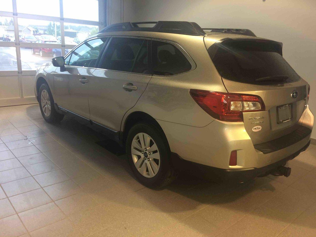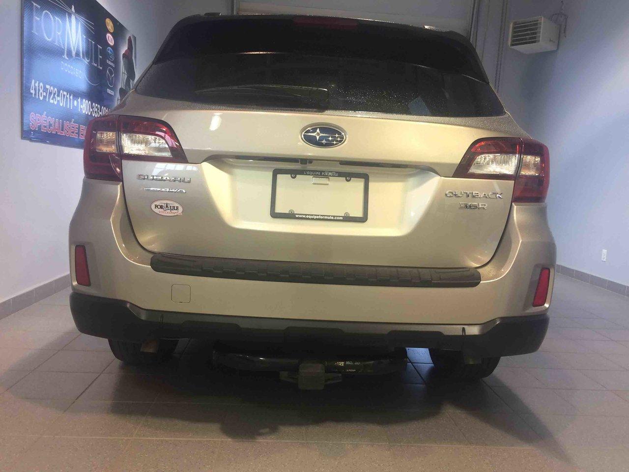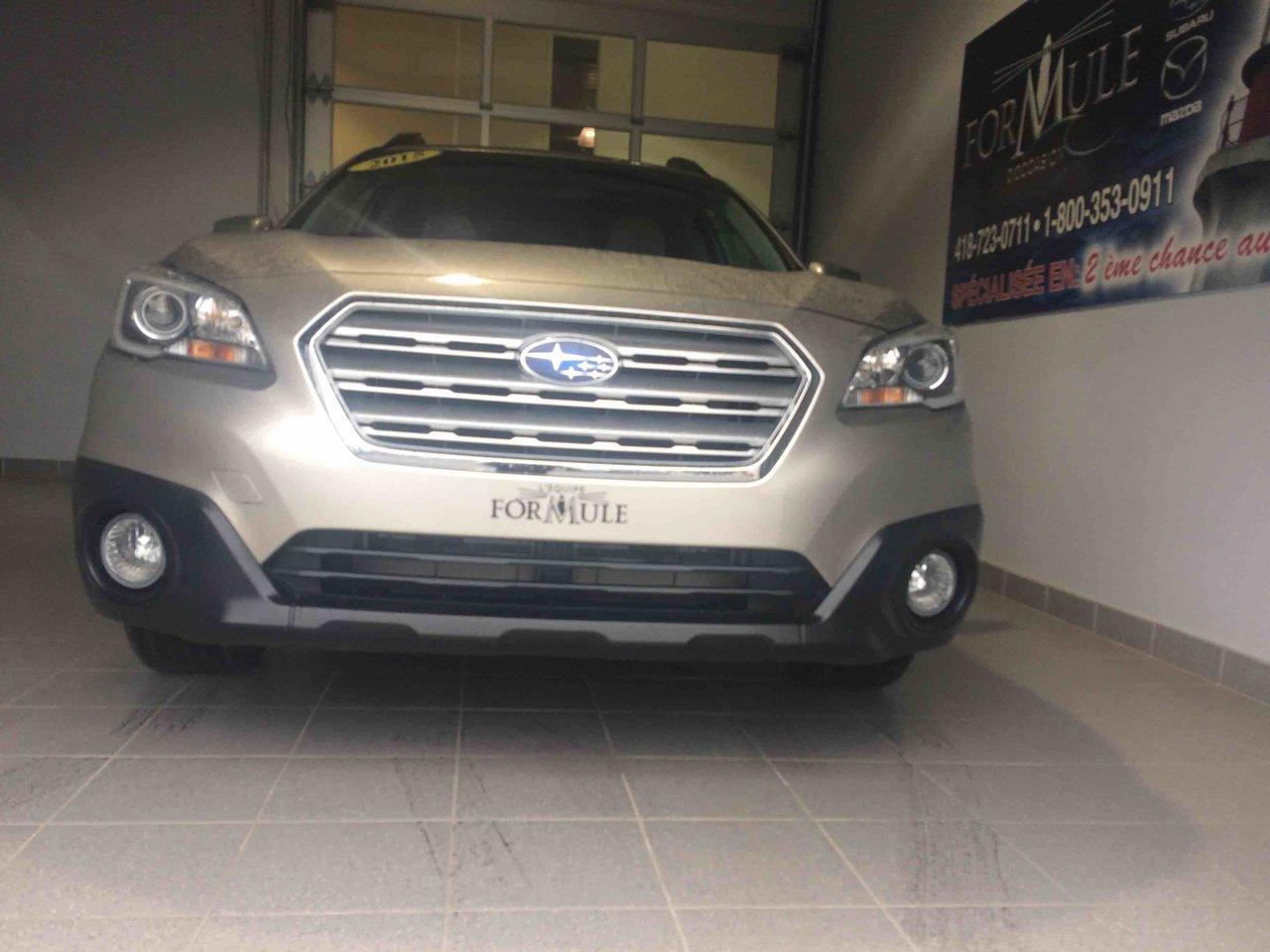 Subaru Outback 3.6r W/touring Pkg 2015\n\nRégulateur de vitesse, Toit ouvrant, Essuie-glaces intermittents, Freins ABS, Contrôle de stabilité, Coussin gonflable conducteur, Coussins gonflables latéraux, Lecteur CD, Lecteur MP3, Portes électriques, Sièges électriques, Vitres électriques, Air climatisé, Sièges chauffants, Volant ajustable, Moonroof, Tapis protecteurs, Radio satellite, Caméra de recul, Phares automatiques, Rétroviseur électrique, Direction assistée, Rétroviseurs chauffants, Siège à réglage électrique, Coussins gonflables arrière pour la tête, Sièges tissu, Siège conducteur - soutien lombaire, Freins à disque, Sièges chauffants - Avant, Jantes en alliage, Antipatinage, Phares antibrouillards, Verrous de sécurité pour enfants, Sièges baquets, Technologie Bluetooth intégrée, Cache bagages, Rétroviseur à atténuation automatique, Surveillance de l'angle mort, Aluminium, Climatisation\n\nPOUR LE PLUS GRAND CHOIX À UN SEUL ENDROIT, LE MEGA CENTRE DE L'USAGÉ DANS L'EST DU QUÉBEC. COUVRANT LA GRANDE RÉGION DE RIMOUSKI, MATANE, MONT-JOLI, RIVIÈRE-DU-LOUP, STE-ANNE DES MONTS, MATAPÉDIA,GASPÉSIE... CONTACTEZ-NOUS SANS FRAIS AU 1-877-864-3666 LIVRAISON PARTOUT AU QUÉBEC.
