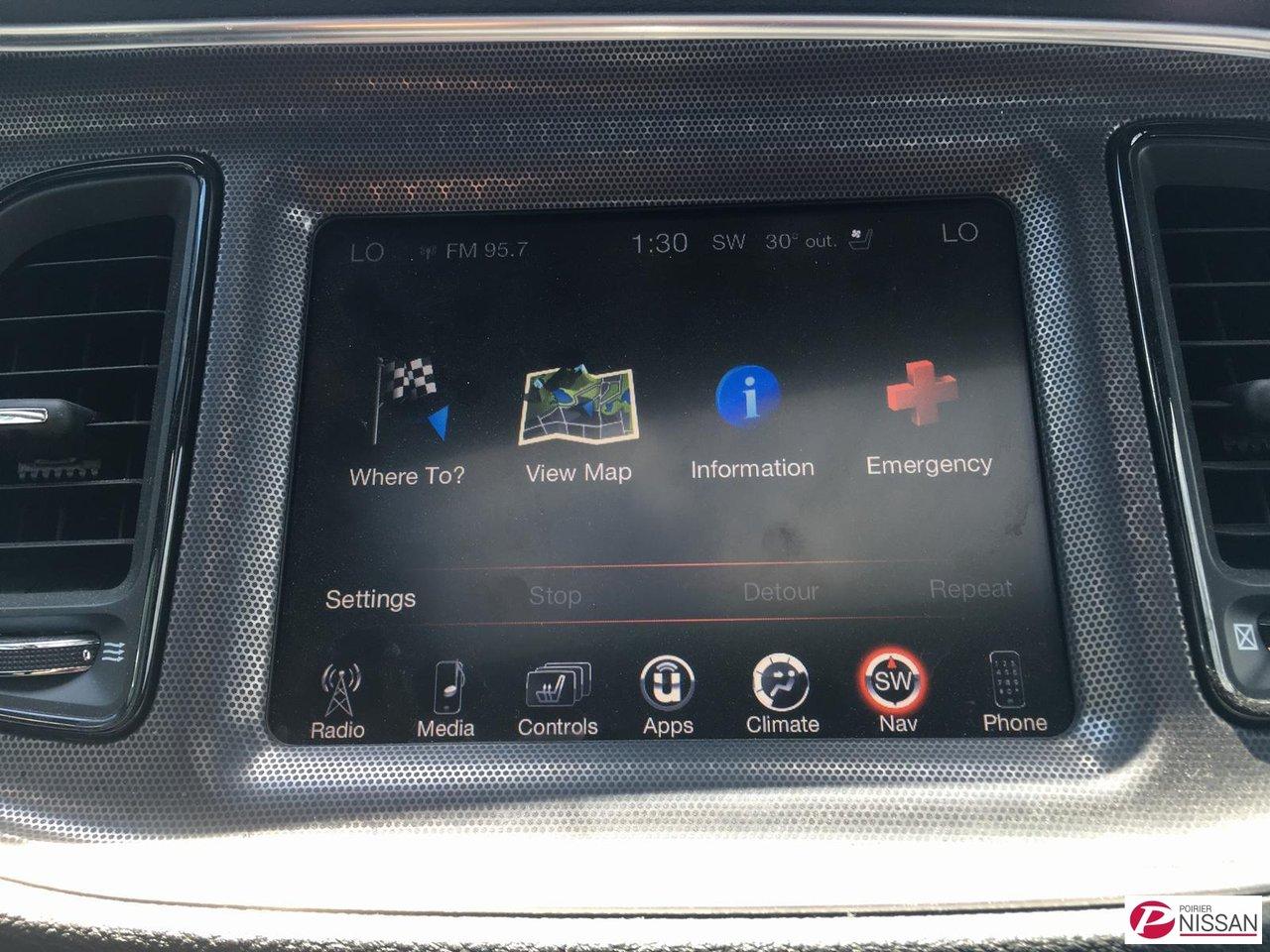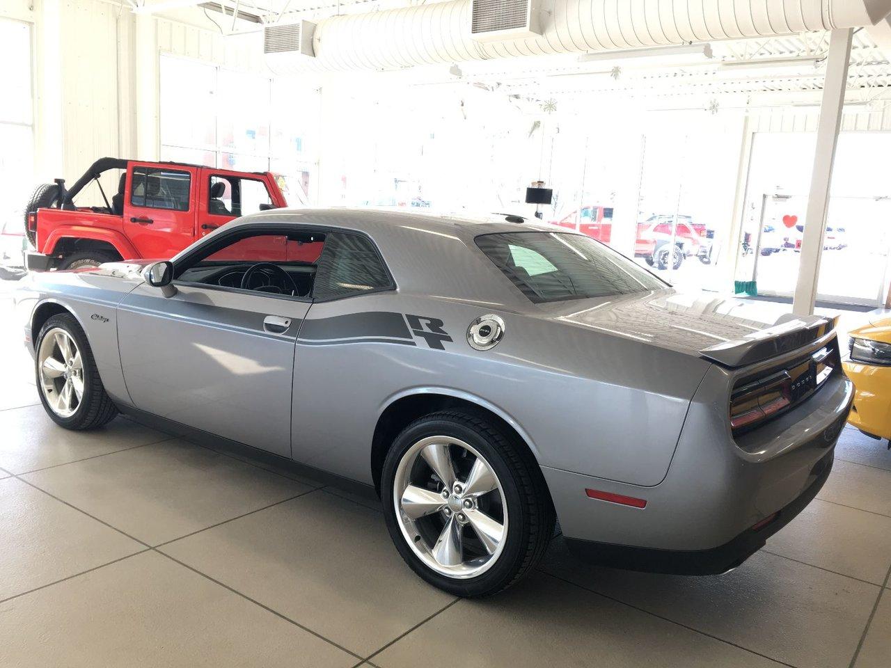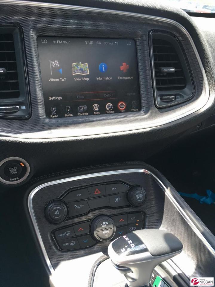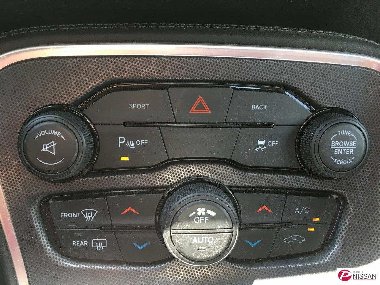 Dodge Challenger R/T 2016Régulateur de vitesse, Essuie-glaces intermittents, Anti-démarreur, Freins ABS, Contrôle de stabilité, Coussin gonflable conducteur, Démarreur à distance, Lecteur MP3, Miroirs chauffants, Portes électriques, Sièges électriques, Vitres électriques, Air climatisé, Intérieur en cuir, Climatisation deux zones, Commandes audio au volant, Sièges arrières rabattables, Sièges chauffants, Volant ajustable, Aileron, Tapis protecteurs, Radio satellite, Ordinateur de bord, Caméra de recul, Radio AM/FM, Rétroviseurs, Direction assistée, Télédéverrouillage, Rétroviseurs chauffants, Banquette arrière divisé, Siège à réglage électrique, Système d\'alarme, Démarrage sans clé, Rétroviseurs électriques, Jantes en alliage, Antipatinage, Phares antibrouillards, Coussins gonflables, Ouverture du volet à essence de l\'intérieur, Système de surveillance de la pression des pneus, Dégivreur de lunette arrière, Sièges baquets, Prise Auxiliaire, Technologie Bluetooth intégrée, Port USB, Climatiseur automatique, Aide au stationnement (capteurs)