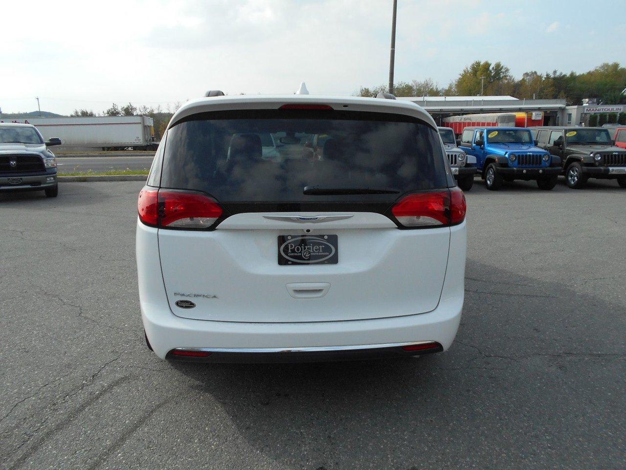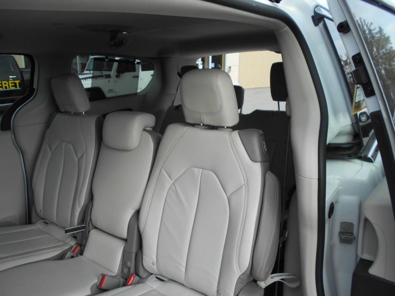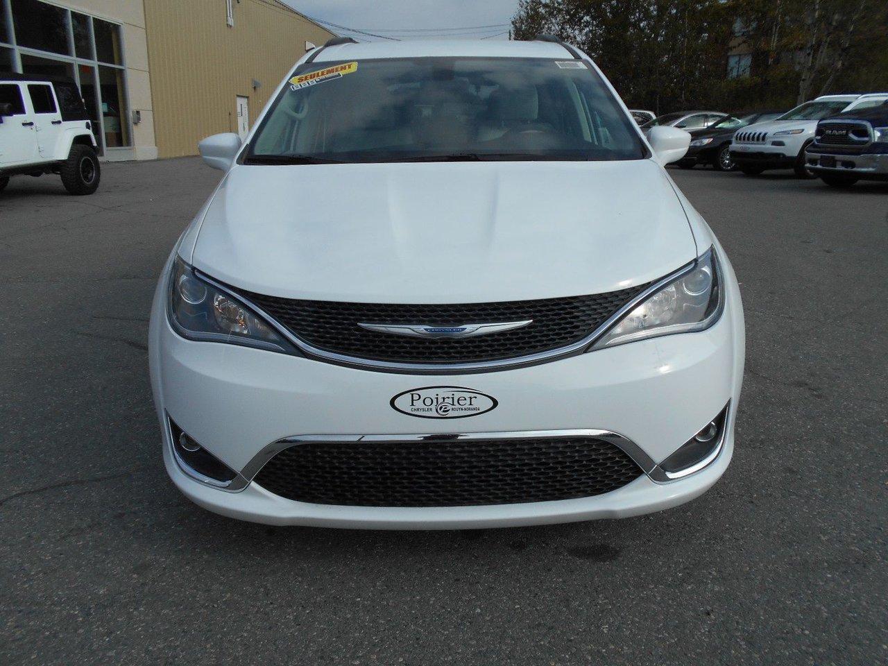 Chrysler Pacifica Touring 2017Régulateur de vitesse, Essuie-glaces intermittents, Essuie-glace arrière, Anti-démarreur, Freins ABS, Contrôle de stabilité, Coussin gonflable conducteur, Démarreur à distance, Chauffe-moteur, 6 Haut-parleurs, Miroirs chauffants, Portes électriques, Sièges électriques, Tachymètre, Téléphone cellulaire, Vitres électriques, Air climatisé, Intérieur en cuir, Banquette de troisième rangée, Chauffage arrière, Climatisation deux zones, Commandes audio au volant, Sièges arrières rabattables, Sièges chauffants, Volant ajustable, Deux portes coulissantes, Tapis protecteurs, Vitres teintées, Radio satellite, Ordinateur de bord, Tout équipé, Caméra de recul, Horloge, Radio AM/FM, Rétroviseurs, Direction assistée, Télédéverrouillage, Rétroviseurs chauffants, Banquette arrière divisé, Siège à réglage électrique, Système d\'alarme, Démarrage sans clé, Rétroviseurs électriques, Jantes en alliage, Antipatinage, Phares antibrouillards, Coussins gonflables, Support à bagages, Verrous de sécurité pour enfants, Système de surveillance de la pression des pneus, Dégivreur de lunette arrière, Miroirs ajustables de l\'intérieur, Prise Auxiliaire, Points d\'ancrage pour sièges d\'enfant, Technologie Bluetooth intégrée, Port USB, Climatiseur automatique, Pare-chocs de couleur assortie