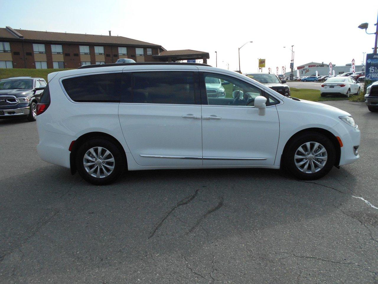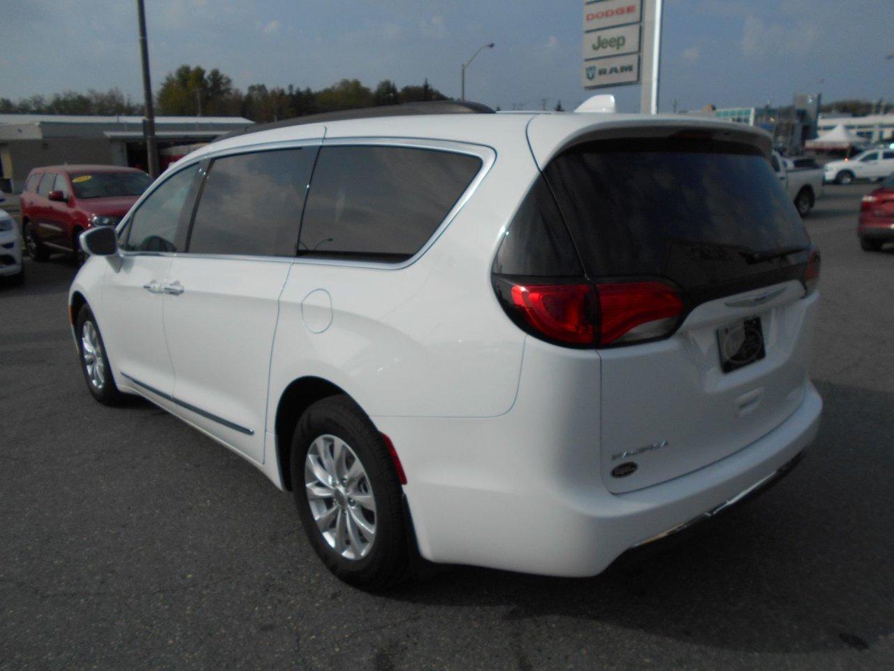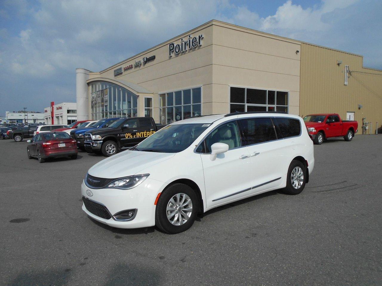 Chrysler Pacifica Touring 2017Régulateur de vitesse, Essuie-glaces intermittents, Essuie-glace arrière, Anti-démarreur, Freins ABS, Contrôle de stabilité, Coussin gonflable conducteur, Démarreur à distance, Chauffe-moteur, 6 Haut-parleurs, Miroirs chauffants, Portes électriques, Sièges électriques, Tachymètre, Téléphone cellulaire, Vitres électriques, Air climatisé, Intérieur en cuir, Banquette de troisième rangée, Chauffage arrière, Climatisation deux zones, Commandes audio au volant, Sièges arrières rabattables, Sièges chauffants, Volant ajustable, Deux portes coulissantes, Tapis protecteurs, Vitres teintées, Radio satellite, Ordinateur de bord, Tout équipé, Caméra de recul, Horloge, Radio AM/FM, Rétroviseurs, Direction assistée, Télédéverrouillage, Rétroviseurs chauffants, Banquette arrière divisé, Siège à réglage électrique, Système d\'alarme, Démarrage sans clé, Rétroviseurs électriques, Jantes en alliage, Antipatinage, Phares antibrouillards, Coussins gonflables, Support à bagages, Verrous de sécurité pour enfants, Système de surveillance de la pression des pneus, Dégivreur de lunette arrière, Miroirs ajustables de l\'intérieur, Prise Auxiliaire, Points d\'ancrage pour sièges d\'enfant, Technologie Bluetooth intégrée, Port USB, Climatiseur automatique, Pare-chocs de couleur assortie