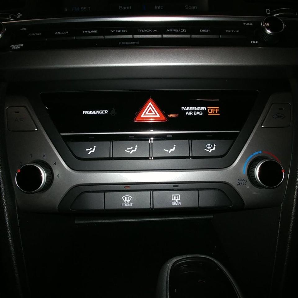 Hyundai Elantra GL 2017Essuie-glaces intermittents, Anti-démarreur, Freins ABS, Contrôle de stabilité, Coussins gonflables latéraux, Lecteur MP3, Volant ajustable, Tapis protecteurs, Rétroviseur électrique, Direction assistée, Rétroviseurs chauffants, Coussins gonflables arrière pour la tête, Démarrage sans clé, Sièges chauffants - Avant, Antipatinage, Verrous de sécurité pour enfants, Système de surveillance de la pression des pneus, Sièges baquets