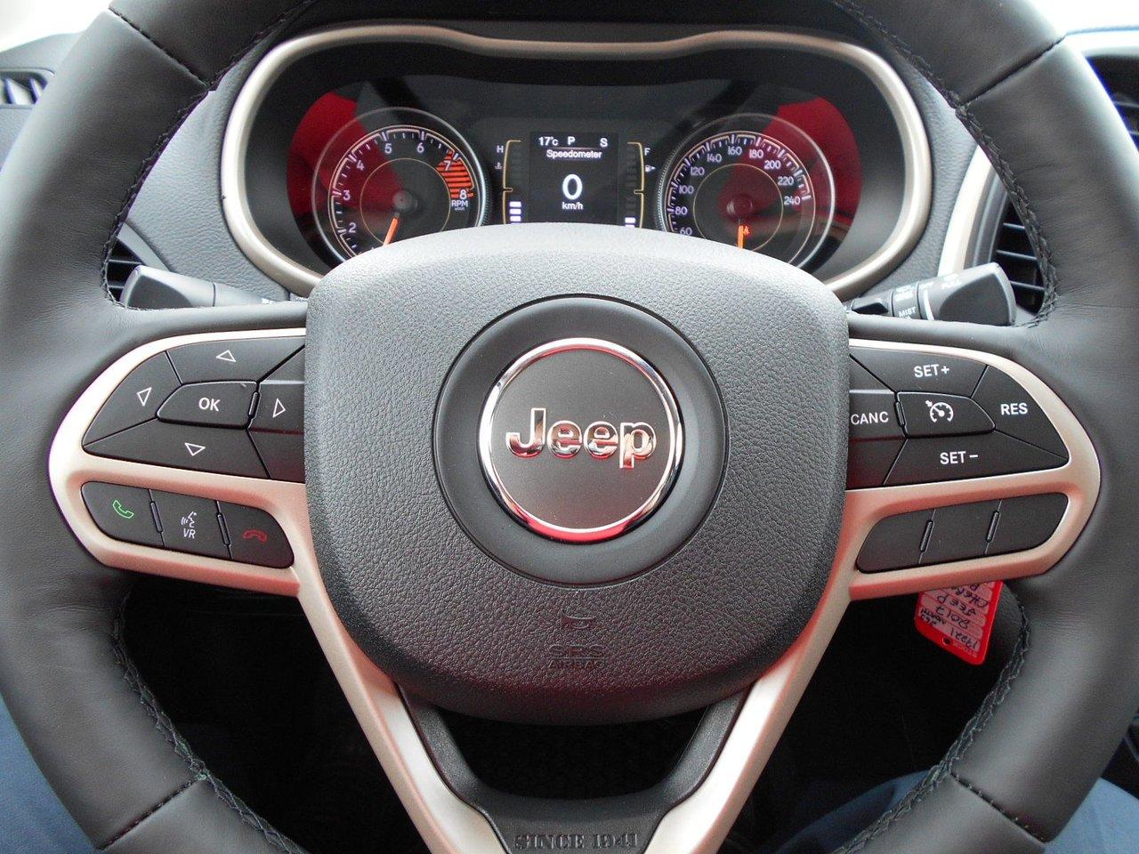 Jeep Cherokee North D?MONSTRATEUR NEUF 2017Régulateur de vitesse, Essuie-glaces intermittents, Anti-démarreur, Freins ABS, Contrôle de stabilité, Coussin gonflable conducteur, Coussins gonflables latéraux, Démarreur à distance, Lecteur CD, Chargeur de CD, Lecteur MP3, 6 Haut-parleurs, Portes électriques, Tachymètre, Vitres électriques, Air climatisé, Commandes audio au volant, Sièges arrières rabattables, Sièges chauffants, Volant ajustable, Tapis protecteurs, Vitres teintées, Attelage remorque, Ordinateur de bord, Tout équipé, Caméra de recul, Radio AM/FM, Volant gainé de cuir, Phares automatiques, Rétroviseur électrique, Direction assistée, Télédéverrouillage, Rétroviseurs chauffants, Banquette arrière divisé, Système d\'alarme, Coussins gonflables arrière pour la tête, Sièges tissu, Freins à disque, Rétroviseurs électriques, Jantes en alliage, Antipatinage, Phares antibrouillards, Verrous de sécurité pour enfants, Système de surveillance de la pression des pneus, Sièges baquets, Prise Auxiliaire, Technologie Bluetooth intégrée, Port USB, Aluminium, Climatisation
