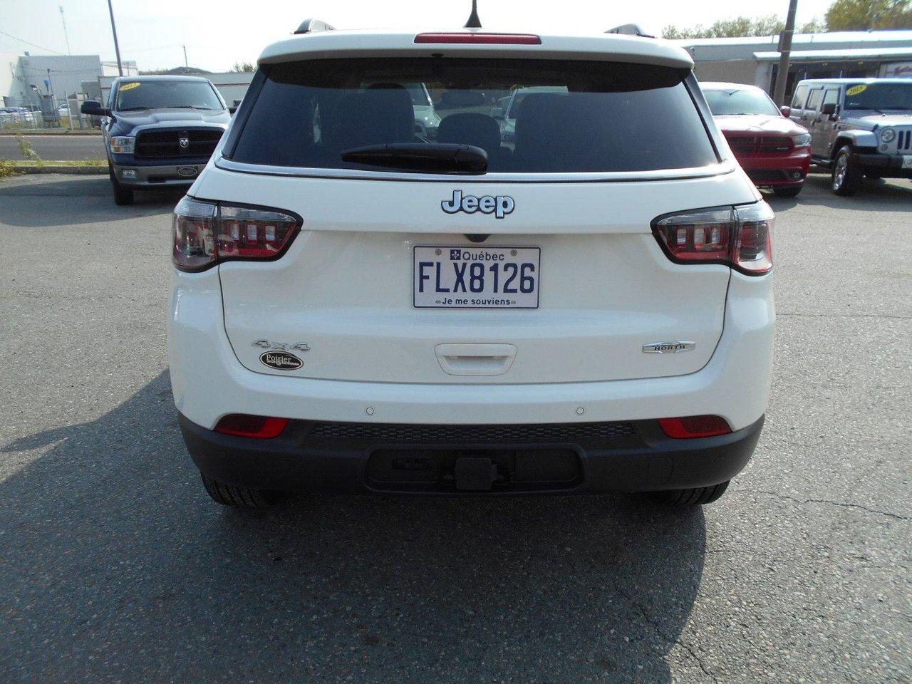 Jeep Compass North LOADER AU BOUCHON 2017Régulateur de vitesse, Toit ouvrant, Essuie-glaces intermittents, Essuie-glace arrière, Anti-démarreur, Freins ABS, Contrôle de stabilité, Coussin gonflable conducteur, Coussins gonflables latéraux, Démarreur à distance, Lecteur MP3, 6 Haut-parleurs, Portes électriques, Tachymètre, Vitres électriques, Air climatisé, Climatisation deux zones, Commandes audio au volant, Sièges arrières rabattables, Sièges chauffants, Volant ajustable, Tapis protecteurs, Vitres teintées, Attelage remorque, Phares haute intensité, Ordinateur de bord, Tout équipé, Caméra de recul, Radio AM/FM, Rétroviseurs, Volant gainé de cuir, Phares automatiques, Rétroviseur électrique, Sièges arrières chauffants, Direction assistée, Télédéverrouillage, Rétroviseurs chauffants, Banquette arrière divisé, Siège à réglage électrique, Système d\'alarme, Coussins gonflables arrière pour la tête, Sièges tissu, Essuie-glace détecteur de pluie, Démarrage sans clé, Freins à disque, Rétroviseurs électriques, Jantes en alliage, Antipatinage, Phares antibrouillards, Verrous de sécurité pour enfants, Système de surveillance de la pression des pneus, Sièges baquets, Prise Auxiliaire, Technologie Bluetooth intégrée, Port USB, Climatiseur automatique, Aide au stationnement (capteurs), Aluminium, Climatisation