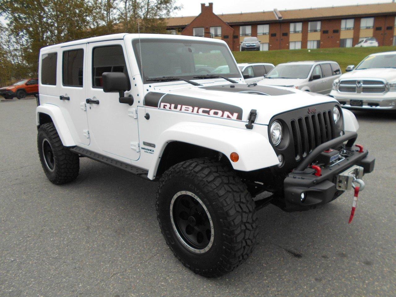 Jeep Wrangler Rubicon Recon avec $10 000.00 en accessoire ajout? LIFT? ET ACCESSOIRES POUR $10000.00 2017Régulateur de vitesse, Toit ouvrant, Essuie-glaces intermittents, Anti-démarreur, Freins ABS, Contrôle de stabilité, Coussin gonflable conducteur, Démarreur à distance, Lecteur CD, Chargeur de CD, Lecteur MP3, 6 Haut-parleurs, Portes électriques, Tachymètre, Vitres électriques, Air climatisé, Intérieur en cuir, Climatisation deux zones, Commandes audio au volant, Sièges arrières rabattables, Sièges chauffants, Volant ajustable, Marchepieds, Tapis protecteurs, Vitres teintées, Attelage remorque, Phares haute intensité, Ordinateur de bord, Tout équipé, Radio AM/FM, Volant gainé de cuir, Phares automatiques, Rétroviseur électrique, Direction assistée, Télédéverrouillage, Rétroviseurs chauffants, Banquette arrière divisé, Système d\'alarme, Système de protection au capotage, Freins à disque, Sièges chauffants - Avant, Rétroviseurs électriques, Jantes en alliage, Antipatinage, Phares antibrouillards, Verrous de sécurité pour enfants, Système de surveillance de la pression des pneus, Sièges baquets, Prise Auxiliaire, Technologie Bluetooth intégrée, Port USB, Climatiseur automatique, Roue de secours - Temporaire, Rétroviseur à atténuation automatique, Climatisation