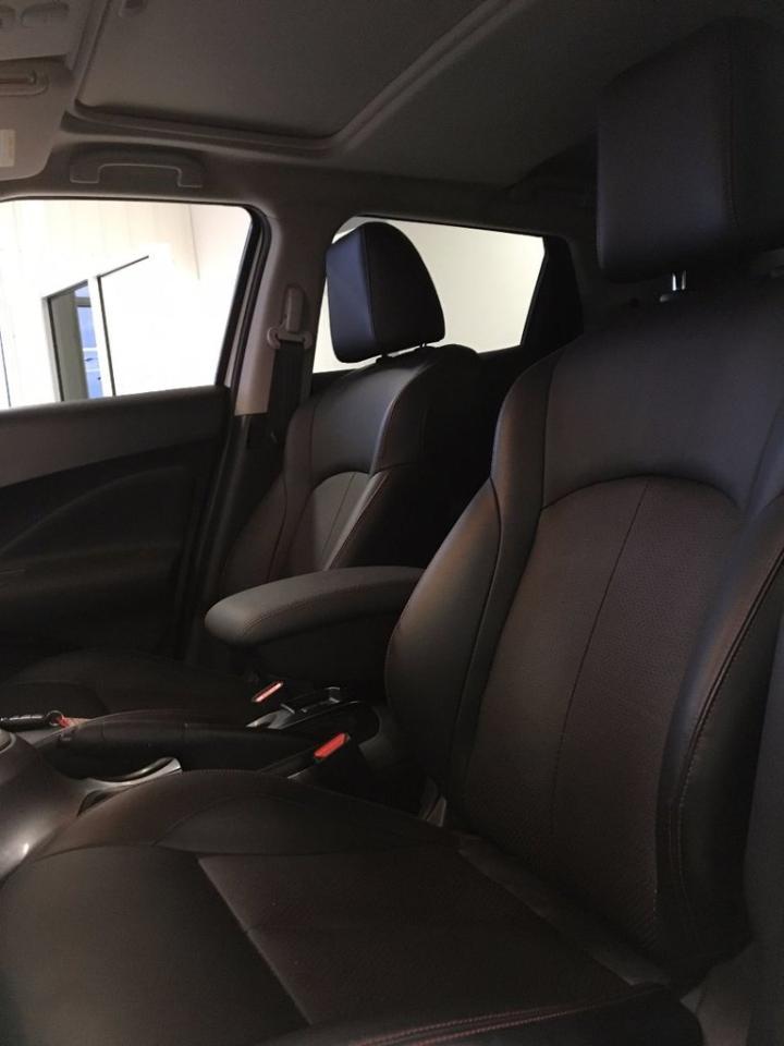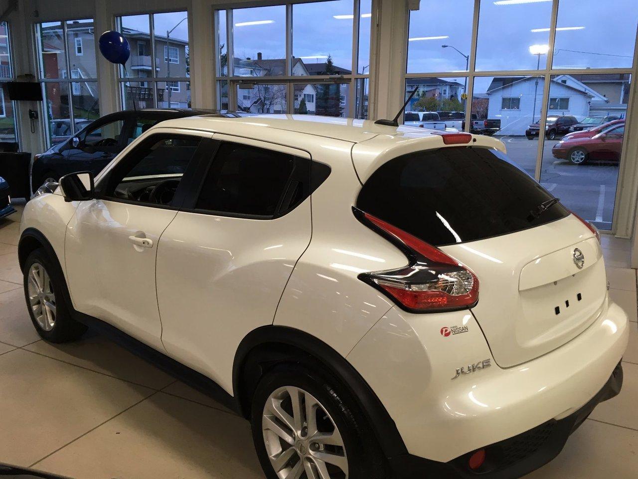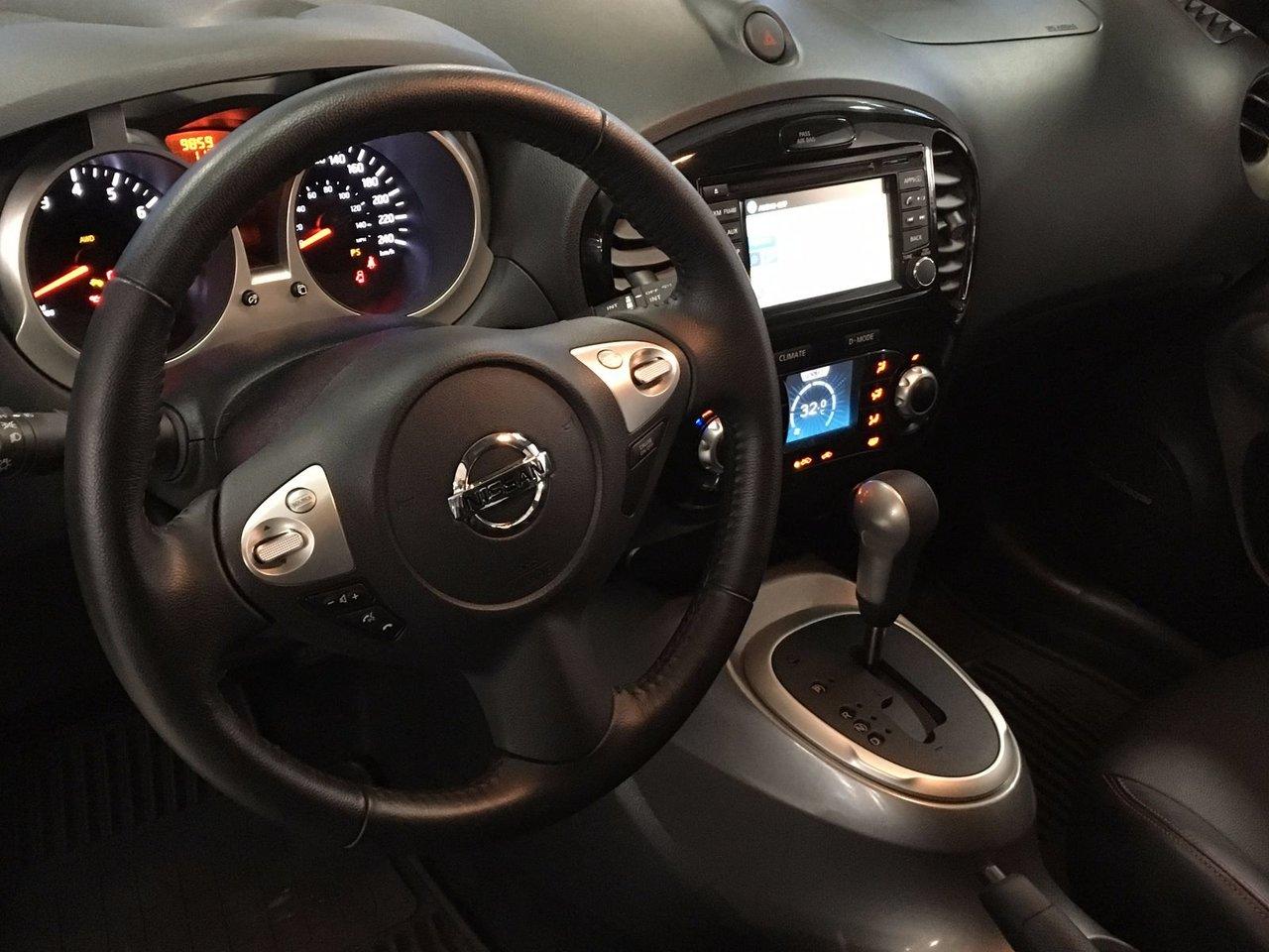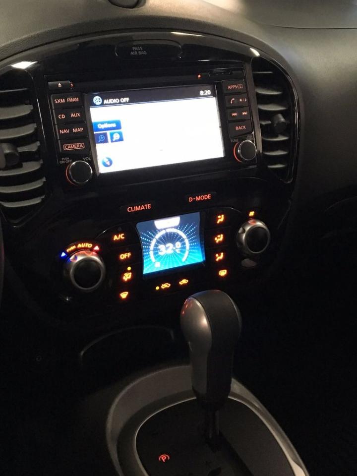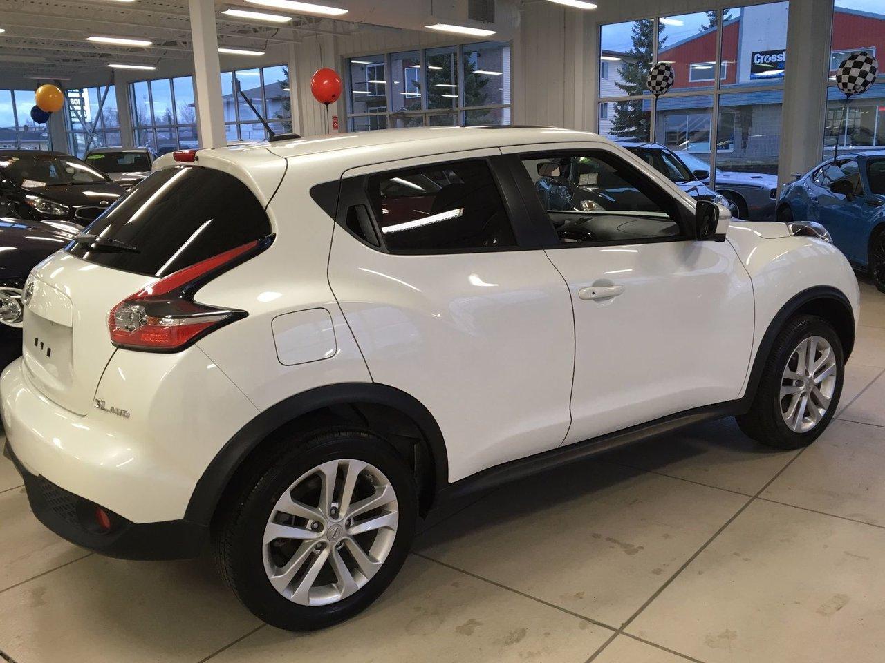 Nissan Juke SL 2017Régulateur de vitesse, Toit ouvrant, Essuie-glaces intermittents, Essuie-glace arrière, Anti-démarreur, Freins ABS, Contrôle de stabilité, Coussin gonflable conducteur, Coussins gonflables latéraux, Lecteur CD, Lecteur MP3, Portes électriques, Vitres électriques, Air climatisé, Intérieur en cuir, Commandes audio au volant, Sièges arrières rabattables, Sièges chauffants, Volant ajustable, Aileron, Tapis protecteurs, Ordinateur de bord, Caméra de recul, Radio AM/FM, Volant gainé de cuir, Phares automatiques, Rétroviseur électrique, Sièges arrières chauffants, Direction assistée, Télédéverrouillage, Rétroviseurs chauffants, Banquette arrière divisé, Coussins gonflables arrière pour la tête, Démarrage sans clé, Freins à disque, Rétroviseurs électriques, Jantes en alliage, Antipatinage, Phares antibrouillards, Verrous de sécurité pour enfants, Système de surveillance de la pression des pneus, Sièges baquets, Technologie Bluetooth intégrée, Port USB, Climatiseur automatique, Cache bagages, Aluminium, Climatisation