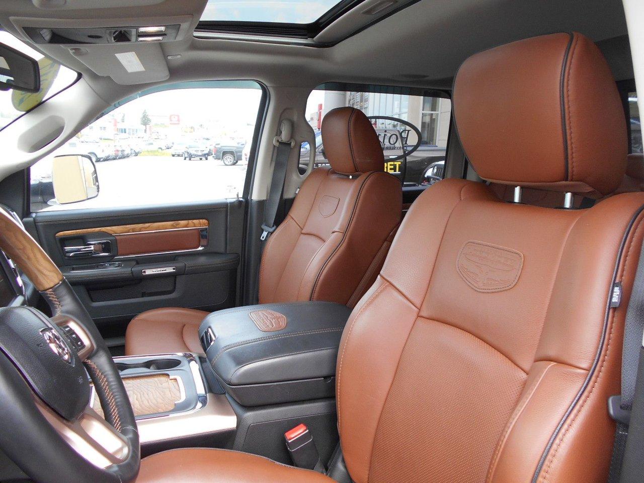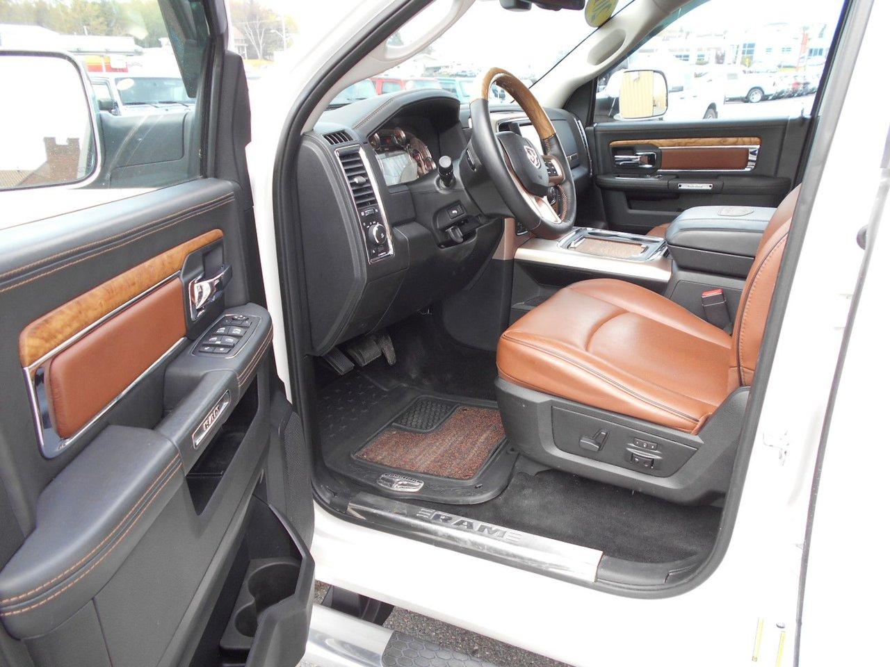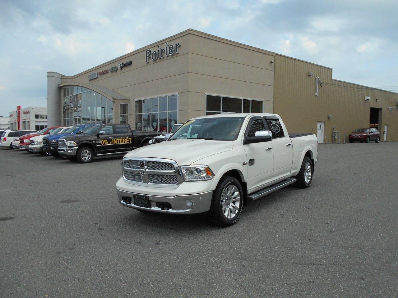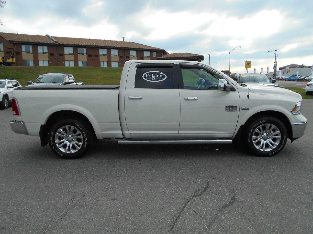 RAM 1500 Crewcab longhorn INCLUS 4 PNEUS HIVERS 2017Régulateur de vitesse, Toit ouvrant, Essuie-glaces intermittents, Anti-démarreur, Freins ABS, Contrôle de stabilité, Coussin gonflable conducteur, Démarreur à distance, Chauffe-moteur, Miroirs chauffants, Portes électriques, Sièges électriques, Tachymètre, Téléphone cellulaire, Vitres électriques, Air climatisé, Intérieur en cuir, Console au plafond, Climatisation deux zones, Commandes audio au volant, Sièges arrières rabattables, Sièges chauffants, Volant ajustable, Marchepieds, Tapis protecteurs, Vitres teintées, Doublure de caisse, Attelage remorque, Phares haute intensité, Radio satellite, Ordinateur de bord, Tout équipé, Caméra de recul, Horloge, Radio AM/FM, Rétroviseurs, Sièges arrières chauffants, Direction assistée, Télédéverrouillage, Rétroviseurs chauffants, Banquette arrière divisé, Siège à réglage électrique, Système d\'alarme, Essuie-glace détecteur de pluie, Verrouillage sans clé, Rétroviseurs électriques, Jantes en alliage, Antipatinage, Phares antibrouillards, Coussins gonflables, Verrous de sécurité pour enfants, Système de surveillance de la pression des pneus, Miroirs ajustables de l\'intérieur, Sièges baquets, Sièges avec fonction mémoire, Prise Auxiliaire, Points d\'ancrage pour sièges d\'enfant, Technologie Bluetooth intégrée, Port USB, Climatiseur automatique, Système HomeLink, Aide au stationnement (capteurs)