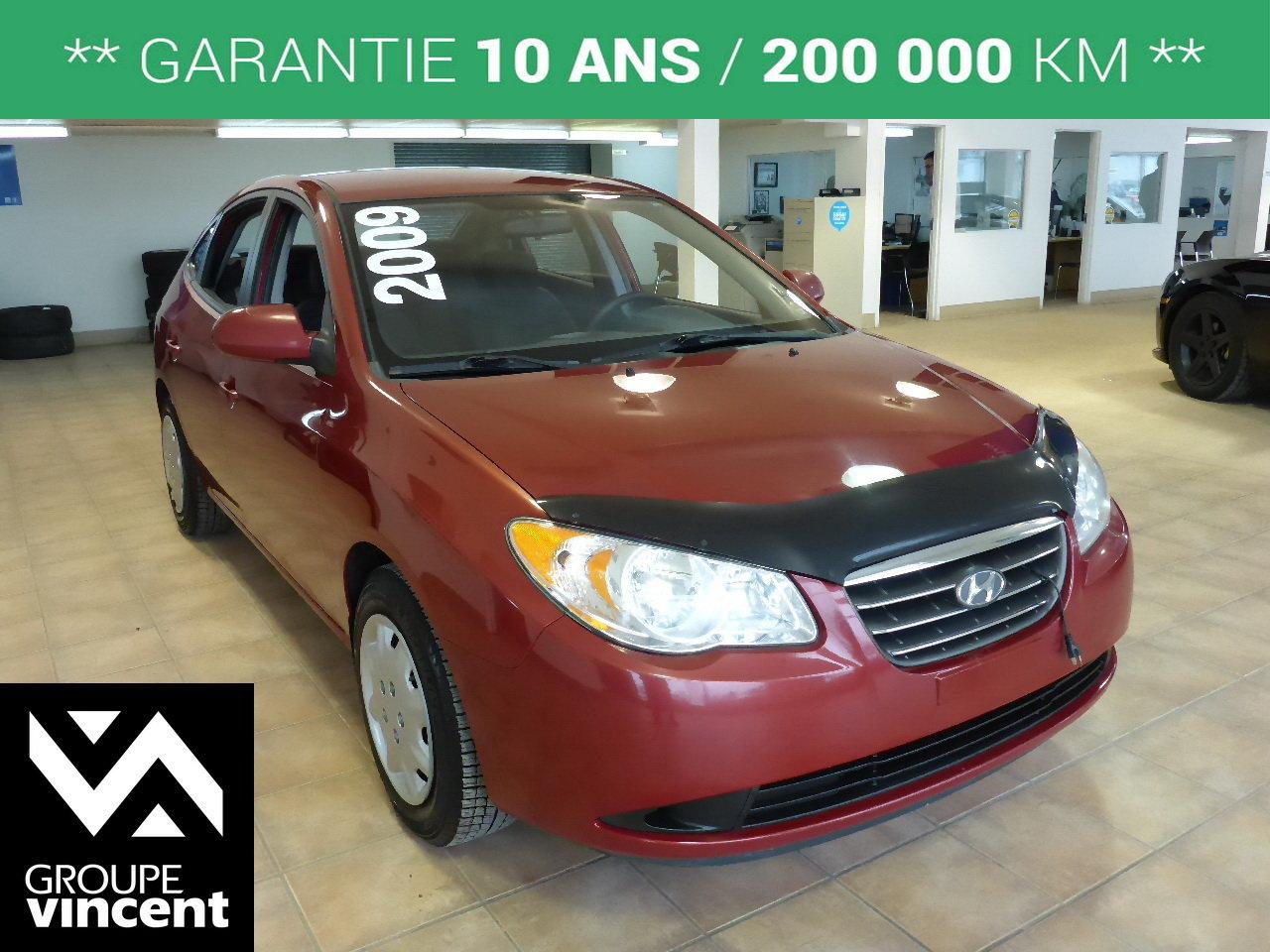 Hyundai Elantra GL**GARANTIE 10 ANS** Pour petit budget ! 2009Régulateur de vitesse, Essuie-glaces intermittents, Anti-démarreur, Freins ABS, Coussin gonflable conducteur, Coussins gonflables latéraux, Lecteur CD, Lecteur MP3, 6 Haut-parleurs, Vitres électriques, Air climatisé, Sièges arrières rabattables, Sièges chauffants, Volant ajustable, Tapis protecteurs, Radio AM/FM, Protège-capot, Direction assistée, Télédéverrouillage, Rétroviseurs chauffants, Banquette arrière divisé, Système d\'alarme, Coussins gonflables arrière pour la tête, Sièges tissu, Freins à disque, Rétroviseurs électriques, Antipatinage, Verrous de sécurité pour enfants, Sièges baquets