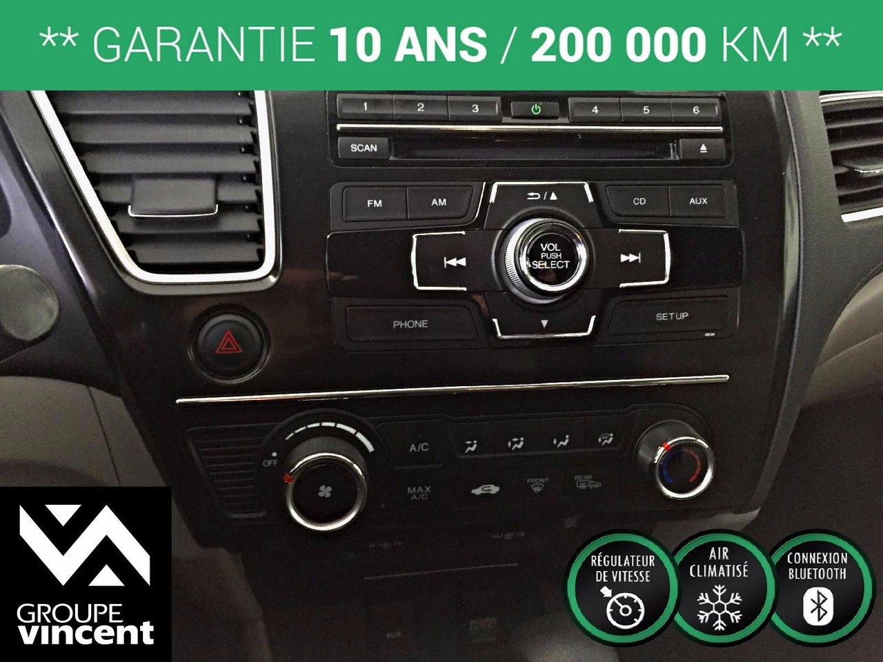 Honda Civic LX** GARANTIE 10 ANS** bluethooth!! 2013Régulateur de vitesse, Essuie-glaces intermittents, Anti-démarreur, Freins ABS, Contrôle de stabilité, Coussin gonflable conducteur, Coussins gonflables latéraux, Lecteur CD, Lecteur MP3, Portes électriques, Tachymètre, Vitres électriques, Air climatisé, Commandes audio au volant, Lampes de lecture arrière, Volant ajustable, Enjoliveurs, Tapis protecteurs, Tout équipé, Radio AM/FM, Phares automatiques, Rétroviseur électrique, Direction assistée, Télédéverrouillage, Rétroviseurs chauffants, Coussins gonflables arrière pour la tête, Sièges tissu, Freins à disque, Sièges chauffants - Avant, Rétroviseurs électriques, Antipatinage, Verrous de sécurité pour enfants, Sièges baquets, Prise Auxiliaire, Technologie Bluetooth intégrée, Port USB, Climatisation