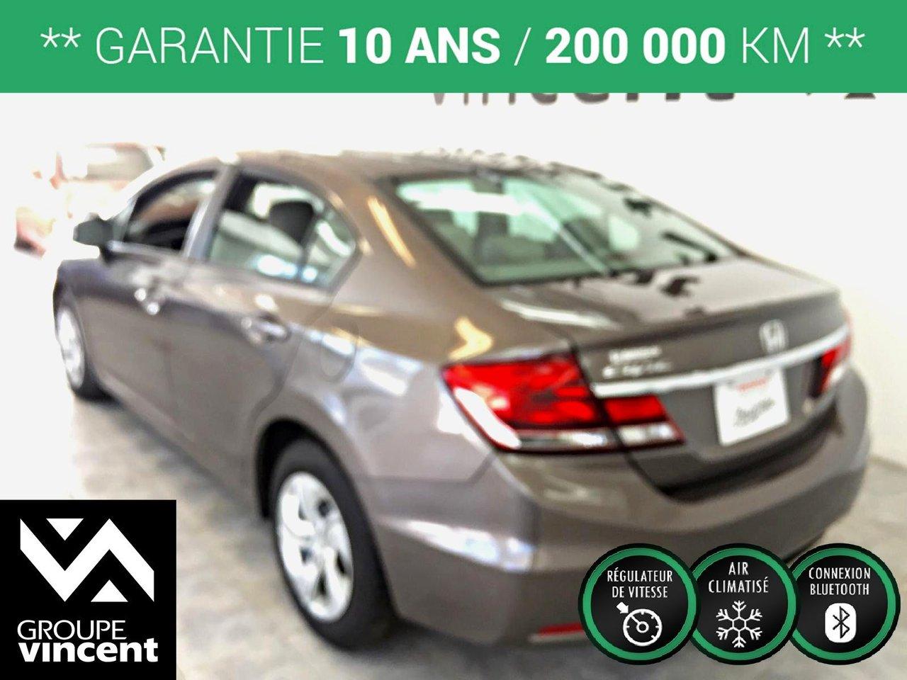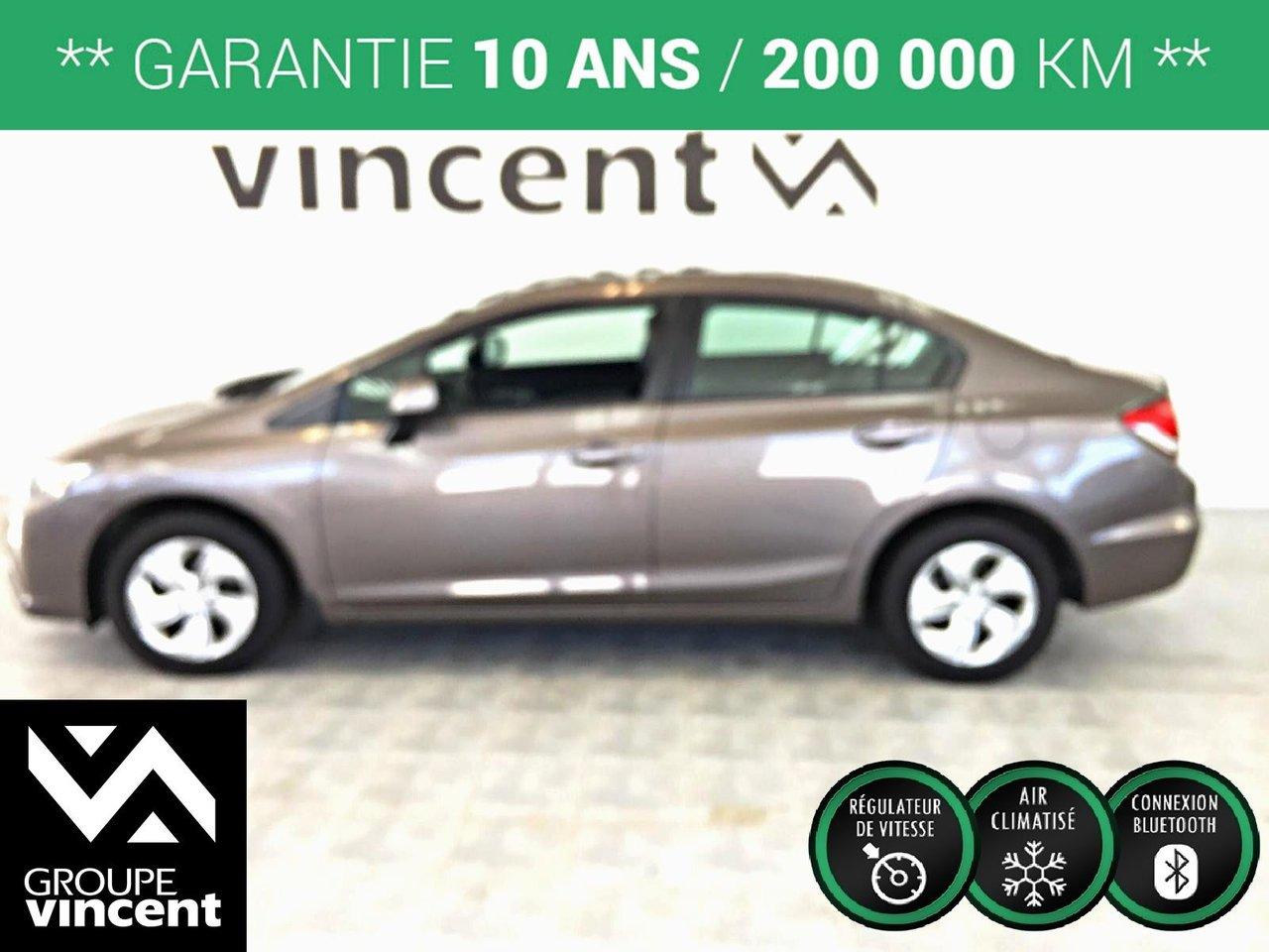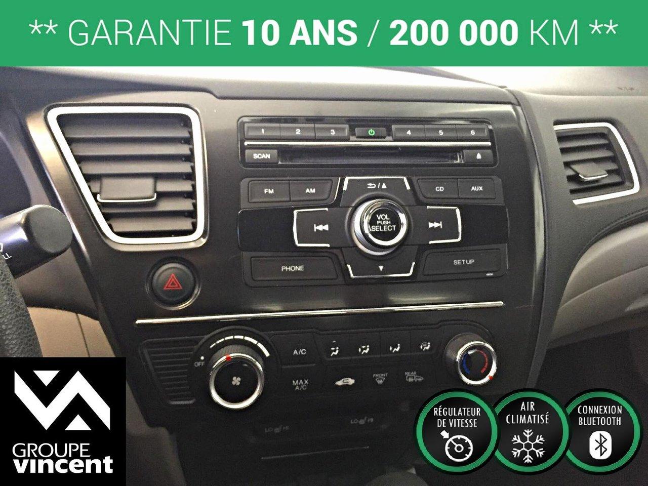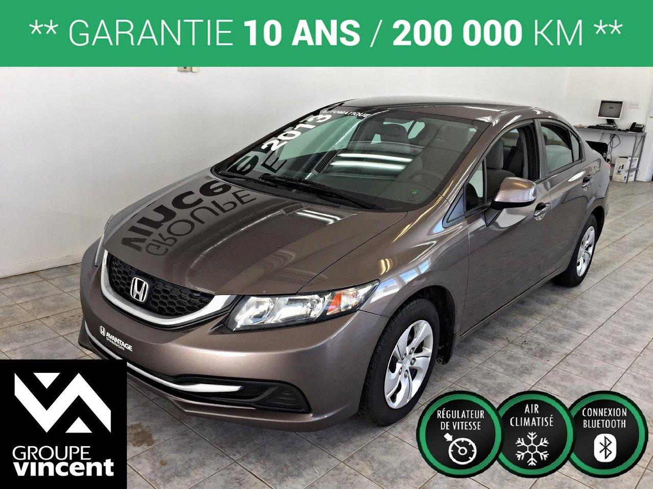 Honda Civic LX**Si?ges chauffants** Un seul propri?taire! 2013Régulateur de vitesse, Essuie-glaces intermittents, Anti-démarreur, Freins ABS, Contrôle de stabilité, Coussin gonflable conducteur, Coussins gonflables latéraux, Lecteur CD, Lecteur MP3, Portes électriques, Vitres électriques, Air climatisé, Lampes de lecture arrière, Sièges chauffants, Volant ajustable, Enjoliveurs, Tapis protecteurs, Tout équipé, Phares automatiques, Rétroviseur électrique, Direction assistée, Rétroviseurs chauffants, Coussins gonflables arrière pour la tête, Sièges tissu, Freins à disque, Sièges chauffants - Avant, Rétroviseurs électriques, Antipatinage, Verrous de sécurité pour enfants, Sièges baquets, Technologie Bluetooth intégrée, Climatisation