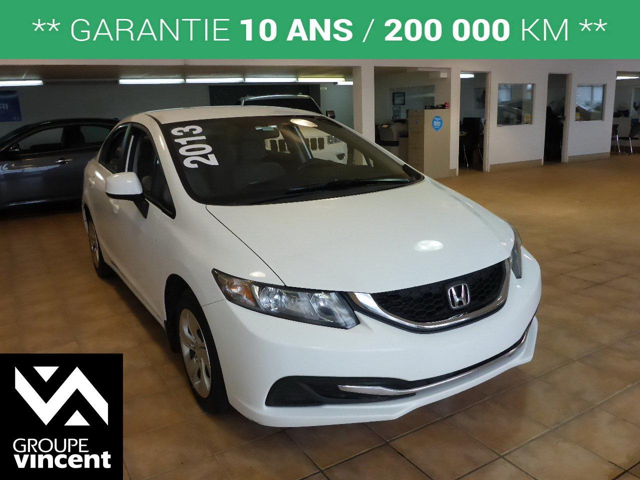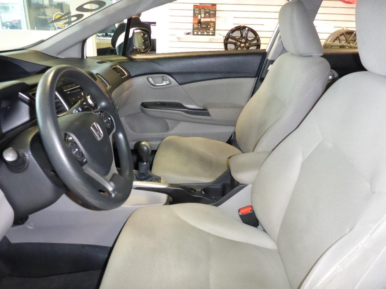 Honda Civic LX**CLIMATISEUR** Fiable et ?conomique ! 2013Régulateur de vitesse, Essuie-glaces intermittents, Anti-démarreur, Freins ABS, Contrôle de stabilité, Coussin gonflable conducteur, Coussins gonflables latéraux, Lecteur CD, Lecteur MP3, 6 Haut-parleurs, Portes électriques, Tachymètre, Vitres électriques, Air climatisé, Commandes audio au volant, Lampes de lecture arrière, Sièges arrières rabattables, Volant ajustable, Enjoliveurs, Tapis protecteurs, Ordinateur de bord, Radio AM/FM, Phares automatiques, Rétroviseur électrique, Direction assistée, Rétroviseurs chauffants, Banquette arrière divisé, Système d\'alarme, Coussins gonflables arrière pour la tête, Sièges tissu, Freins à disque, Sièges chauffants - Avant, Rétroviseurs électriques, Antipatinage, Verrous de sécurité pour enfants, Sièges baquets, Prise Auxiliaire, Technologie Bluetooth intégrée, Port USB, Climatisation