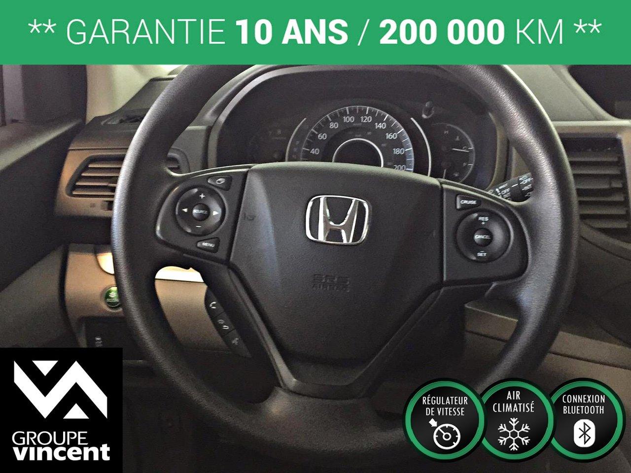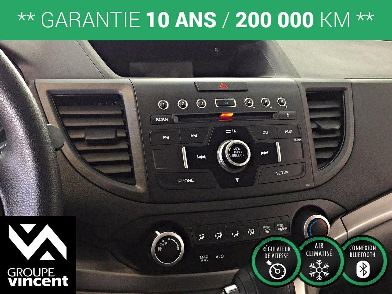Honda CR-V LX **GARANTIE 10 ANS/ CAMERA DE RECUL/ AWD** Fiable et ?conomique. 2013Régulateur de vitesse, Essuie-glaces intermittents, Anti-démarreur, Freins ABS, Contrôle de stabilité, Lecteur CD, Lecteur MP3, Vitres électriques, Air climatisé, Lampes de lecture arrière, Volant ajustable, Tapis protecteurs, Attelage remorque, Caméra de recul, Phares automatiques, Rétroviseur électrique, Direction assistée, Télédéverrouillage, Rétroviseurs chauffants, Sièges tissu, Freins à disque, Sièges chauffants - Avant, Antipatinage, Verrous de sécurité pour enfants, Système de surveillance de la pression des pneus, Sièges baquets, Technologie Bluetooth intégrée, Climatisation