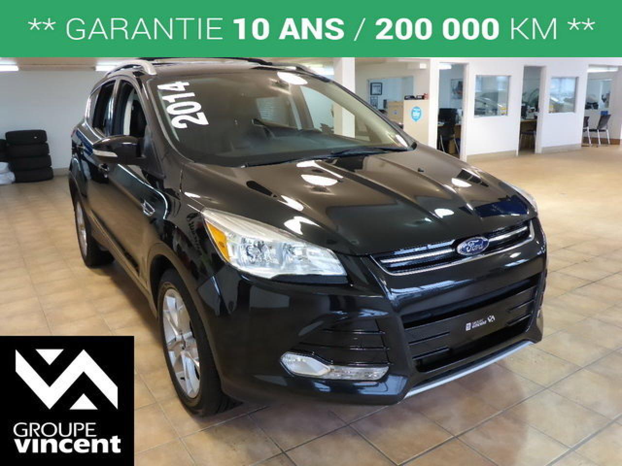 Ford Escape Titanium**TOIT / CUIR / MAGS** V?hicule pratique! 2014Régulateur de vitesse, Toit ouvrant, Essuie-glaces intermittents, Essuie-glace arrière, Anti-démarreur, Freins ABS, Contrôle de stabilité, Coussin gonflable conducteur, Coussins gonflables latéraux, Démarreur à distance, Lecteur CD, Lecteur MP3, Portes électriques, Tachymètre, Vitres électriques, Intérieur en cuir, Commandes audio au volant, Sièges arrières rabattables, Sièges chauffants, Siège mémoire, Volant ajustable, Tapis protecteurs, Vitres teintées, Ordinateur de bord, Caméra de recul, Radio AM/FM, Rétroviseurs, Volant gainé de cuir, Phares automatiques, Rétroviseur électrique, Direction assistée, Télédéverrouillage, Rétroviseurs chauffants, Banquette arrière divisé, Siège à réglage électrique, Système d\'alarme, Coussins gonflables arrière pour la tête, Siège conducteur - soutien lombaire, Démarrage sans clé, Freins à disque, Sièges chauffants - Avant, Rétroviseurs électriques, Jantes en alliage, Antipatinage, Phares antibrouillards, Support à bagages, Verrous de sécurité pour enfants, Système de surveillance de la pression des pneus, Sièges baquets, Prise Auxiliaire, Technologie Bluetooth intégrée, Port USB, Climatiseur automatique, Cache bagages, Rétroviseur à atténuation automatique, Aluminium, Climatisation