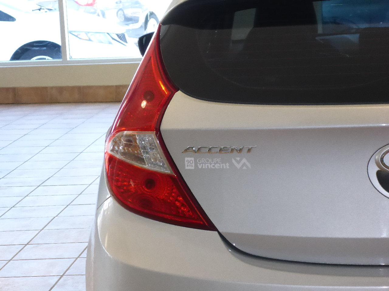 Hyundai Accent GL**climatiseur** Fiable et ?conomique ! 2015Régulateur de vitesse, Essuie-glaces intermittents, Essuie-glace arrière, Anti-démarreur, Freins ABS, Contrôle de stabilité, Coussin gonflable conducteur, Coussins gonflables latéraux, Lecteur CD, Lecteur MP3, 6 Haut-parleurs, Portes électriques, Tachymètre, Vitres électriques, Air climatisé, Sièges arrières rabattables, Volant ajustable, Tapis protecteurs, Radio AM/FM, Phares automatiques, Direction assistée, Télédéverrouillage, Banquette arrière divisé, Coussins gonflables arrière pour la tête, Sièges tissu, Essuie-glace détecteur de pluie, Freins à disque, Rétroviseurs électriques, Antipatinage, Verrous de sécurité pour enfants, Sièges baquets, Cache bagages