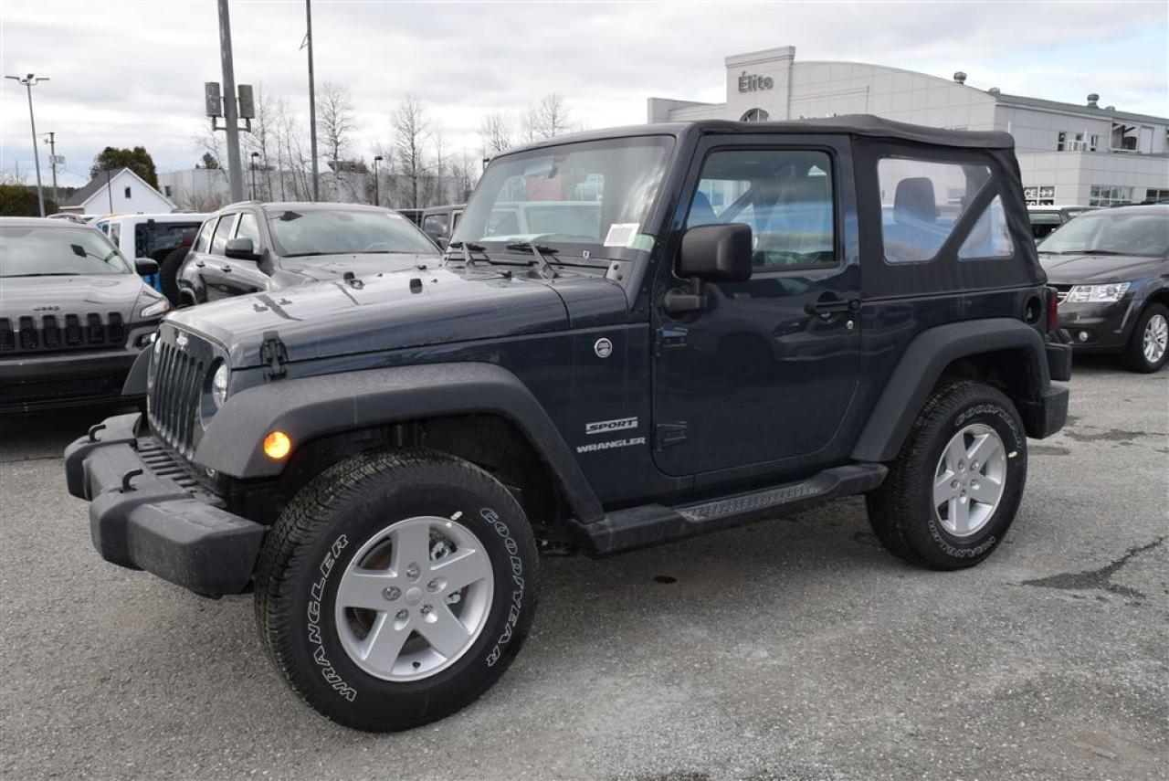 2017 Jeep Wrangler Sport 4x4, toit souple, Rapport de pont arrière 3.73, Marchepieds, Mags, Garantie du manufactrurier Auto, à vendre Chez Élite Chrysler Jeep Dodge Ram, le plus grand choix en inventaire. À Sherbrooke en Estrie Possibilité de Livraison partout au Québec !!!!!! Pour plus de détails, pour un essai routier ou même l'achat, Communiquer avec l'un de nos conseillers en vente sans frais au 1-888-647-5468. Financement sur place. (1ère et 2ième Chance)