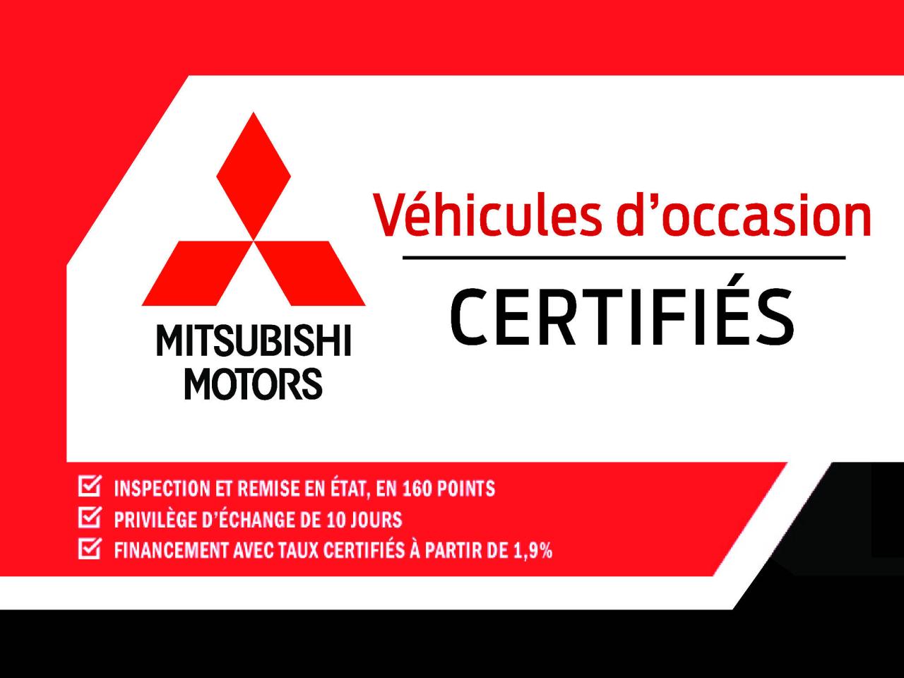Pour une expérience d'achat et un service des plus agréable c'est Sherbrooke Mitsubishi, membre de l'Équipe Précision Auto. Visiter notre site web sherbrookemitsubishi.com ou equipeprecisionauto.ca pour voir tout notre inventaire de véhicules usagés. Plus de 100 véhicules usagés de toute marque au même endroit.