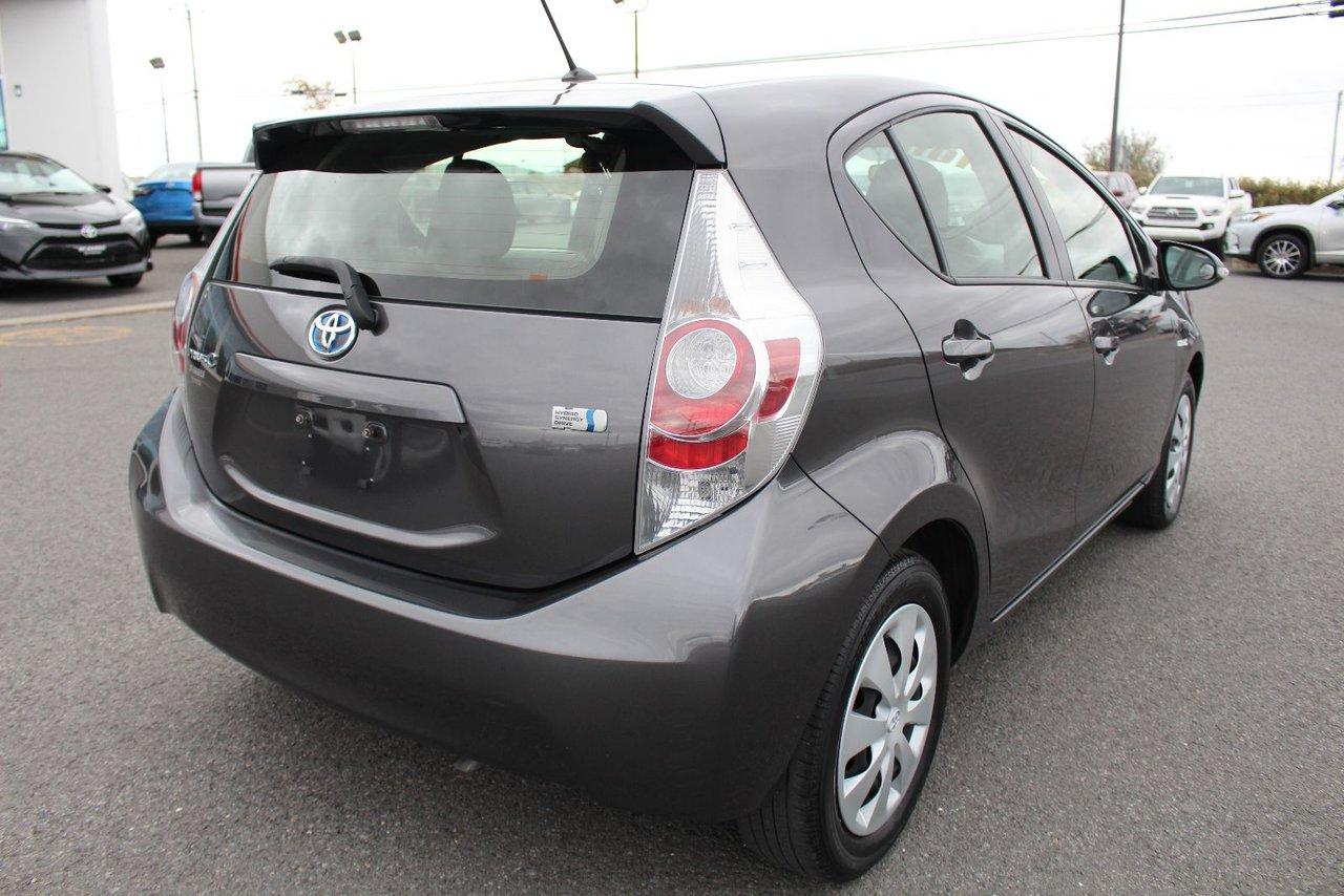 Toyota Prius C Groupe Amélioré Bluetooth Air Climatisé 2014\n\nRégulateur de vitesse, Essuie-glaces intermittents, Essuie-glace arrière, Anti-démarreur, Freins ABS, Contrôle de stabilité, Coussin gonflable conducteur, Coussins gonflables latéraux, Lecteur CD, Lecteur MP3, 6 Haut-parleurs, Portes électriques, Tachymètre, Vitres électriques, Air climatisé, Commandes audio au volant, Sièges arrières rabattables, Volant ajustable, Tapis protecteurs, Radio AM/FM, Rétroviseur électrique, Direction assistée, Télédéverrouillage, Rétroviseurs chauffants, Banquette arrière divisé, Coussins gonflables arrière pour la tête, Freins à disque, Rétroviseurs électriques, Antipatinage, Verrous de sécurité pour enfants, Système de surveillance de la pression des pneus, Sièges baquets, Prise Auxiliaire, Technologie Bluetooth intégrée, Port USB, Climatisation\n\nTOYOTA PRIUS C GROUPE AMÉLIORÉ 2014 BLUETOOTH, CONTROLES AUDIO AU VOLANT, GROUPE ÉLECTRIQUE, CLIMATISEUR, RÉGULATEUR DE VITESSE, MIROIRS CHAUFFANT. UN SEUL PROPRIÉTAIRE, JAMAIS ACCIDENTÉ, FICHE D'ENTRETIEN COMPLÈTE. INSPECTION AVEC RAPPORT DE CONDITION POUR TOUT NOS VÉHICULES USAGÉS. CARPROOF SUR DEMANDE. GARANTIE PROLONGÉE DISPONIBLE. LA MEILLEUR ALLOCATION POUR VOTRE ÉCHANGE. TOUTES LES MARQUES DISPONIBLES. ÉCONOMISEZ PLUS AVEC ST-BASILE TOYOTA, VOTRE CONCESSIONAIRE DE LA RIVE-SUD DE MONTRÉAL. FINANCEMENT FACILE ET CRÉDIT SUR PLACE. 2e CHANCE AU CRÉDIT DISPONIBLE. SITUÉ EN ABORD DE LA ROUTE 116, ENTRE BELOEIL ET ST-BRUNO, VENEZ NOUS VOIR OU VISITEZ LE: WWW.STBASILETOYOTA.COM