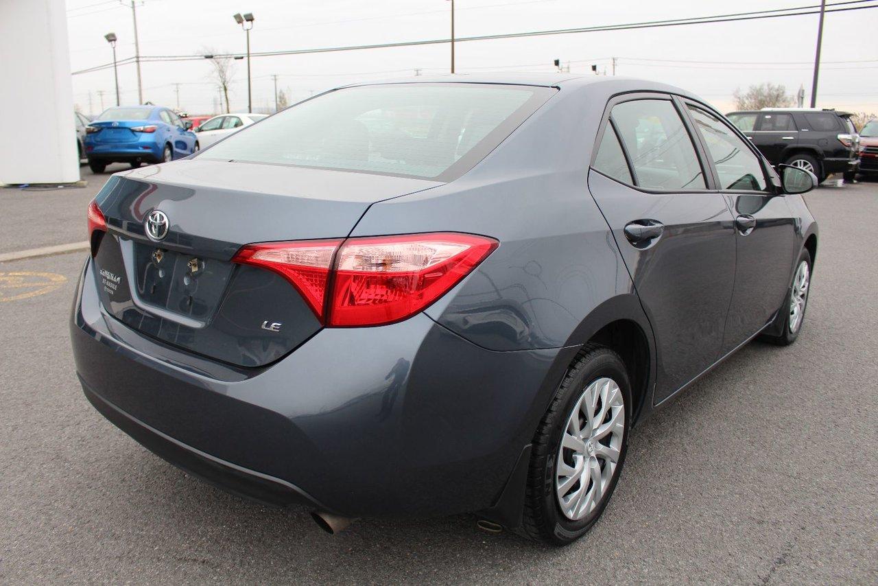 Toyota Corolla Le Bluetooth Sièges Chauffants Camera Recul 2017\n\nRégulateur de vitesse, Essuie-glaces intermittents, Anti-démarreur, Freins ABS, Contrôle de stabilité, Coussin gonflable conducteur, Coussins gonflables latéraux, Lecteur CD, Lecteur MP3, 6 Haut-parleurs, Portes électriques, Tachymètre, Vitres électriques, Air climatisé, Commandes audio au volant, Sièges arrières rabattables, Sièges chauffants, Volant ajustable, Tapis protecteurs, Caméra de recul, Radio AM/FM, Phares automatiques, Rétroviseur électrique, Direction assistée, Télédéverrouillage, Rétroviseurs chauffants, Banquette arrière divisé, Coussins gonflables arrière pour la tête, Rétroviseurs électriques, Antipatinage, Verrous de sécurité pour enfants, Sièges baquets, Prise Auxiliaire, Technologie Bluetooth intégrée, Port USB, Climatiseur automatique\n\nTOYOTA COROLLA LE CVT 2017 BLUETOOTH, SIÈGES CHAUFFANTS, CLIMATISEUR AUTOMATIQUE, AVERTISSEUR DE SORTIE DE VOIE, DÉTECTEUR ANTI COLISION, CONTROLES AUDIO AU VOLANT, GROUPE ÉLECTRIQUE, CLIMATISEUR, RÉGULATEUR DE VITESSE, MIROIRS CHAUFFANT, CAMÉRA DE RECUL. JAMAIS ACCIDENTÉ, FICHE D'ENTRETIEN COMPLÈTE. INSPECTION AVEC RAPPORT DE CONDITION POUR TOUT NOS VÉHICULES USAGÉS. CARPROOF SUR DEMANDE. GARANTIE PROLONGÉE DISPONIBLE. LA MEILLEUR ALLOCATION POUR VOTRE ÉCHANGE. TOUTES LES MARQUES DISPONIBLES. ÉCONOMISEZ PLUS AVEC ST-BASILE TOYOTA, VOTRE CONCESSIONAIRE DE LA RIVE-SUD DE MONTRÉAL. FINANCEMENT FACILE ET CRÉDIT SUR PLACE. 2e CHANCE AU CRÉDIT DISPONIBLE. SITUÉ EN ABORD DE LA ROUTE 116, ENTRE BELOEIL ET ST-BRUNO, VENEZ NOUS VOIR OU VISITEZ LE: WWW.STBASILETOYOTA.COM