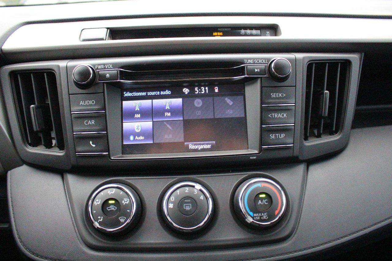 Toyota Rav4 Le Awd Bluetooth Sièges Chauffants Camera Rec 2017\n\nRégulateur de vitesse, Essuie-glaces intermittents, Essuie-glace arrière, Anti-démarreur, Freins ABS, Contrôle de stabilité, Coussin gonflable conducteur, Coussins gonflables latéraux, Lecteur CD, Lecteur MP3, 6 Haut-parleurs, Portes électriques, Tachymètre, Vitres électriques, Air climatisé, Commandes audio au volant, Sièges arrières rabattables, Sièges chauffants, Volant ajustable, Enjoliveurs, Tapis protecteurs, Caméra de recul, Radio AM/FM, Phares automatiques, Rétroviseur électrique, Direction assistée, Télédéverrouillage, Rétroviseurs chauffants, Banquette arrière divisé, Coussins gonflables arrière pour la tête, Sièges tissu, Freins à disque, Sièges chauffants - Avant, Rétroviseurs électriques, Antipatinage, Verrous de sécurité pour enfants, Sièges baquets, Prise Auxiliaire, Technologie Bluetooth intégrée, Port USB, Cache bagages, Climatisation\n\nTOYOTA RAV4 LE AWD 2017 AWD, AVERTISEUR SORTIE DE VOIE, SIÈGES CHAUFFANTS, BLUETOOTH, CONTROLES AUDIO AU VOLANT, GROUPE ÉLECTRIQUE, CLIMATISEUR, RÉGULATEUR DE VITESSE DINAMIQUE, MIROIRS CHAUFFANT, CAMÉRA DE RECUL, SIÈGES CHAUFFANTS. JAMAIS ACCIDENTÉ, FICHE D'ENTRETIEN COMPLÈTE. INSPECTION AVEC RAPPORT DE CONDITION POUR TOUT NOS VÉHICULES USAGÉS. CARPROOF SUR DEMANDE. GARANTIE PROLONGÉE DISPONIBLE. LA MEILLEUR ALLOCATION POUR VOTRE ÉCHANGE. TOUTES LES MARQUES DISPONIBLES. ÉCONOMISEZ PLUS AVEC ST-BASILE TOYOTA, VOTRE CONCESSIONAIRE DE LA RIVE-SUD DE MONTRÉAL. FINANCEMENT FACILE ET CRÉDIT SUR PLACE. 2e CHANCE AU CRÉDIT DISPONIBLE. SITUÉ EN ABORD DE LA ROUTE 116, ENTRE BELOEIL ET ST-BRUNO, VENEZ NOUS VOIR OU VISITEZ LE: WWW.STBASILETOYOTA.COM