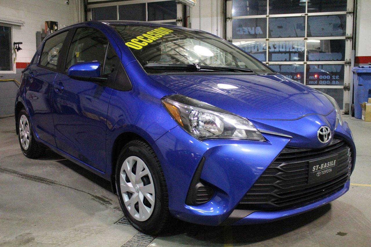 Toyota Yaris Hatchback Le Bluetooth Caméra Recul Sièges Chauffants 2018\n\nRégulateur de vitesse, Essuie-glaces intermittents, Essuie-glace arrière, Anti-démarreur, Freins ABS, Contrôle de stabilité, Coussin gonflable conducteur, Coussins gonflables latéraux, Lecteur CD, Lecteur MP3, 6 Haut-parleurs, Portes électriques, Tachymètre, Vitres électriques, Air climatisé, Commandes audio au volant, Sièges arrières rabattables, Sièges chauffants, Volant ajustable, Tapis protecteurs, Caméra de recul, Radio AM/FM, Rétroviseur électrique, Direction assistée, Télédéverrouillage, Rétroviseurs chauffants, Banquette arrière divisé, Coussins gonflables arrière pour la tête, Sièges tissu, Sièges chauffants - Avant, Rétroviseurs électriques, Antipatinage, Verrous de sécurité pour enfants, Sièges baquets, Prise Auxiliaire, Technologie Bluetooth intégrée, Port USB, Cache bagages, Climatisation\n\nTOYOTA YARIS HB LE 2018 BLEU ÉCLIPSE MÉTALISÉ BLUETOOTH, CONTROLES AUDIO AU VOLANT, GROUPE ÉLECTRIQUE, CLIMATISEUR, RÉGULATEUR DE VITESSE, MIROIRS CHAUFFANT, SIÈGES CHAUFFANTS, CAMÉRA DE RECUL. JAMAIS ACCIDENTÉ, FICHE D'ENTRETIEN COMPLÈTE. INSPECTION AVEC RAPPORT DE CONDITION POUR TOUT NOS VÉHICULES USAGÉS. CARPROOF ACCESSIBLE DIRECTEMENT VIA NOS ANNONCES. GARANTIE PROLONGÉE DISPONIBLE. LA MEILLEUR ALLOCATION POUR VOTRE ÉCHANGE. TOUTES LES MARQUES DISPONIBLES. ÉCONOMISEZ PLUS AVEC ST-BASILE TOYOTA, VOTRE CONCESSIONAIRE DE LA RIVE-SUD DE MONTRÉAL. FINANCEMENT FACILE ET CRÉDIT SUR PLACE. 2e CHANCE AU CRÉDIT DISPONIBLE. SITUÉ EN ABORD DE LA ROUTE 116, ENTRE BELOEIL ET ST-BRUNO, VENEZ NOUS VOIR OU VISITEZ LE: WWW.STBASILETOYOTA.COM