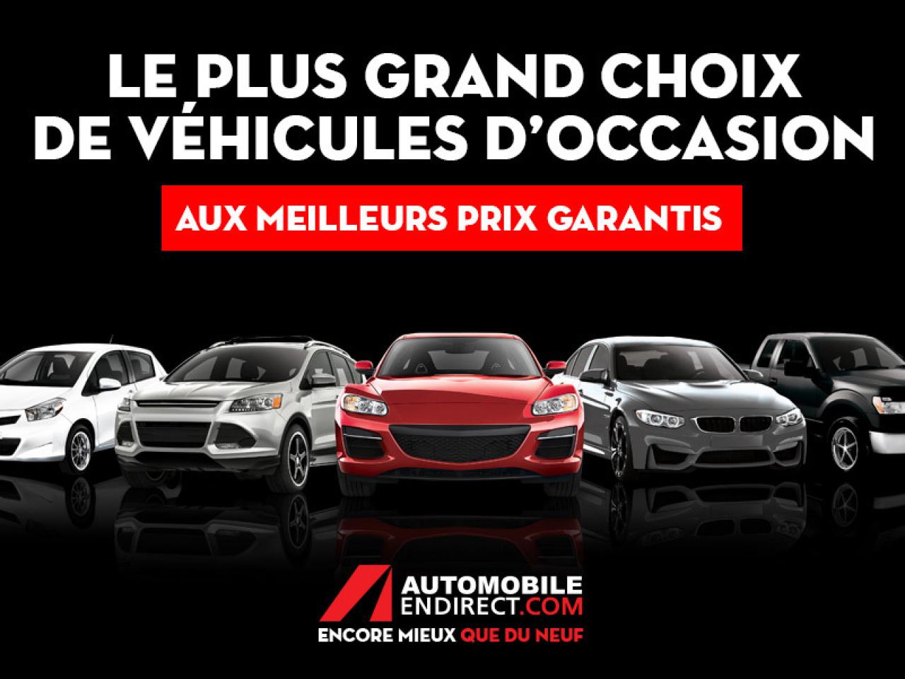 AUTOMATIQUE AUDIO SUR LE VOLANT BLUETOOTH CLIMATISATION 2 ZONES GROS ECRAN PUSH SIEGES ELECTRIQUES SIEGES CHAUFFANTS VERROUILLAGE SANS CLE CAMERA DE RECUL TOUTE EQUIPEE 1200 véhicules - Livraison 24h - Financement facile à partir de 0.9% - Ouvert 7 jours / 5 soirs Automobile en Direct.com c'est le plus gros inventaire de véhicules d'occasion, avec toutes les marques et tous les modèles offert au meilleur prix. C'est aussi profiter de nombreux avantages exclusifs et d'une gamme complète de services offerts en un seul endroit: - Livraison rapide en moins de 24h. - Financement facile sur place à partir de 0.9%. - 2ième et 3ième chance au crédit 100% approuvée. - Allocation incroyable pour vente et échange de véhicule sur place. Au delà des véhicules, Automobile en Direct.com, c'est une équipe de 150 passionnés qui vous accueille dans une ambiance sincère, amicale et courtoise. Il n'y a pas de fla-fla ou de pression inutile. Vous vendez votre véhicule? Nous achetons au meilleur prix même si vous n'achetez pas avec nous. Passez nous voir en magasin ou prenez rendez-vous pour un essai routier. Faites vite. Chaque véhicule est unique. Ce véhicule ne correspond pas exactement à ce que vous recherchez? Visitez Automobile en Direct.com, nous avons accès à toutes les marques et tous les modèles au meilleur prix garanti. Automobile en Direct.com - Encore mieux que du neuf. Automobile en Direct.com is the largest used car inventory with all makes and models offered at the lowest price. They also offer access to exclusive offers and services in one location: - Fast delivery in less than 24 hours. - Easy financing starting at 0.9%. - 2nd and 3rd credit chance 100% approved. - Best value offered for your trade-in. Beyond the vehicles, Automobile en Direct.com is a team of 150 pasionnate people that welcome you in a simple, friendly and nice atmosphere. There is no run-around or pressure when you deal with us. Are you selling your vehicle? We buy at the best price, even if you don't buy with us. Visit us in store or make an appointment for a test drive. Hurry hup, every vehicle is unique. This vehicle does not match exactly with what you want? Visit us at Automobile en Direct.com, we have access to all makes and vehicle at the lowest price guaranteed Automobile en Direct.com - Even better than new.