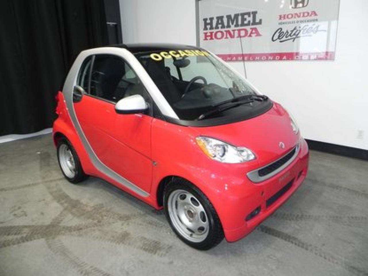 Smart Fortwo PASSION Automatique WOW SEULEMENT 31 949 KM !! 2011Essuie-glaces intermittents, Essuie-glace arrière, Anti-démarreur, Freins ABS, Contrôle de stabilité, Coussin gonflable conducteur, Coussins gonflables latéraux, Portes électriques, Vitres électriques, Air climatisé, Sièges chauffants, Tapis protecteurs, Radio AM/FM, Volant gainé de cuir, Direction assistée, Télédéverrouillage, Freins à disque, Rétroviseurs électriques, Jantes en alliage, Antipatinage, Sièges baquets