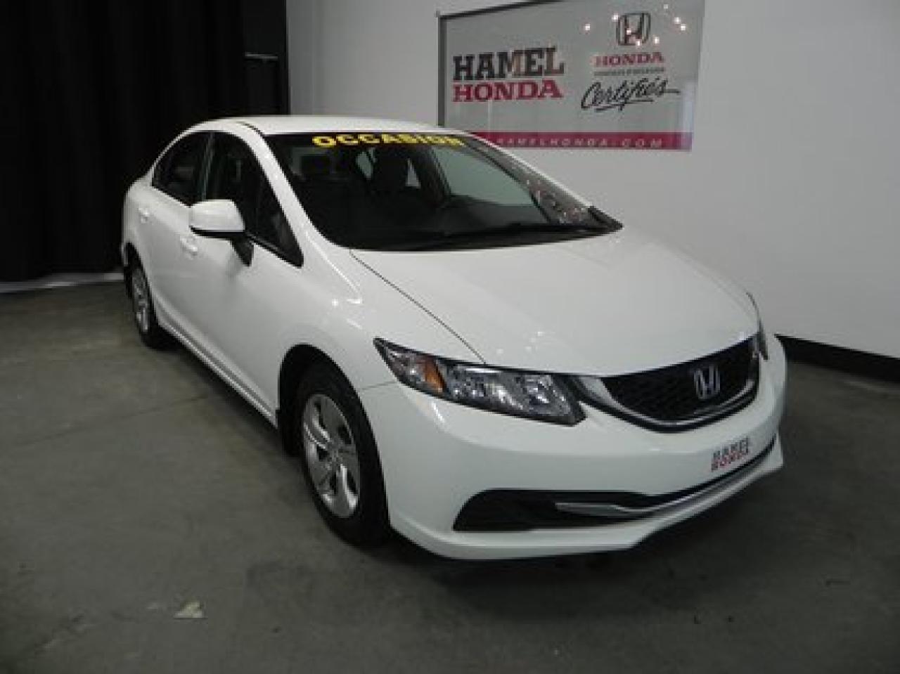 Honda Civic LX BIEN ?QUIP? ET ?CONOMIQUE ! 2013Régulateur de vitesse, Essuie-glaces intermittents, Anti-démarreur, Freins ABS, Contrôle de stabilité, Coussin gonflable conducteur, Coussins gonflables latéraux, Lecteur CD, Lecteur MP3, Portes électriques, Tachymètre, Vitres électriques, Air climatisé, Commandes audio au volant, Lampes de lecture arrière, Sièges arrières rabattables, Sièges chauffants, Volant ajustable, Enjoliveurs, Tapis protecteurs, Radio AM/FM, Phares automatiques, Rétroviseur électrique, Direction assistée, Télédéverrouillage, Rétroviseurs chauffants, Banquette arrière divisé, Coussins gonflables arrière pour la tête, Sièges tissu, Freins à disque, Sièges chauffants - Avant, Rétroviseurs électriques, Antipatinage, Verrous de sécurité pour enfants, Sièges baquets, Prise Auxiliaire, Technologie Bluetooth intégrée, Climatisation