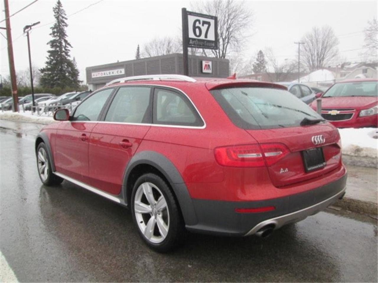 **RABAIS DE FINANCEMENT -$1000** 2.0T QUATTRO TECHNIK PACKAGE A4 ALLROAD NAVIGATION CUIR TOIT OUVRANT PANORAMIQUE BANG AND OLUSFEN AUDIO PARK ASSIST MAGS 18 POUCES AUTOMATIQUE RÉGULATEUR DE VITESSE AUDIO SUR VOLANT AUDI MMI A/C SIÈGES CHAUFFANTS ET EN MÉMOIRE DE FORME BLUETOOTH VITRES PORTES ET MIROIRS ÉLECTRIQUE 44,000KM VÉHICULE DIRECTEMENT DE AUDI CANADA FINANCEMENT MAISON MAINTENANT DISPONIBLE financement 4.9% disponible* POURQUOI AUTOALEX.CA? Pas de vente sous pression. Nous garantissons les plus bas prix au Canada. Nous sommes en affaire depuis 1996. Plus de 98.6% de clients satisfaits. Nous avons 2 terrains pour mieux vous servir. Nous avons plus de 200 véhicules en inventaire. Nous acceptons tous les échanges. Nous sommes ouverts 7 jours. Plusieurs options de garanties prolongées. Aucun cas de crédit refusé. Pas de véhicule enregistré VGA ou reconstruit. Nous offrons historique du véhicules gratuitement sur place. Nous encourageons votre propre inspection avant lachat. *certaines conditions peuvent s'appliquer ************************************************************ **FINANCING REBATE -$1000** 2.0T QUATTRO TECHNIK PACKAGE A4 ALLROAD NAVIGATION LEATHER HEATED MEMORY SEATS PANORAMIC SUNROOF 18 INCH ALLOY WHEELS BANG AND OLUFSEN AUDIO AUTOMATIC CRUISE CONTROL STEERING MOUNTED AUDIO CONTROLS AUDI MMI A/C BLUETOOTH POWER WINDOWS DOOR LOCKS AND MIRRORS 44,000KM VEHICLE DIRECTLY FROM AUDI CANADA HOUSE FINANCING NOW AVAILABLE 4.9% financing available* WHY AUTOALEX.CA? We guarantee the lowest prices in Canada. In business since 1996. More than 98.6% of satisfied customers. 2 lots to serve you better. More than 200 vehicles in inventory. We accept all trades. Open 7 days. Many extended warranties options. 100% credit approval. No rebuilt vehicles. We offer free car history reports. We encourage pre-sale inspections. No under pressure sales. *certain conditions may apply