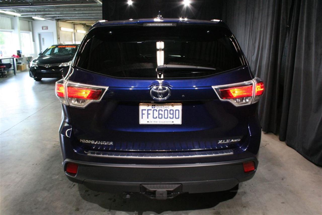 MAGNIFIQUE HIGHLANDER XLE V6 AWD 2015 :COULEUR EXTÉRIEUR BLEU NAUTIQUE ( RARE SUR LE MARCHÉ) AVEC SEULEMENT 44 921 KM,TOUT ÉQUIPÉ + INTÉRIEUR CUIR + SYS.DE NAVIGATION + TOIT OUVRANT + DÉMARREUR A DISTANCE + ATTACHE REMORQUE D'ORIGINE TOYOTA (VALEUR DE 950$+Tx.). UN SEUL PROPRIÉTAIRE,JAMAIS ACCIDENTÉ ET BAS KILOMÉTRAGE CERTIFIÉ.BALANCE DE GARANTIE COMPLÈTE DE TOYOTA JUSQU'AU 28 JUILLET 2018 OU 60 000KM ET BALANCE DE GARANTIE TOYOTA SUR LE GROUPE MOTOPROPULSEUR JUSQU'AU 28 JUILLET 2020 OU 100 000KM TRANSFÉRABLE SANS FRAIS. TOUS NOS VÉHICULES SONT SOIGNEUSEMENT INSPECTÉS ET RECONDITIONNÉS SELON LES NORMES RIGOUREUSES DE TOYOTA.FINANCEMENT DISPONIBLE SUR PLACE À DES TAUX TRÈS AVANTAGEUX.CHEZ TOYOTA ST-EUSTACHE NOUS VOUS OFFRONS DES VÉHICULES D'OCCASION CERTIFIÉS AU MEILLEUR RAPPORT ''QUALITÉ/PRIX''.